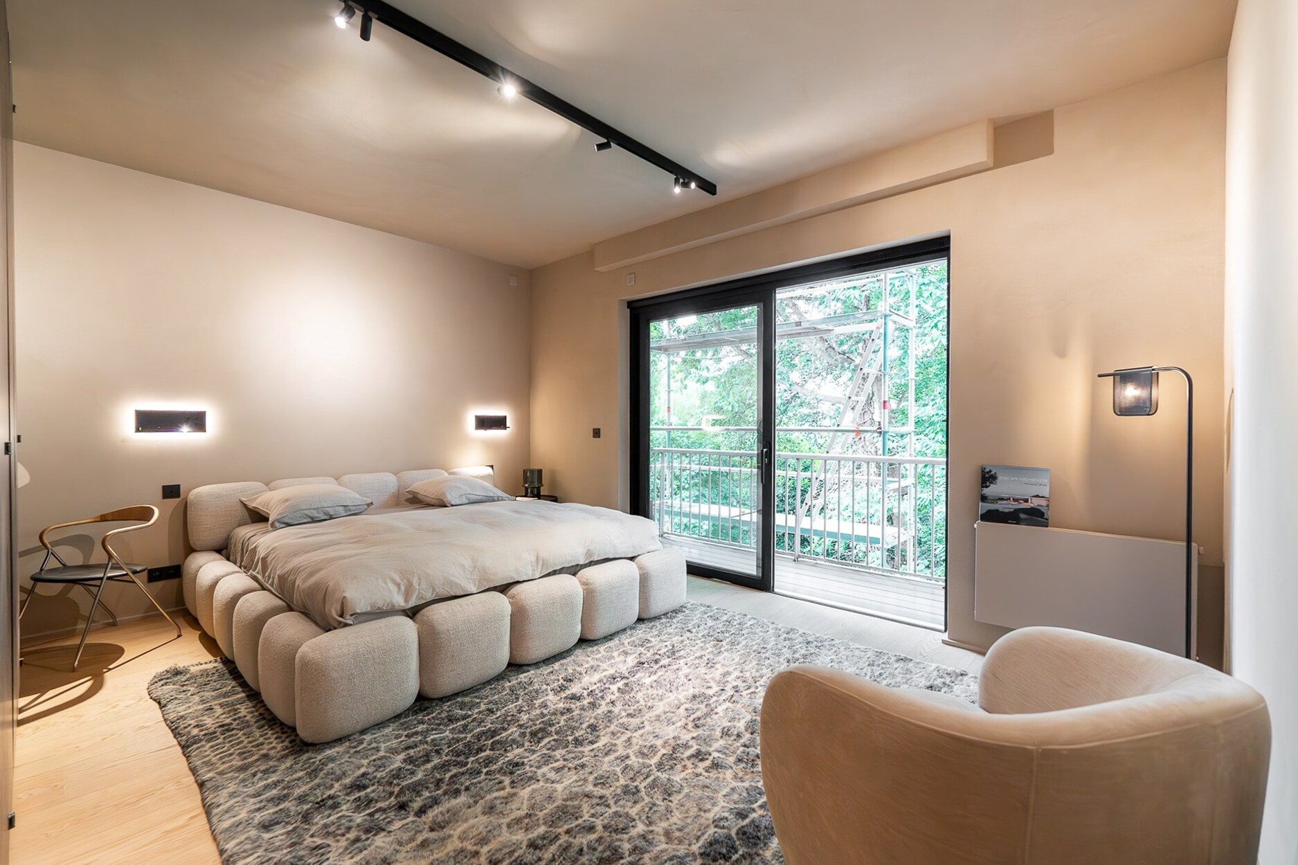 Het nachtgedeelte omvat twee master suites met balkon, dressing en privébadkamer, een slaapkamer met badkamer en dressing, evenals een ruimte die kan dienen als bureau of vierde slaapkamer.