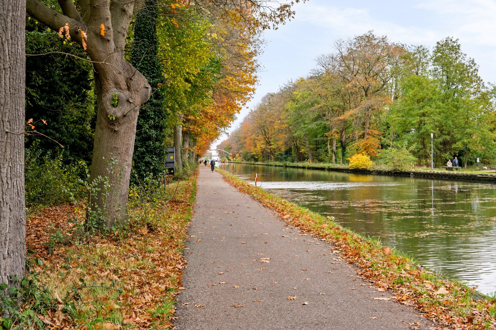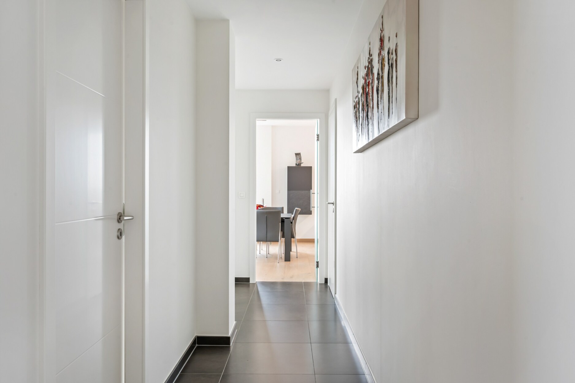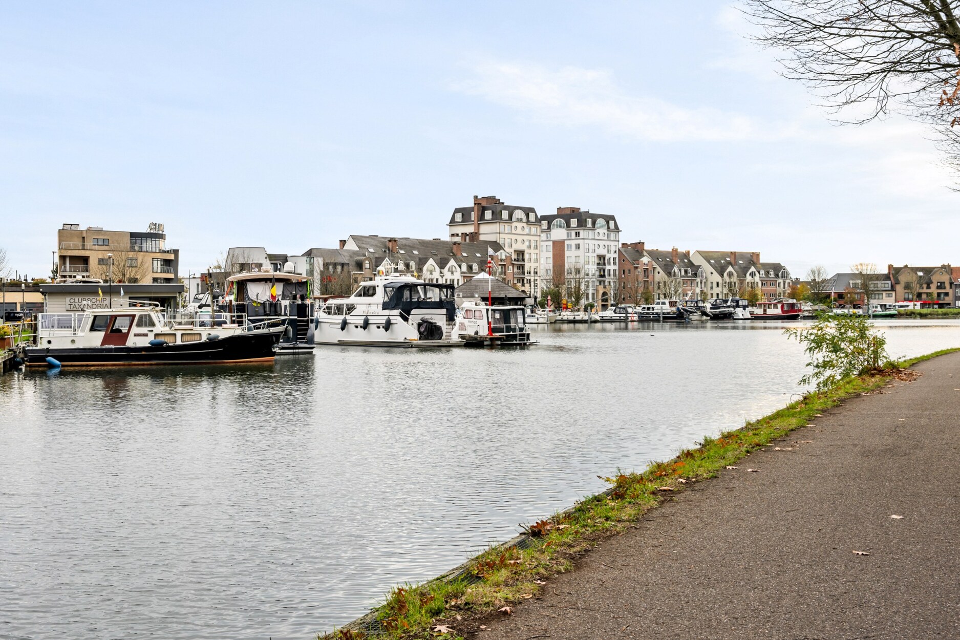 Indeling appartement: via de inkomhal heeft u toegang tot het slaapgedeelte en het woongedeelte. Het woongedeelte op eiken parket omvat een zeer lichte woonkamer met inpandig terras met zicht op het kanaal, een open volledig geïnstalleerde keuken met veel kastruimte en prachtig composieten werkblad (uitgerust met koelkast, aparte vriezer, vaatwasser, inductie kookplaat, dampkap, combi-oven en heteluchtoven) en een ruime bergruimte met aansluitingen voor wasapparatuur.