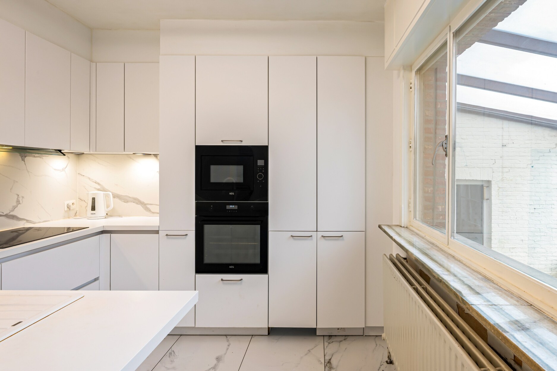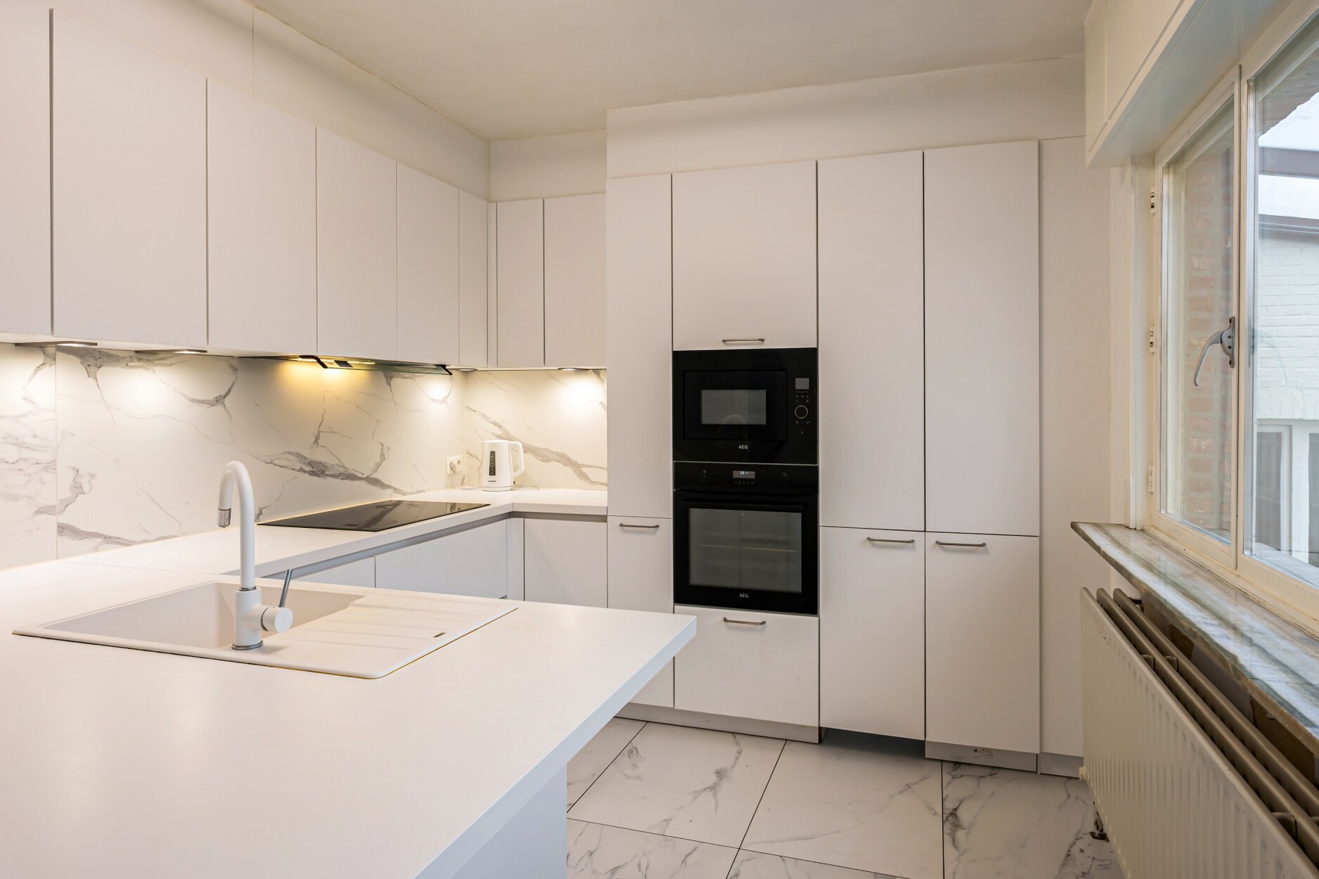 U betreedt deze charmante woning via de inkomhal met apart toilet. Vanuit de inkomhal hebt u toegang tot de lichtrijke woonkamer. De woonkamer beschikt over een grote zit- en eethoek. De keuken bevindt zich aanpalend en is volledig ingericht met toestellen, deze is gerenoveerd in 2023. Door de kasten van de keuken treffen we nog een ruime en praktische berging/ wasplaats. Aansluitend is hier de grote garage met automatische poort.