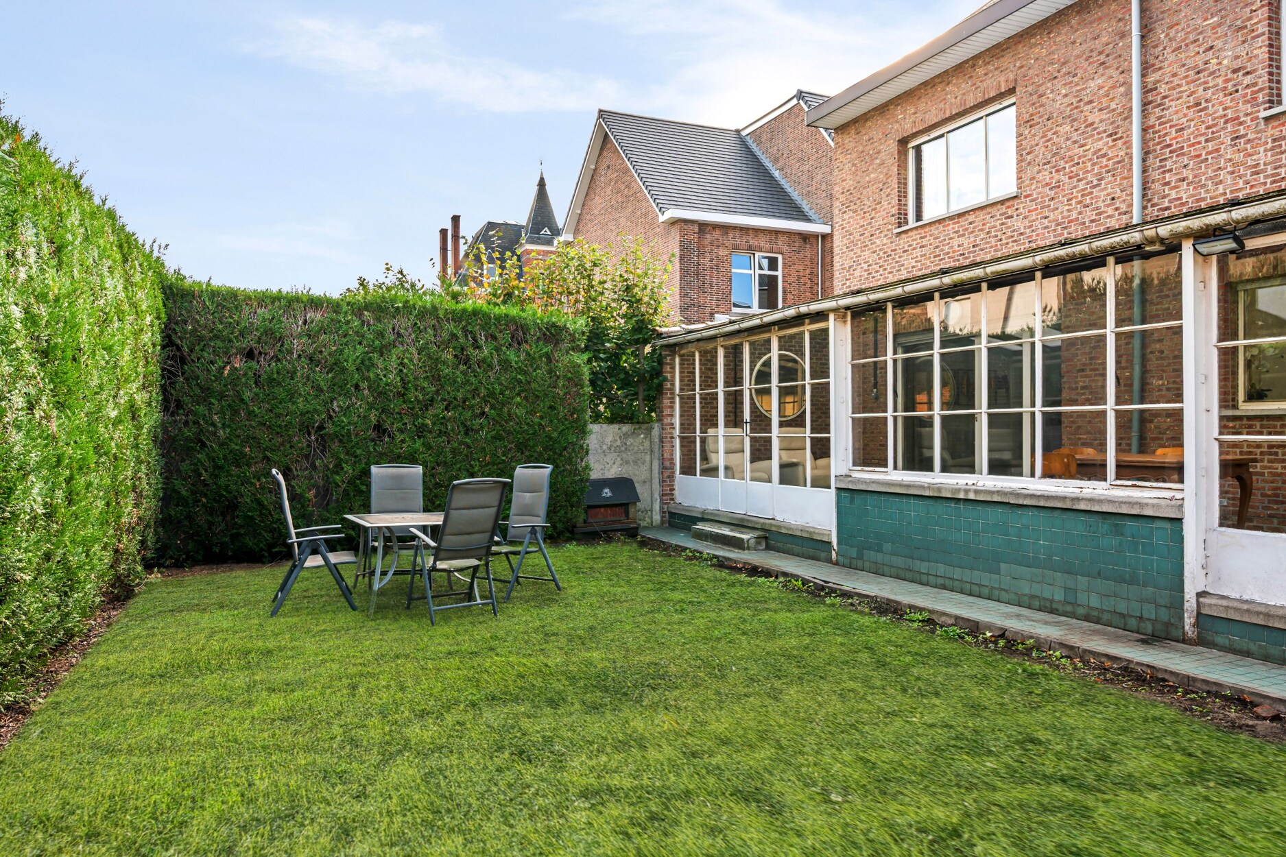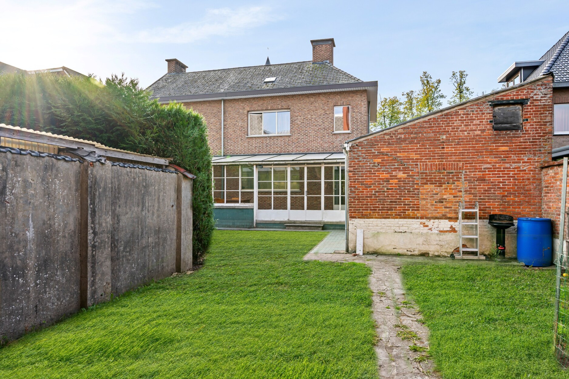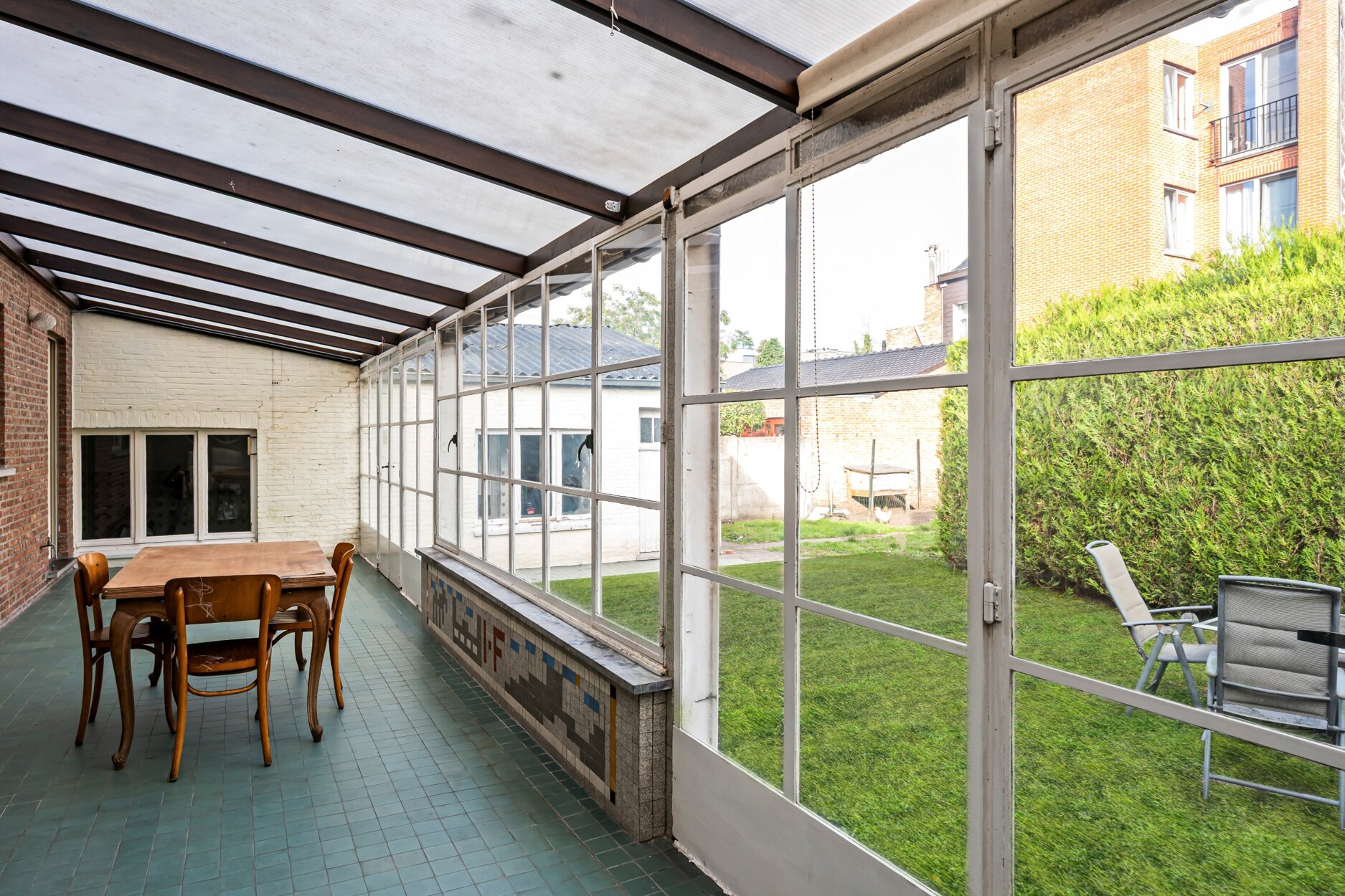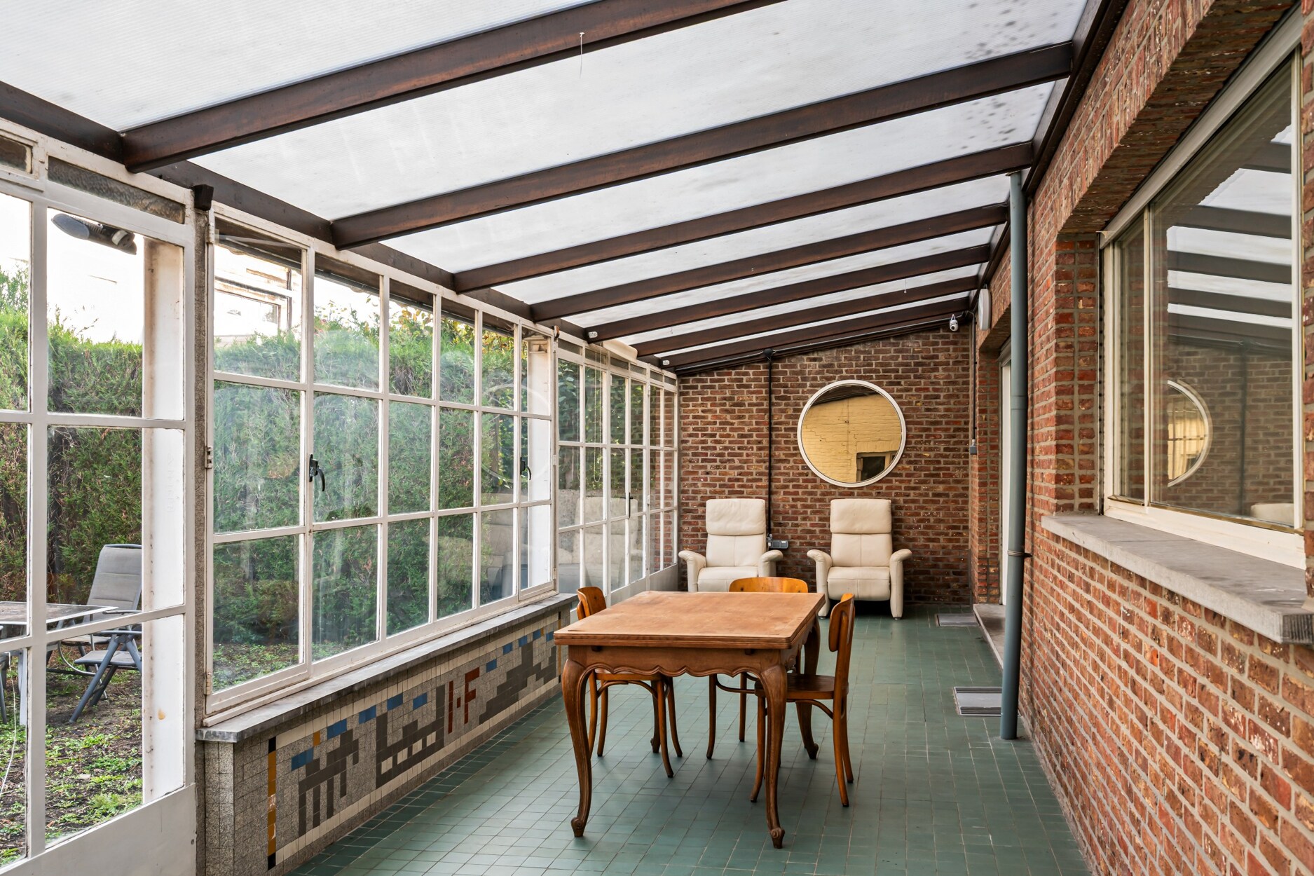 Het perceel is volledig omheind en beschikt over een ruim terras met volwassen beplanting, voldoende privacy! Dankzij de ruime veranda geniet u volop van elk seizoen.