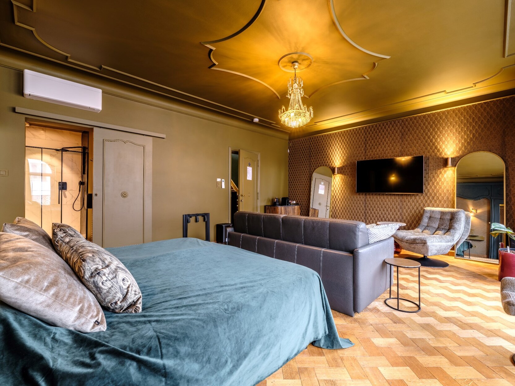 Op de tweede en derde verdieping bevinden zich in totaal zes ruime kamers, elk met een eigen badkamer. De derde verdieping beschikt bovendien over een wasruimte en een aparte kitchenette, ideaal voor gasten of inwonende familieleden. Alle kamers zijn voorzien van airconditioning en een eigen zekeringskast.