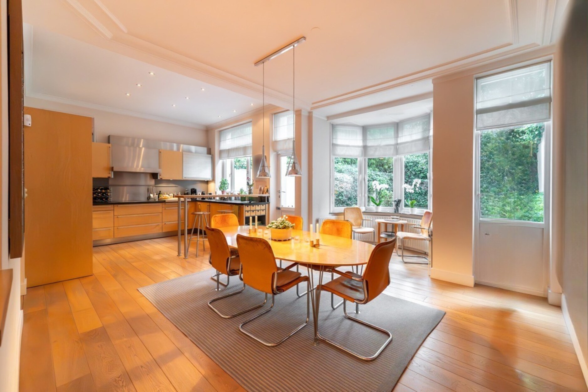 Technische kenmerken: individuele gasverwarming, volledig uitgeruste Bulthaup-keuken, bewaarde originele decoratieve elementen en een zuidgerichte tuin.