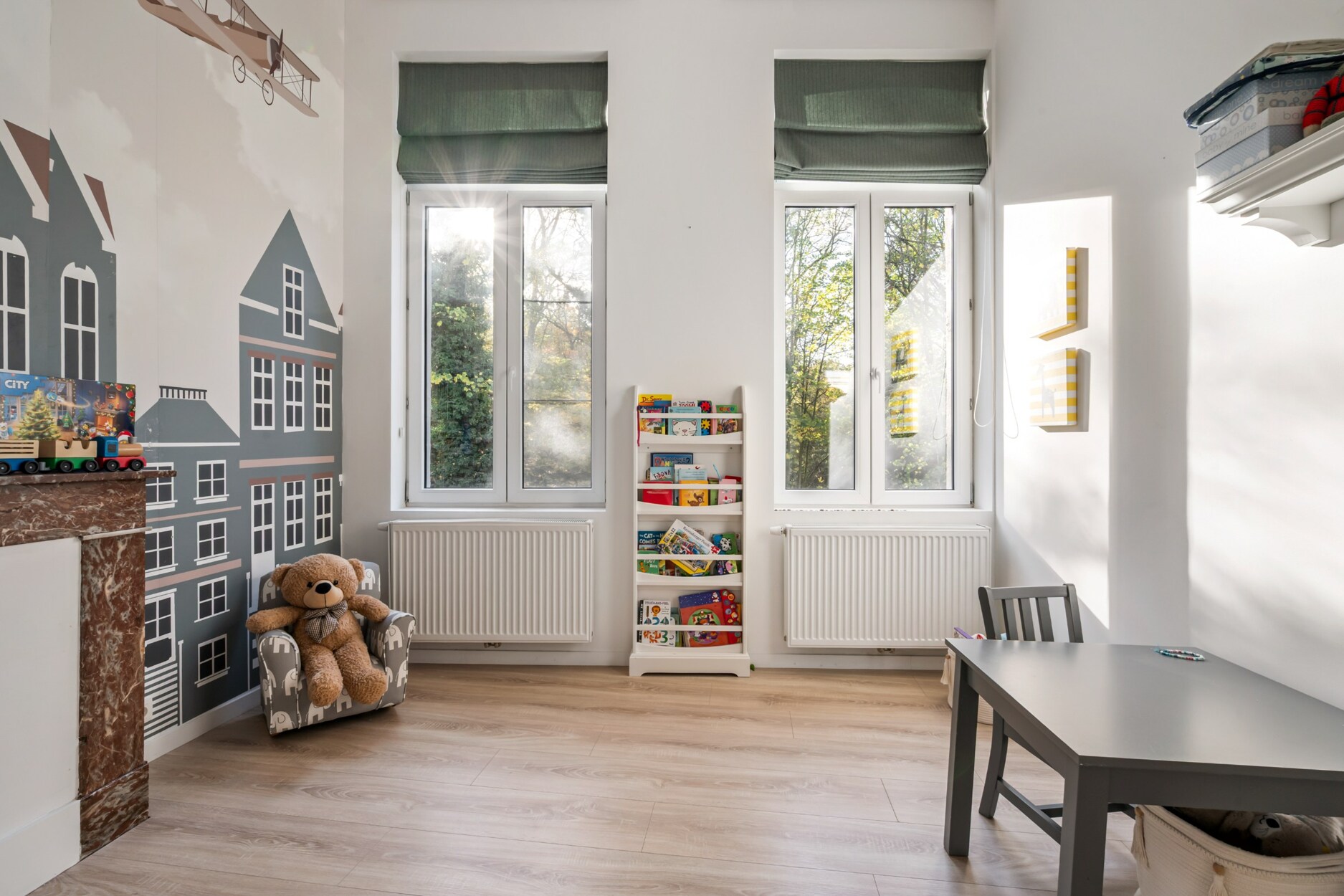 De eerste verdieping beschikt over twee ruime slaapkamers en een volledig uitgeruste badkamer. Op de tweede verdieping bevinden zich opnieuw twee slaapkamers en een bijkomende badkamer, wat deze woning ideaal maakt voor grotere gezinnen of voor wie extra ruimte vereist.