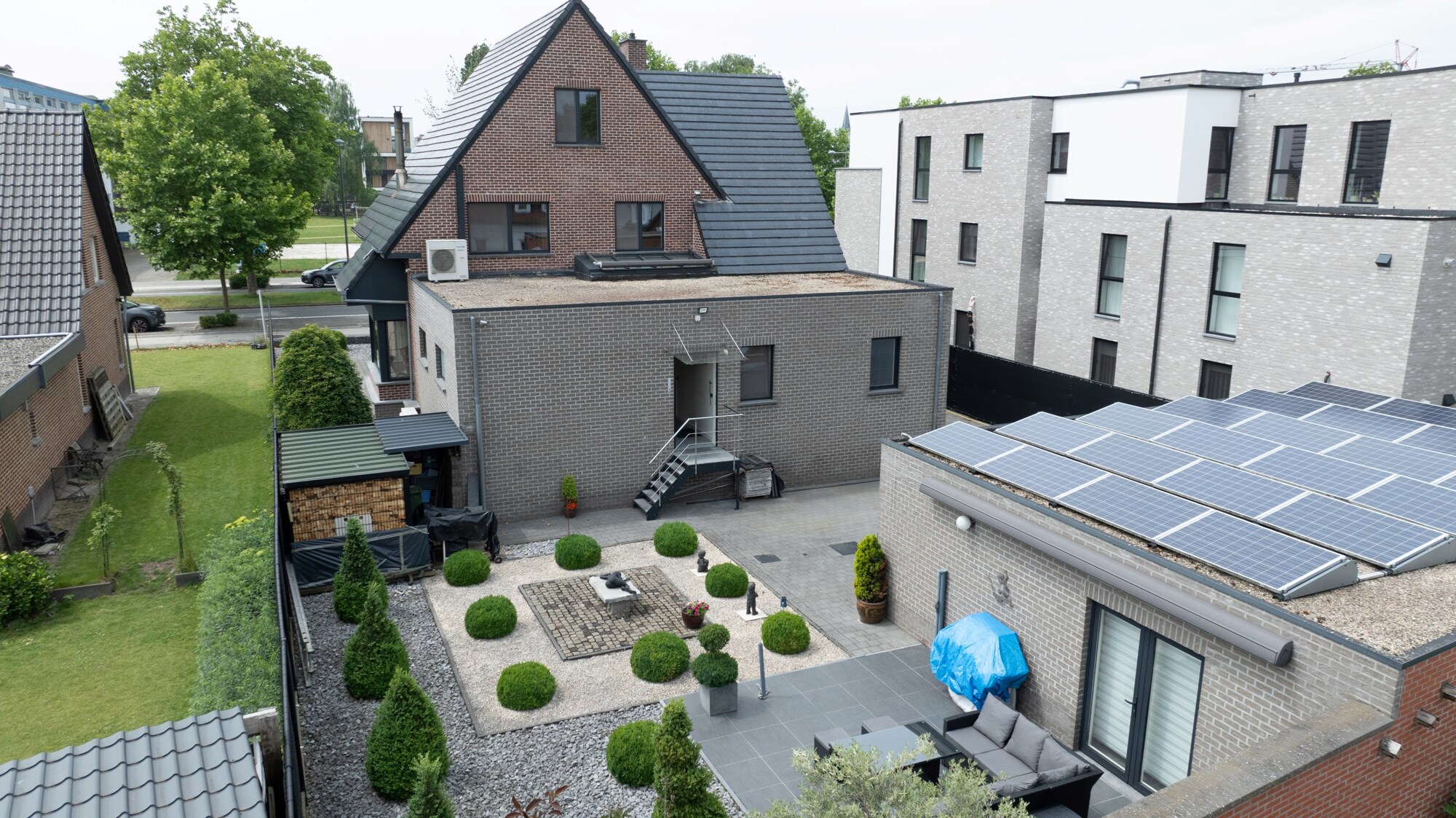 Ideale bereikbaarheid met de mogelijkheid tot beroep aan huis. Gelegen op een onderhoudsvriendelijk perceel van 771m2. Deze is volledig omheind en voorzien van een uitgebreid alarmsysteem met camera’s. De oprit geeft toegang tot de dubbele garage met atelier/werkruimte. Hier heeft men ook een noodsysteem met generator geïnstalleerd. De tuin is volledig aangelegd, het terras is voorzien van een zonneluifel en windscherm. De woning zelf is volledig gerenoveerd in 2013, met het oog op de toekomst. De leefruimtes worden momenteel verwarmd met de speksteenkachel, er is ook CV op aardgas via de radiatoren, tijdens de verbouwing is er ook een ventilatiesysteem geïnstalleerd.