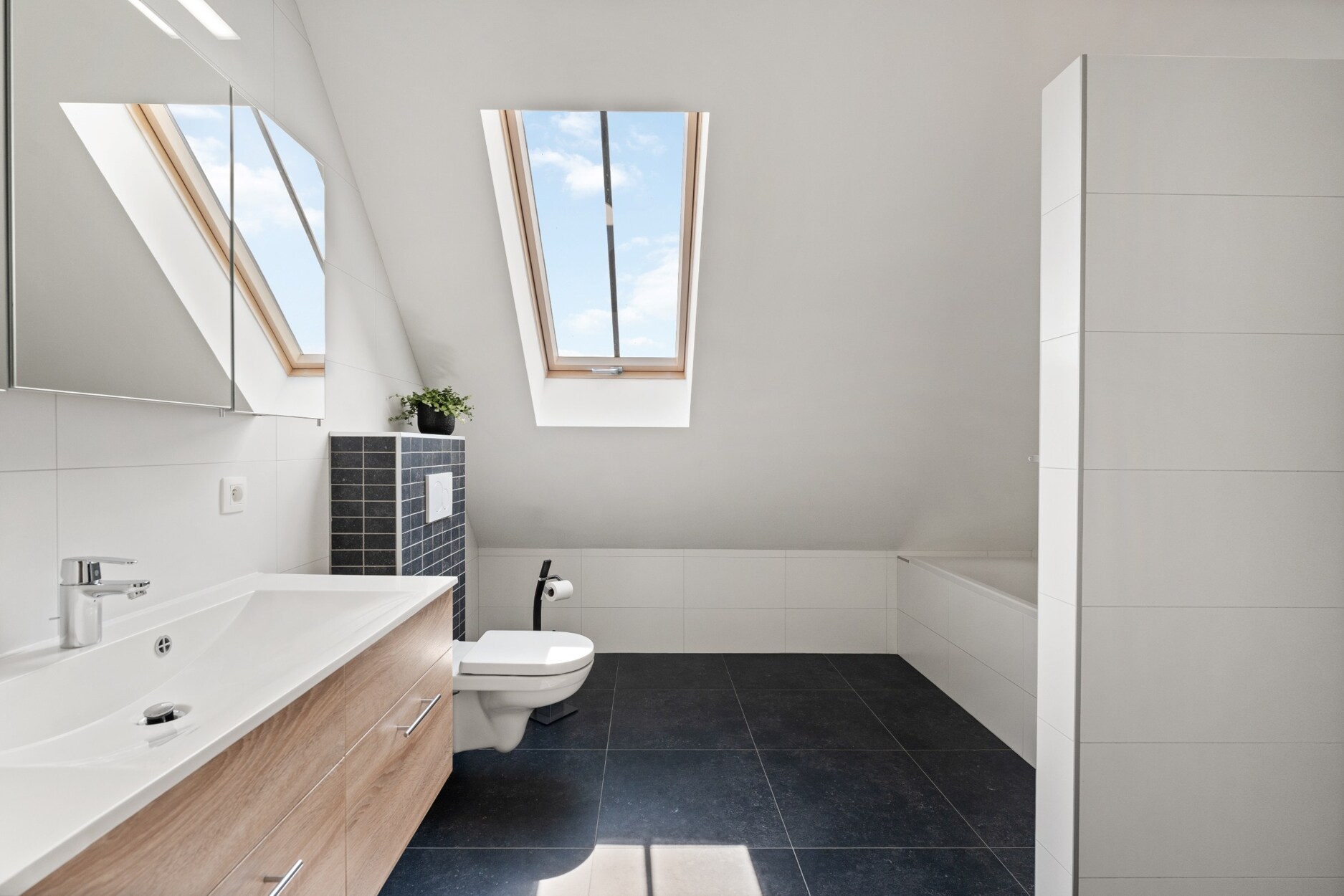 De eerste verdieping telt drie slaapkamers, waarvan één momenteel dienstdoet als polyvalente ruimte – eenvoudig op te splitsen in twee volwaardige kamers. Ruime 2de badkamer voorzien van een ligbad, douche, toilet en wastafel in meubel. Extra opbergruimte vindt u op de ruime bergzolder, bereikbaar via een vaste trap.