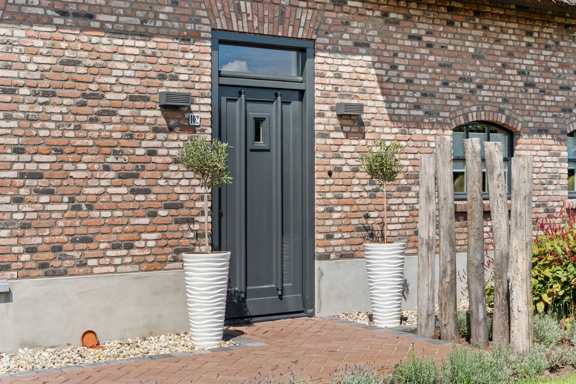 De volledig omheinde tuin is prachtig aangelegd en straalt rust en privacy uit. Dankzij de automatische toegangspoort, beregeningsinstallatie en meerdere zonneterrassen, is deze tuin een echte meerwaarde. Hier geniet u op elk moment van de dag van zon of schaduw.