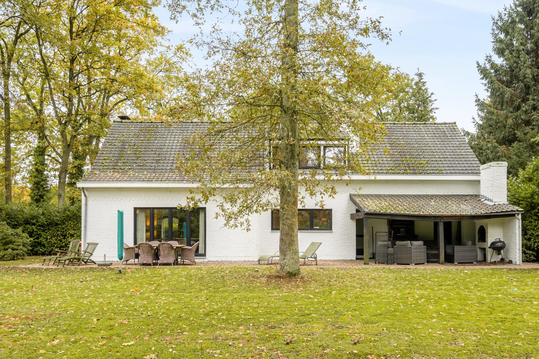 De zuidoostgerichte tuin vormt een groene buffer tussen de woning en de omgeving en biedt een verrassend gevoel van privacy. Dankzij het ruime perceel en het overdekte terras met haard geniet men hier van volop van de buitenruimte.