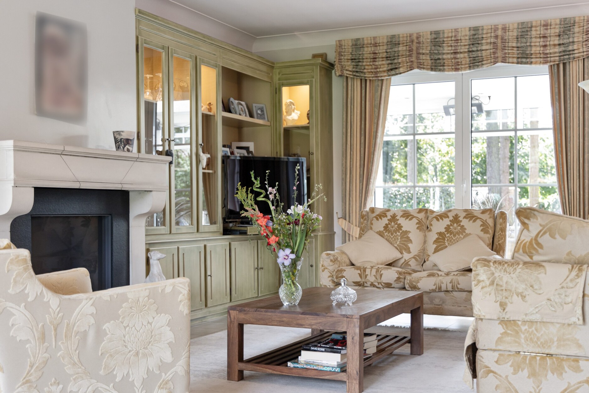 Deze heeft een Franse stenen haard op gas en een op maat gemaakt meubel dat ze de sfeer bepaald van deze gezellige ruimte.