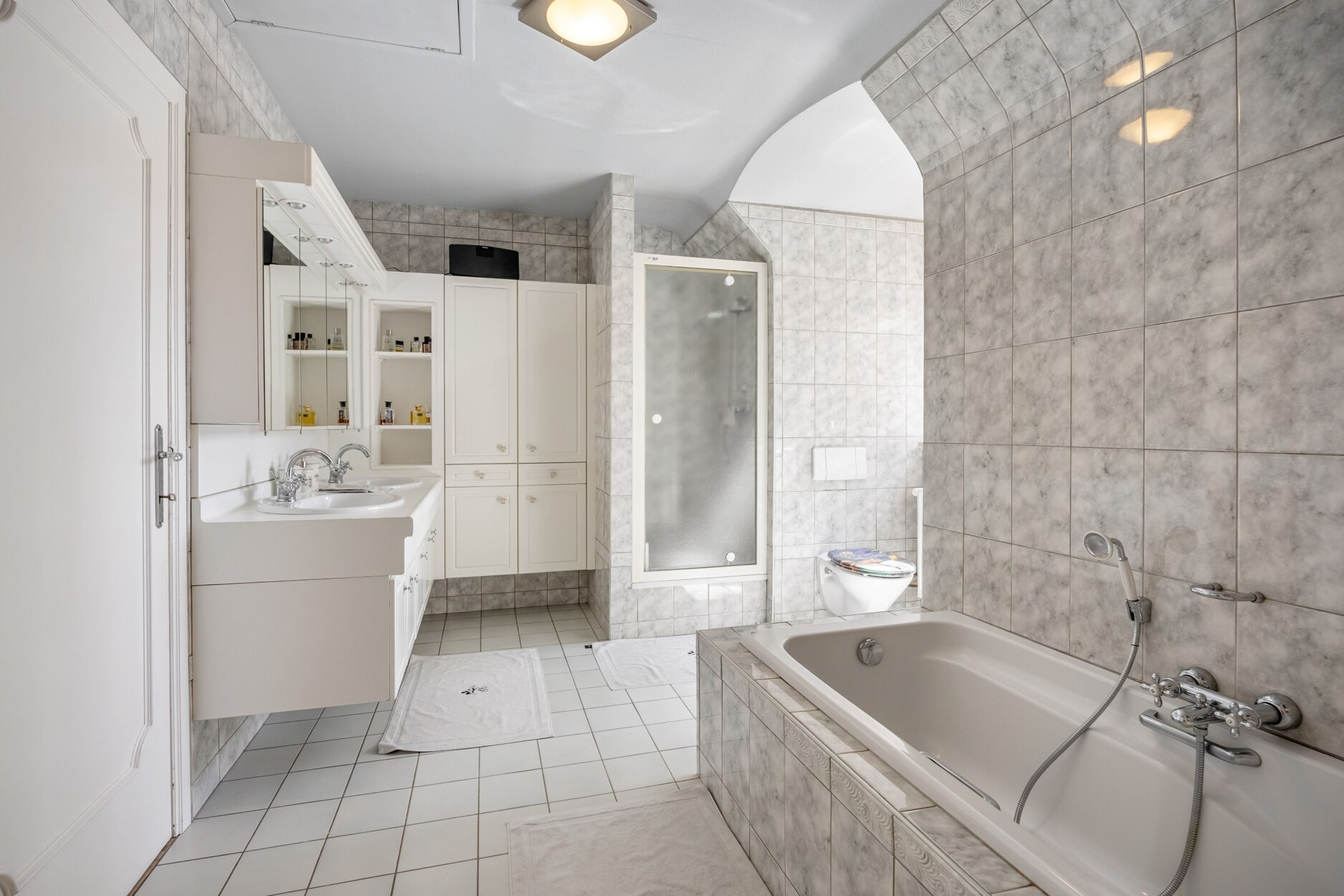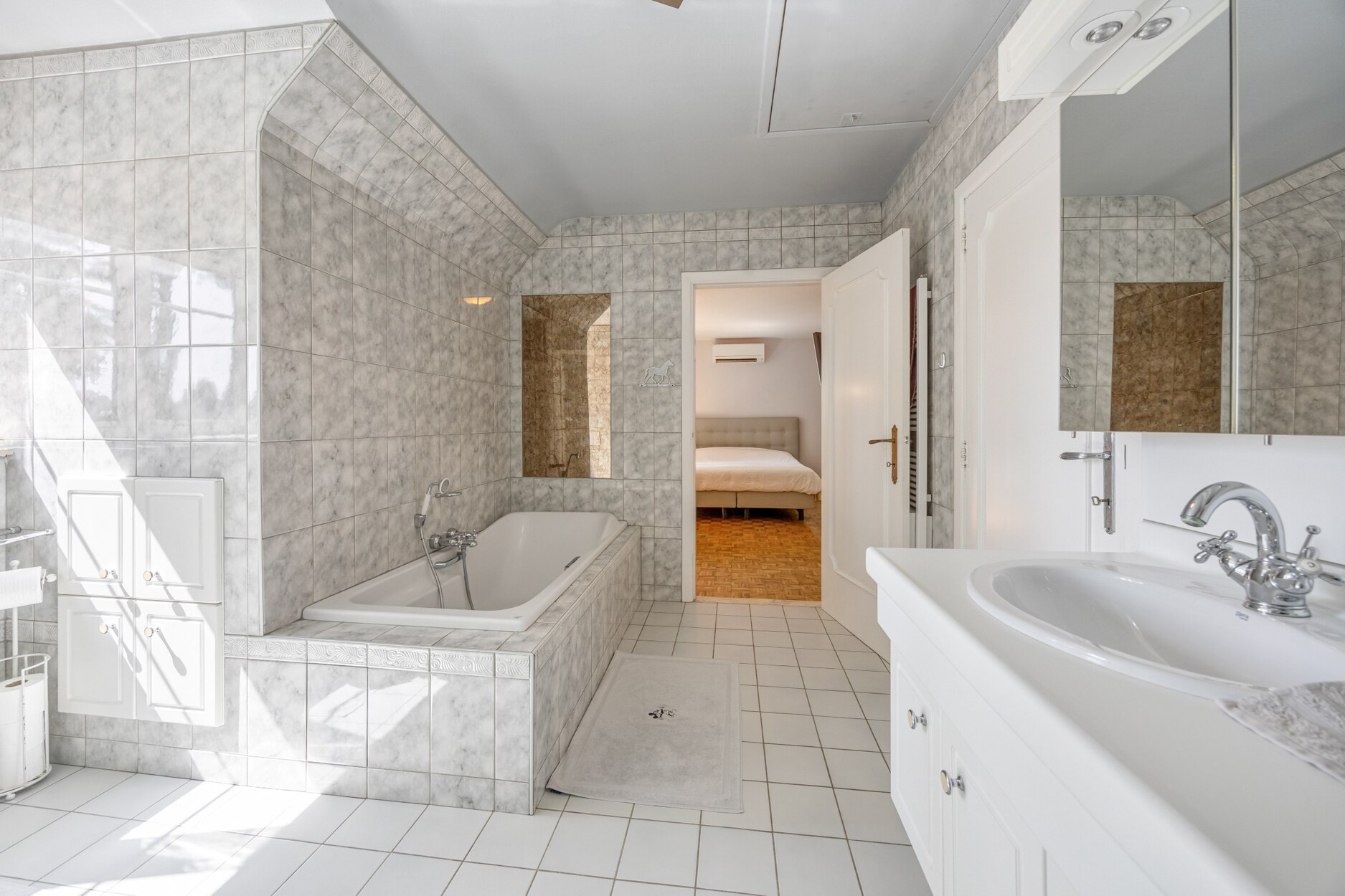 Op de bovenverdieping vinden we 4 ruime slaapkamers waarvan 1 met dressing en aansluitend een badkamer met bad, douche en toilet. De 3 andere slaapkamers beschikken alle 3 over een wateraansluiting. Er is ook een vlotte toegang tot de volledig geïsoleerde stockage zolder.