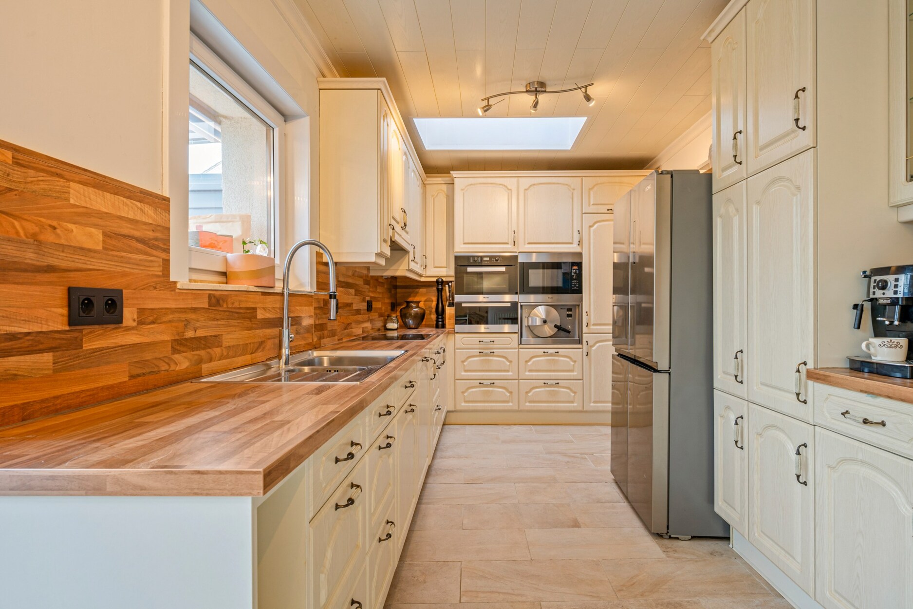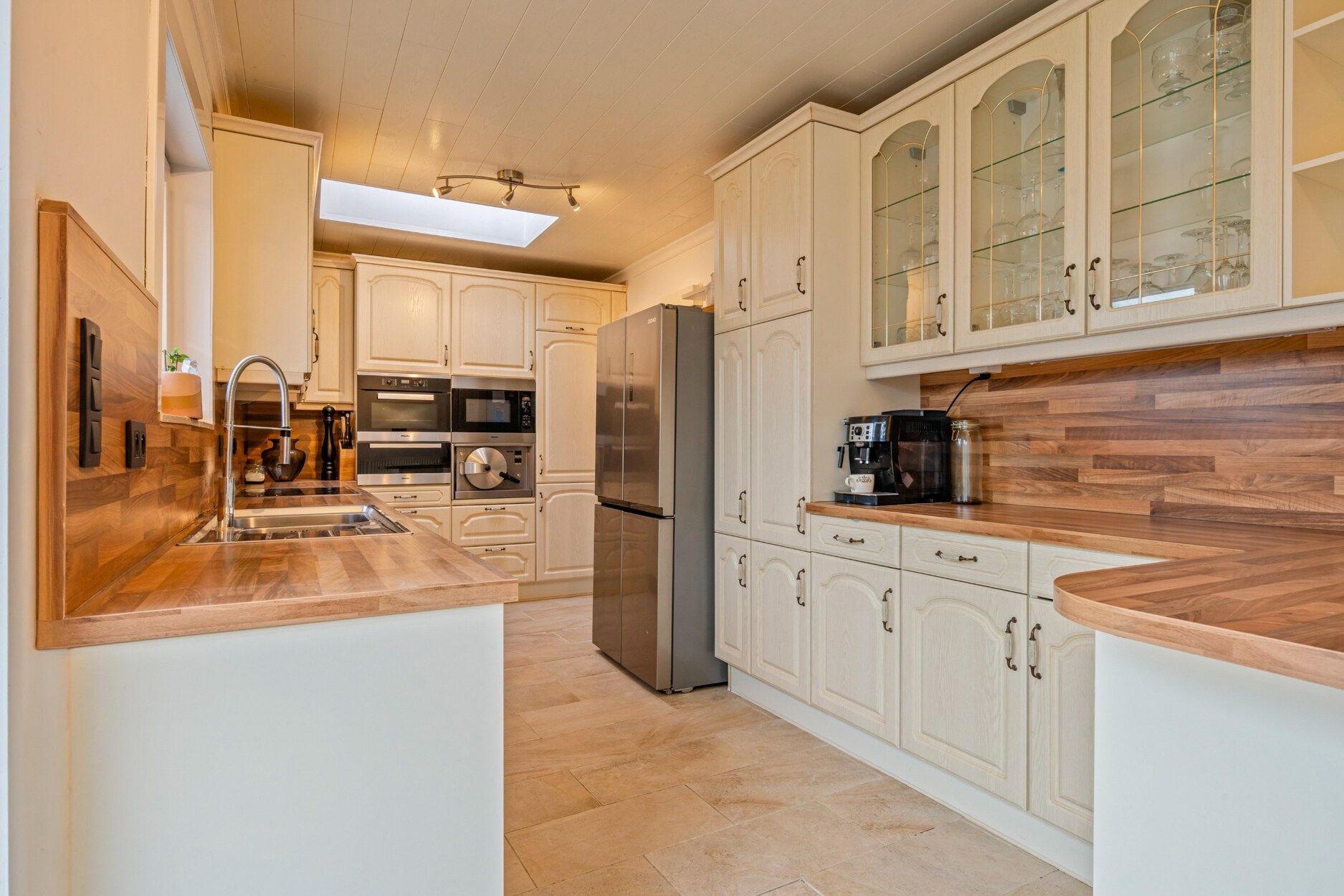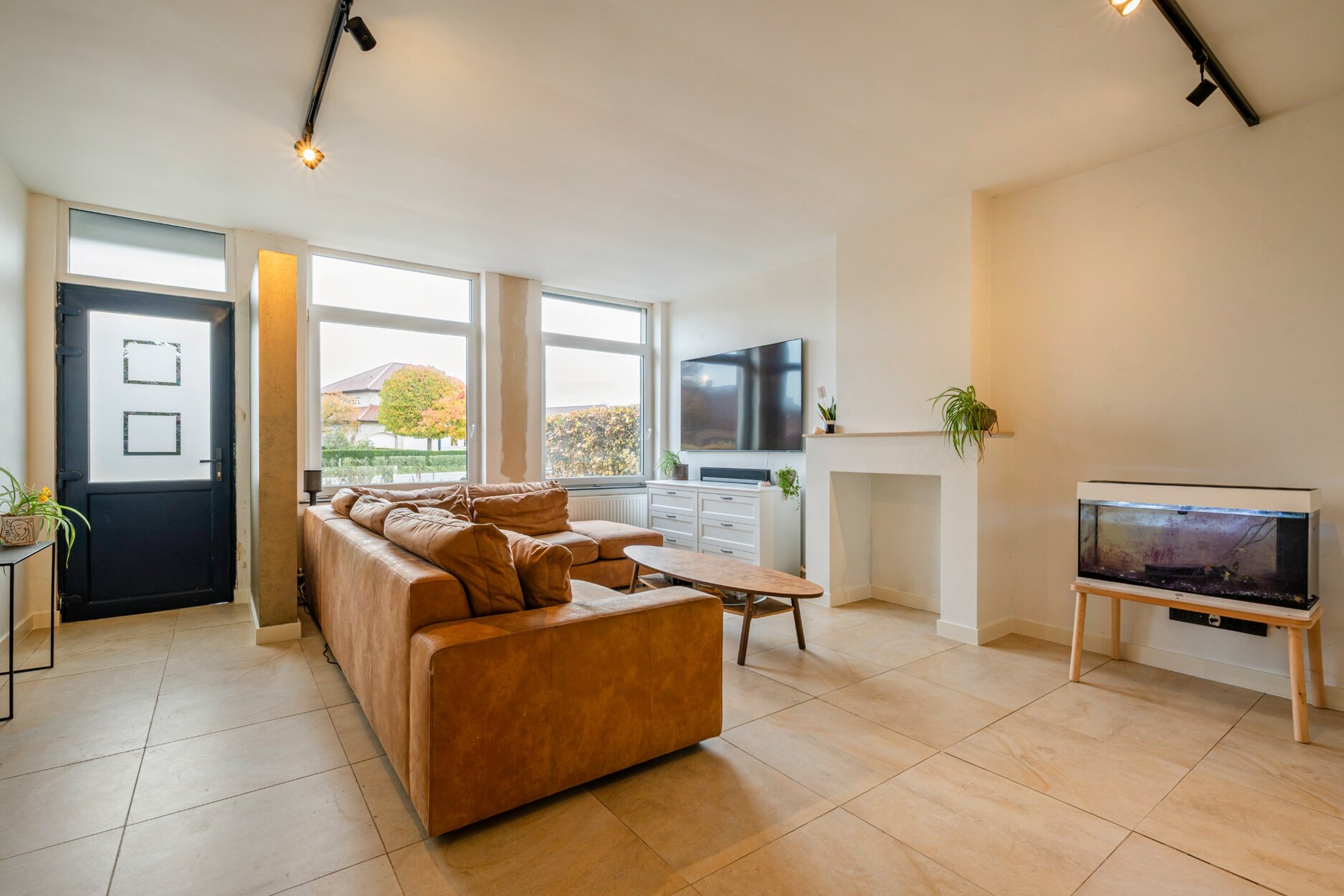 Bij het binnentreden treffen we grote lichtrijke plaatsen aan. Aansluitend op de keuken is er de veranda met zicht op de diepe tuin. Hier kunnen de kleintjes zich uitleven.