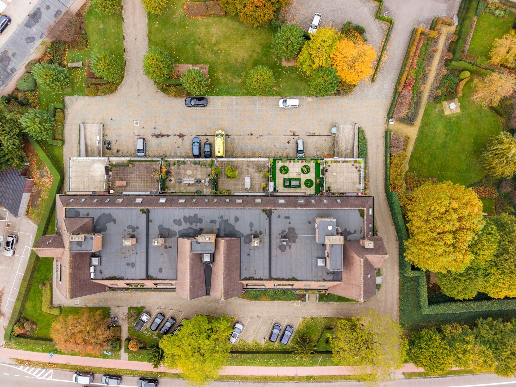8 private achterliggende autostaanplaatsen. Parking voor het gebouw, gratis parking Snollaert of betaalparking van cinema UGC.