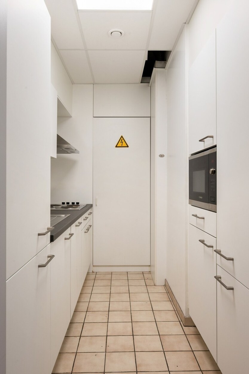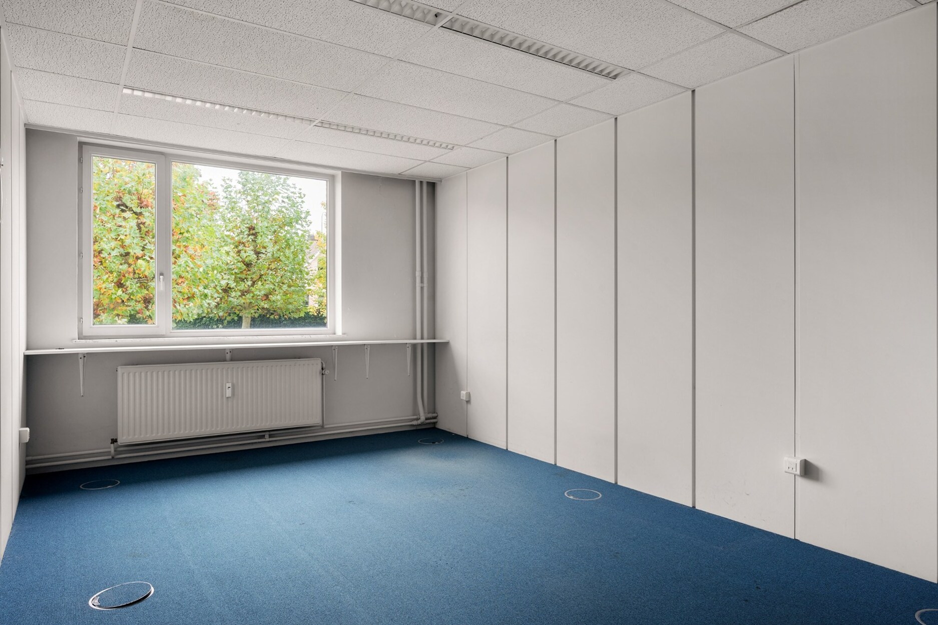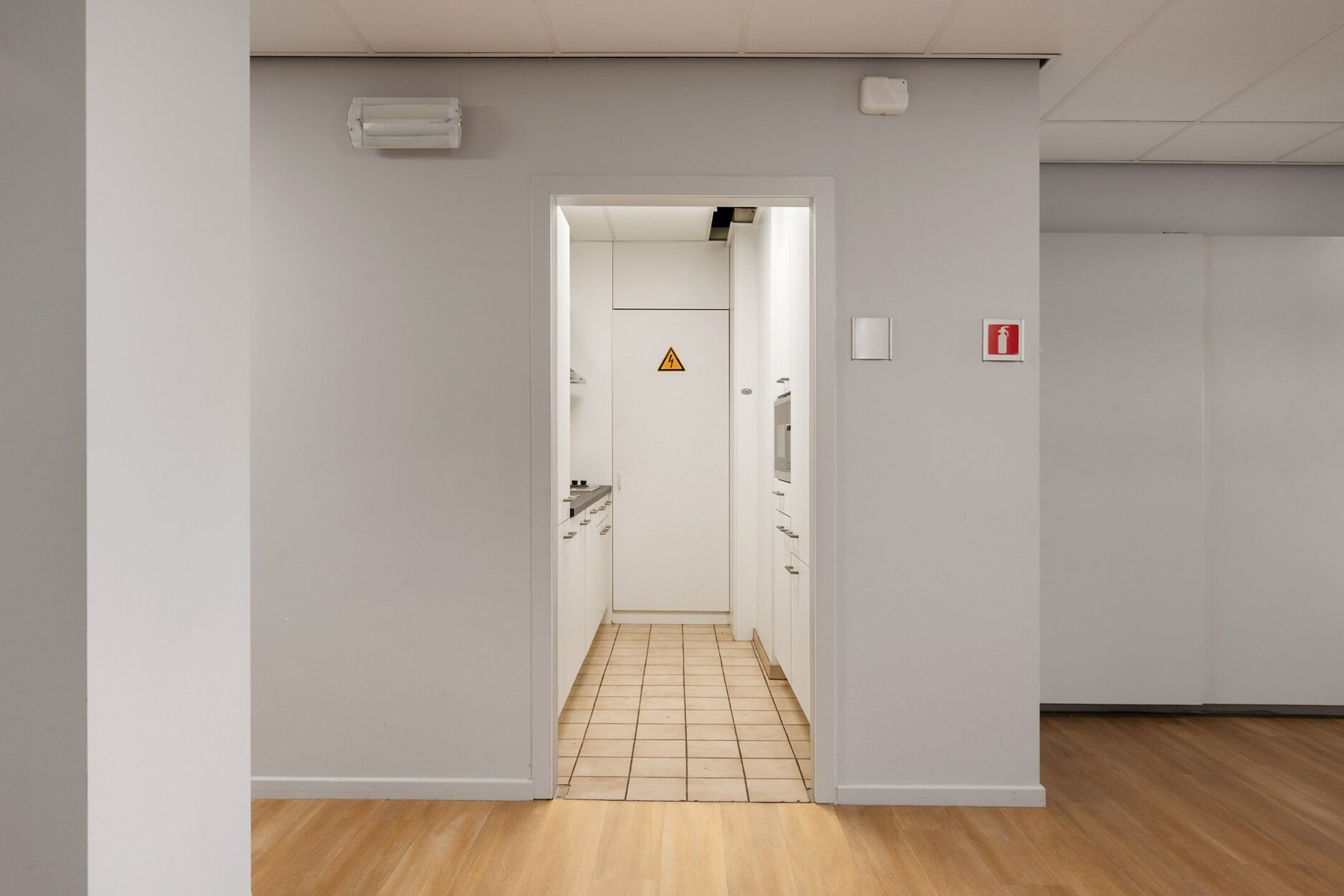 Ruime inkomhal, 2 kantoren aan de voorkant, 2 open kantoorruimtes, wachtruimte en een ruime stockage ruimte. Sanitaire voorziening. Uitgeruste kitchenette. Achteraan een lange gang met ingemaakte kasten, archiefruimte, 8 kantoren en 2 vergaderlokalen. Door valse wanden zijn deze ruimtes perfect moduleerbaar (mogelijkheid creëren eigen indeling).