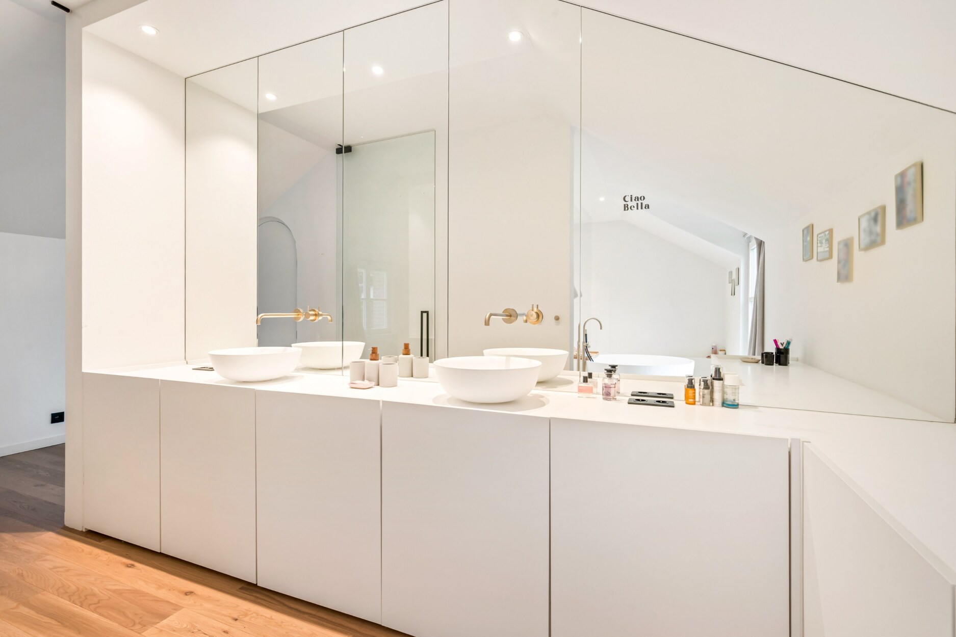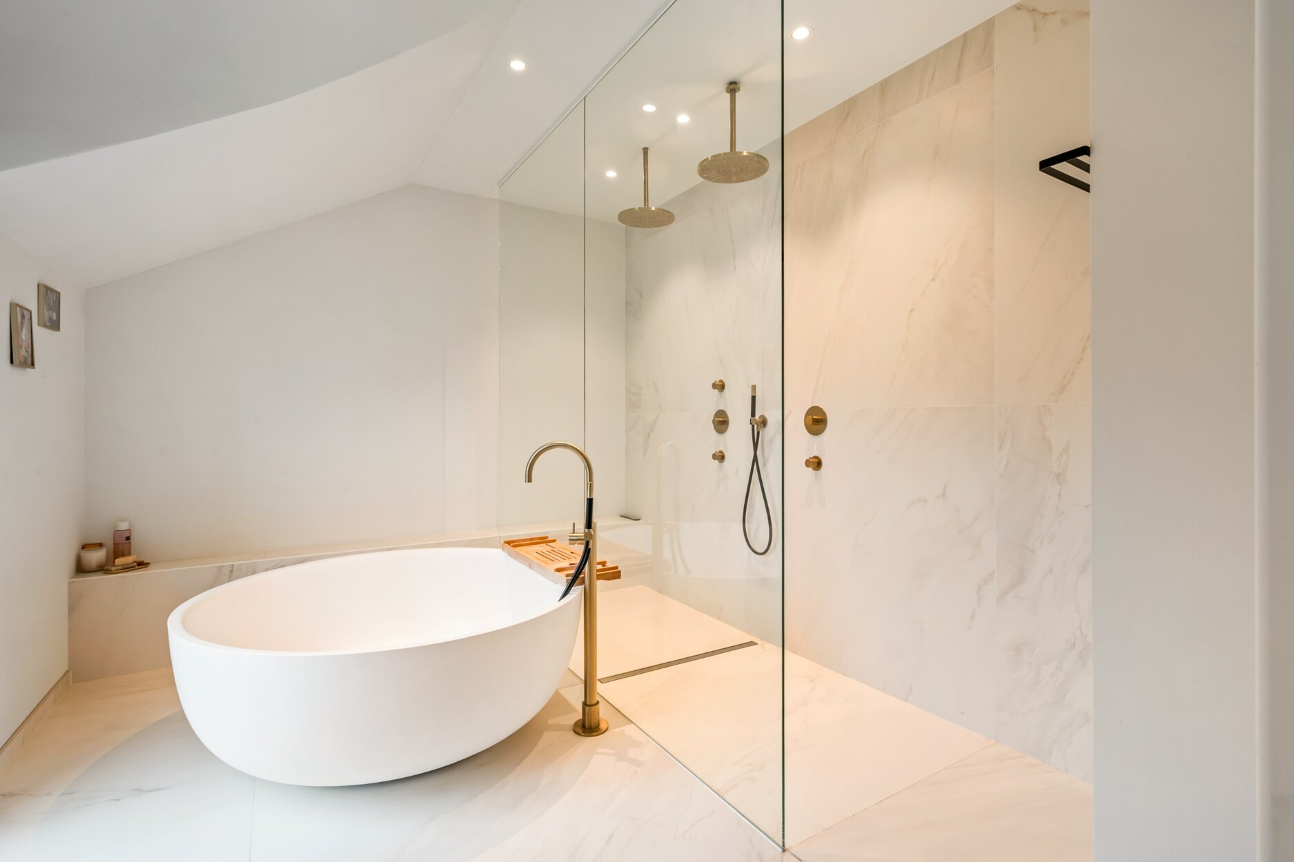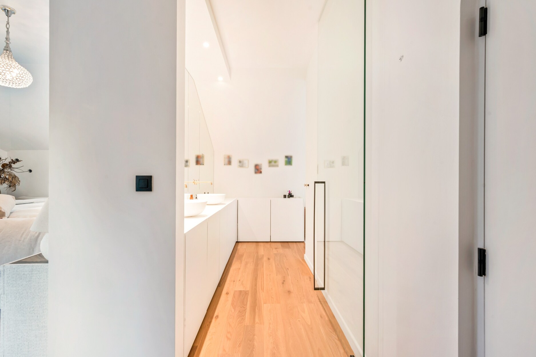 De masterbedroom is een waar luxe toevluchtsoord, voorzien van een ruime ingemaakte dressing en een elegante badkamer met ligbad én dubbele inloopdouche. Daarnaast bevinden zich op deze verdieping nog drie volwaardige slaapkamers, een extra badkamer en een apart toilet.