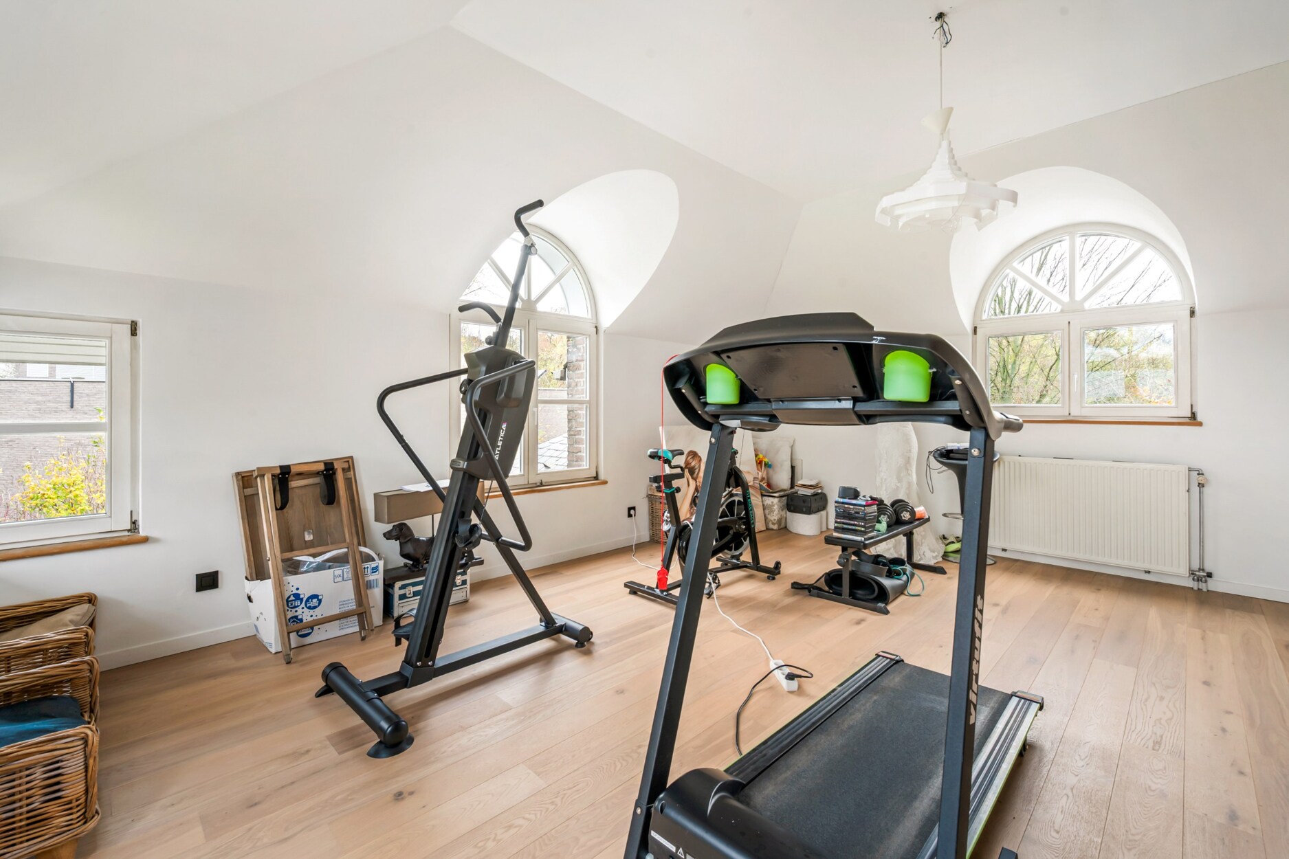 De bovenste verdieping biedt een zeer ruime ingerichte zolder, die momenteel dienst doet als fitnessruimte. Deze open ruimte kan ook dienen als speelzolder, extra slaapkamer, atelier of opslag.