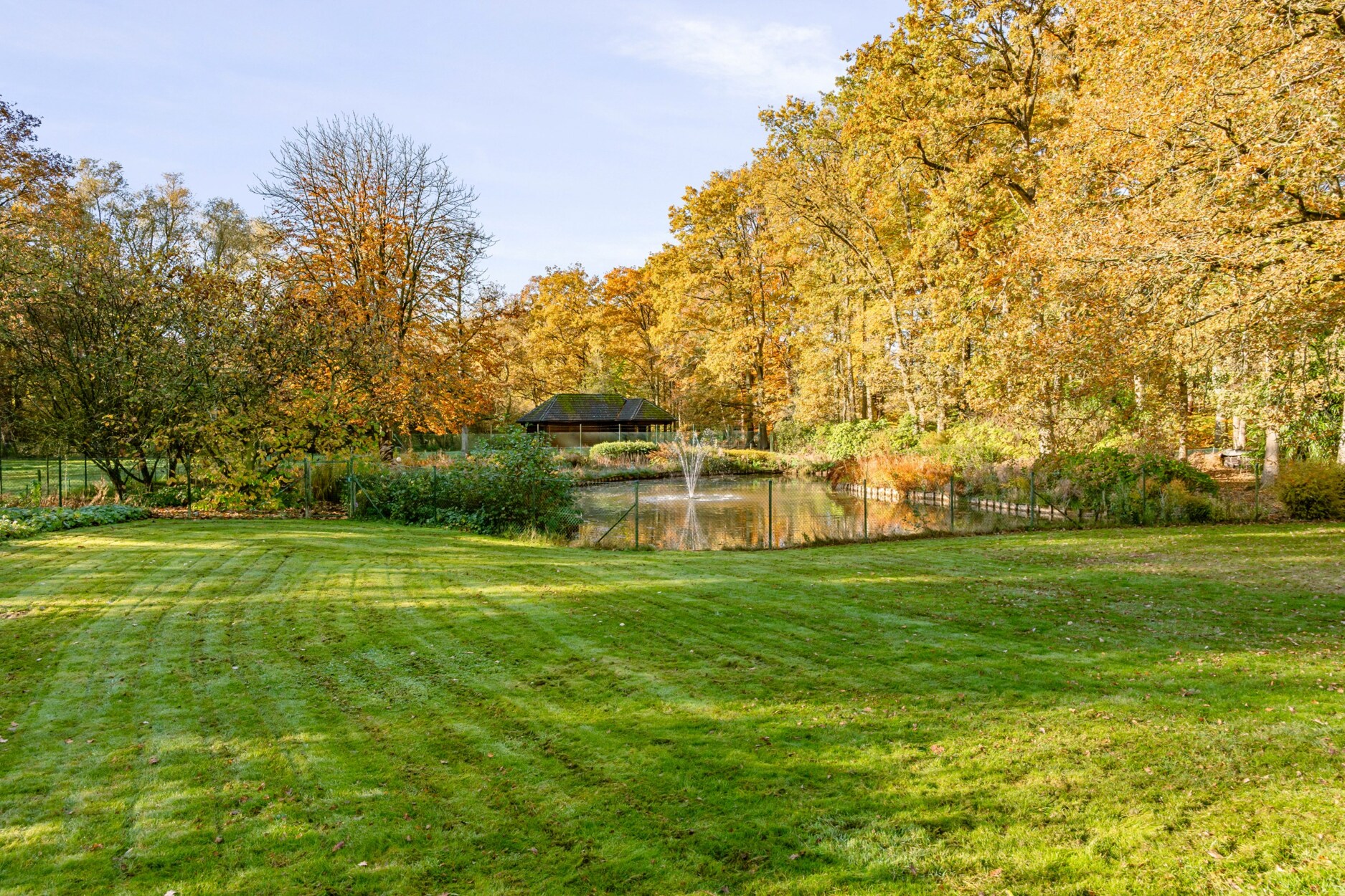 De zuidwest-georiënteerde parktuin vormt een ware oase van rust, met weidse vergezichten en een bijzonder harmonieuze groenbeleving. De tuin werd smaakvol aangelegd, inclusief een fraaie vijverpartij, en beschikt bovendien over een bijgebouw/stal voor het houden van dieren — ideaal voor paarden- of dierenliefhebbers, of voor wie een hobbyproject wenst te realiseren.