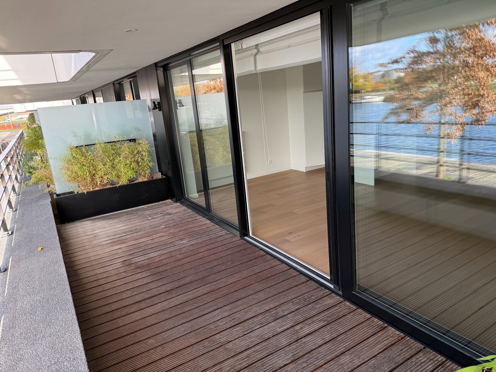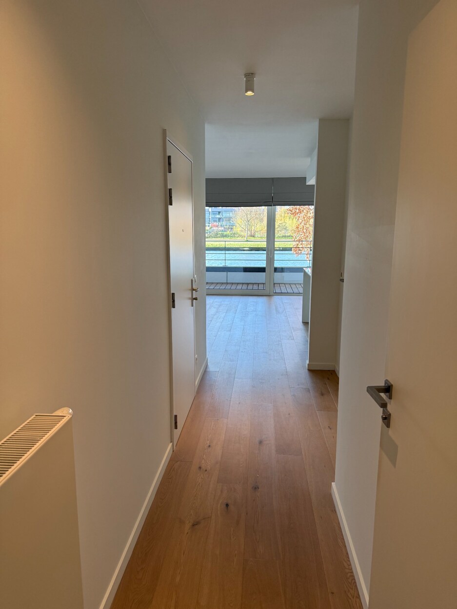 Ruimte voor een grote eettafel en dito zetel. Van elke zijde uit is er uniek zicht op het kanaal en verder. In de hal is er de berging/wasplaats en een apart toilet. De badkamer heeft een wastafelmeubel, inloopdouche en toilet. Op het einde van de hal is er de ruime slaapkamer.