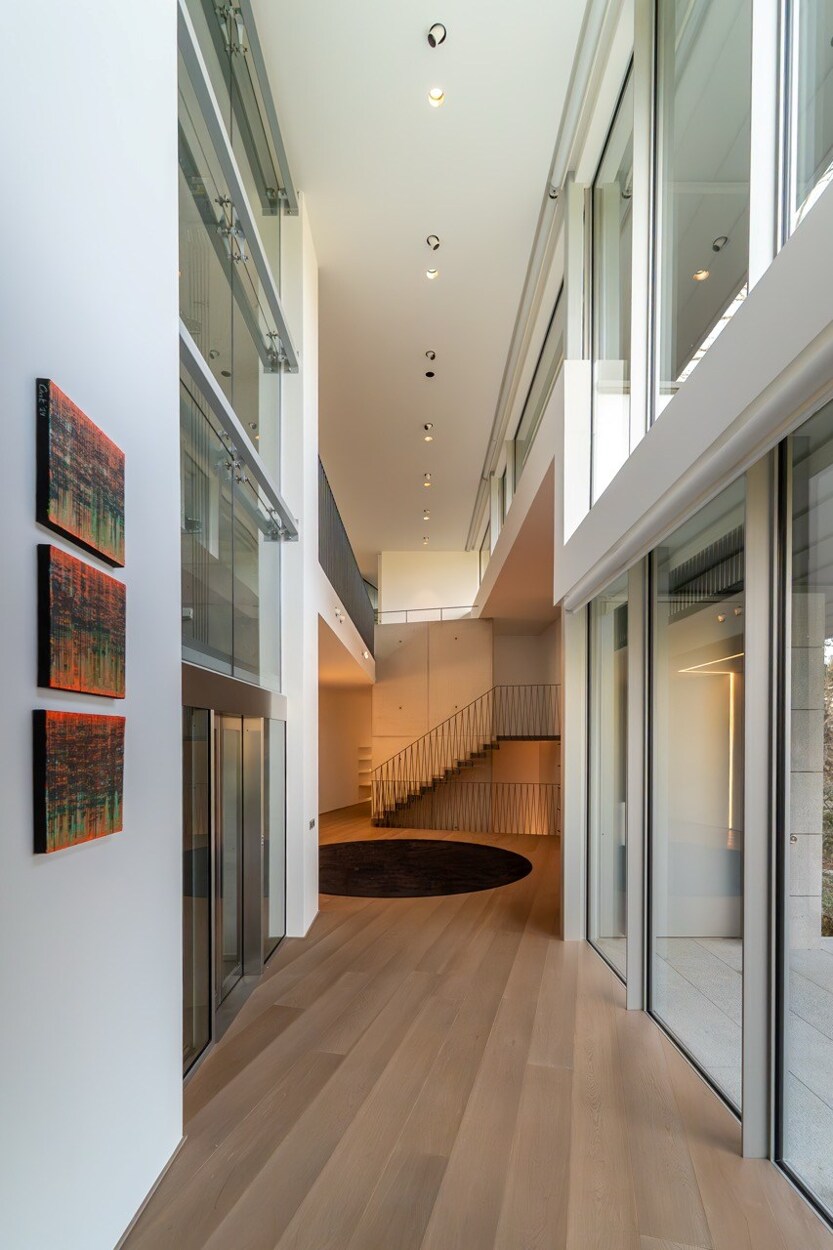 Technische kenmerken: glazen lift voor acht personen, garage voor vijf wagens, wijnkelder, wasruimte, dubbele ventilatie, twee condensatieketels en twee boilers.