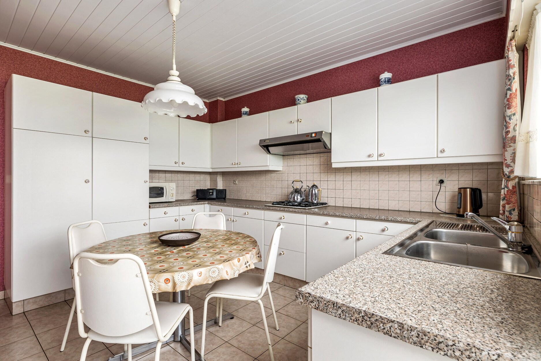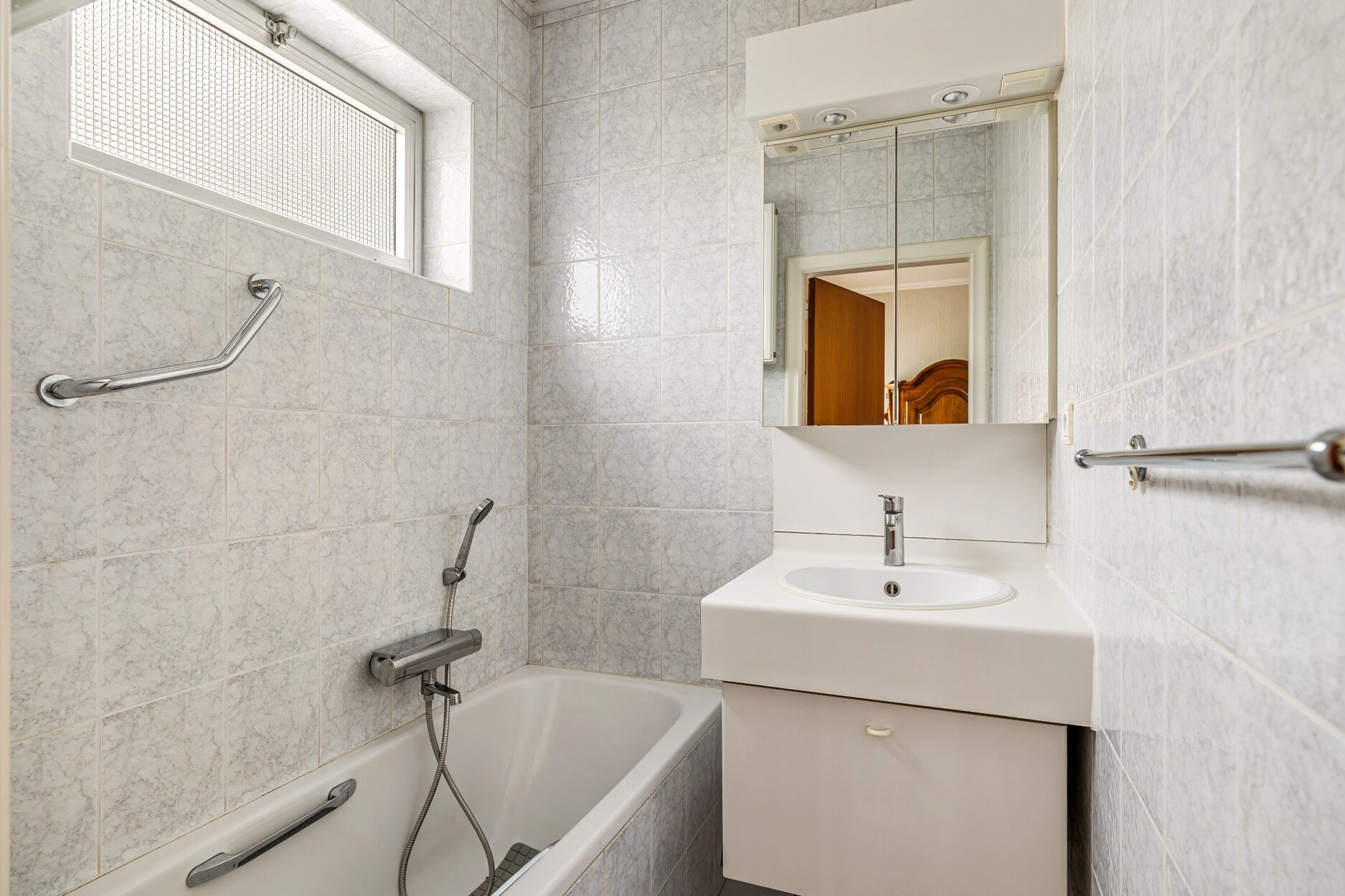 De ruime inkomhal geeft toegang tot de eerste gelijkvloerse slaapkamer of kantoorruimte waardoor het ideaal is voor een zelfstandige activiteit hier klanten te ontvangen, anderzijds kan u van hieruit de lichtrijke woonkamer bereiken. Voorts zijn er nog 2 ruimtes die als slaapkamer gebruikt kunnen worden, alsook een badkamer en apart toilet. De keuken is apart en voorzien van de nodige ingemaakte toestellen. Hier sluit de overdekte veranda op aan waarlangs u ook toegang heeft tot de ruime garage en aparte berging.