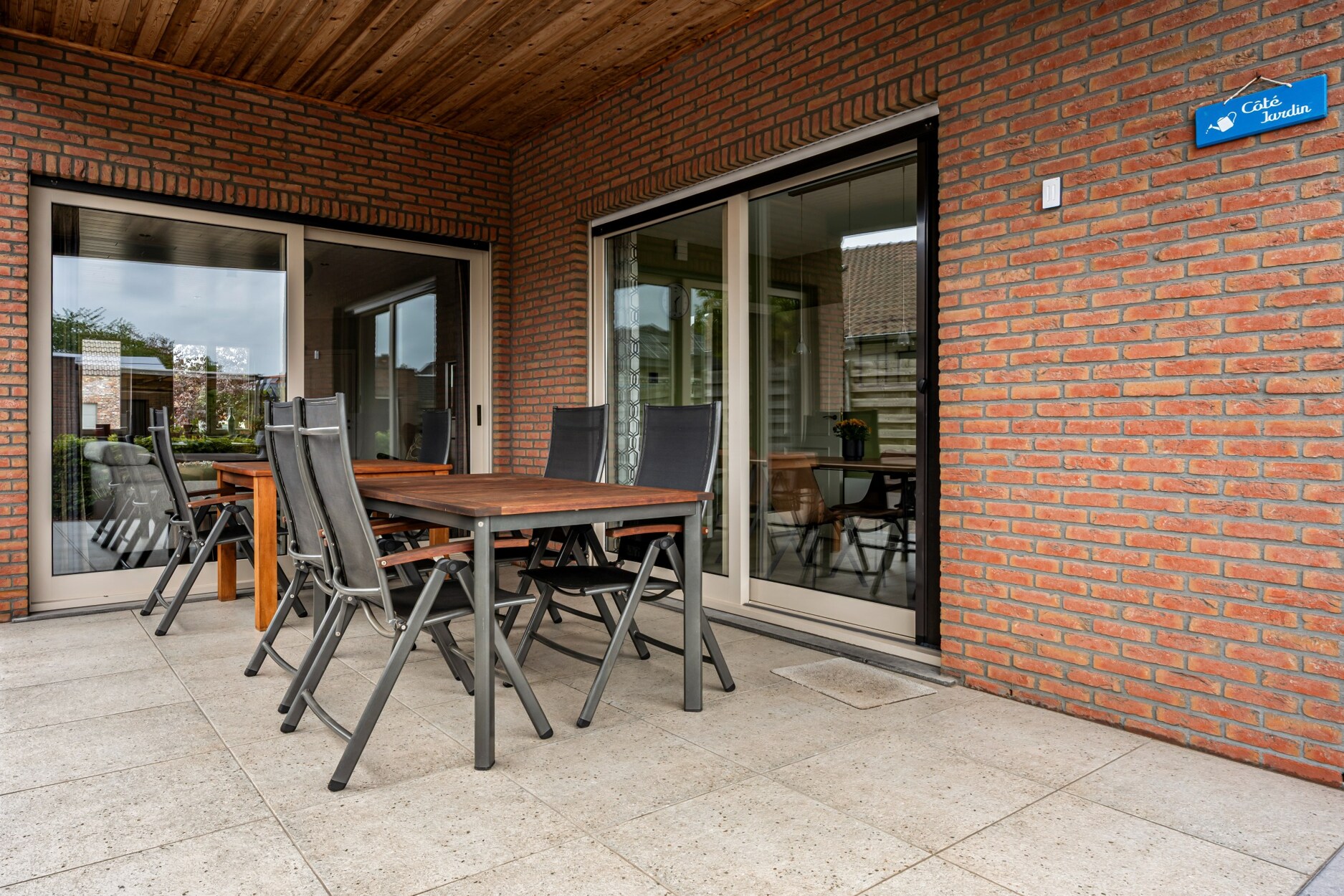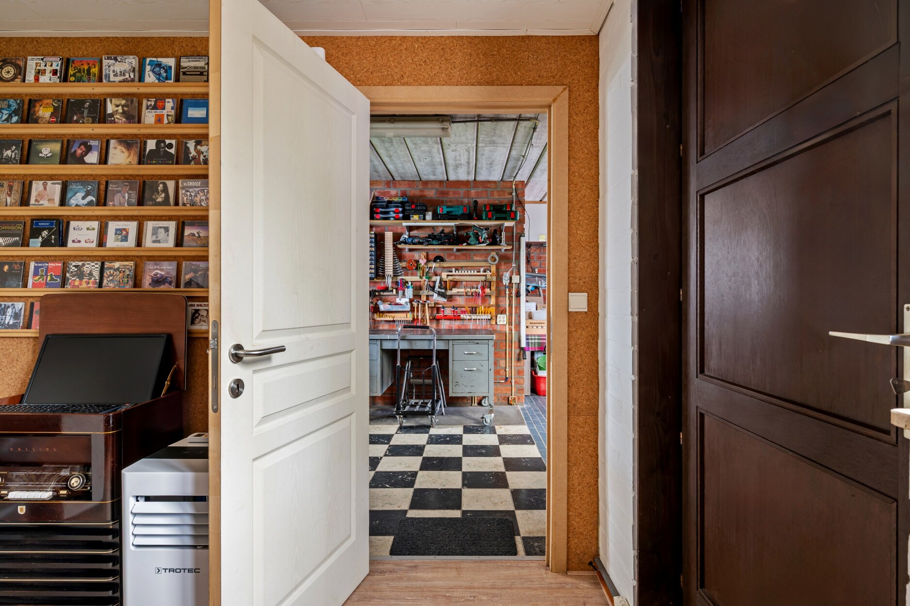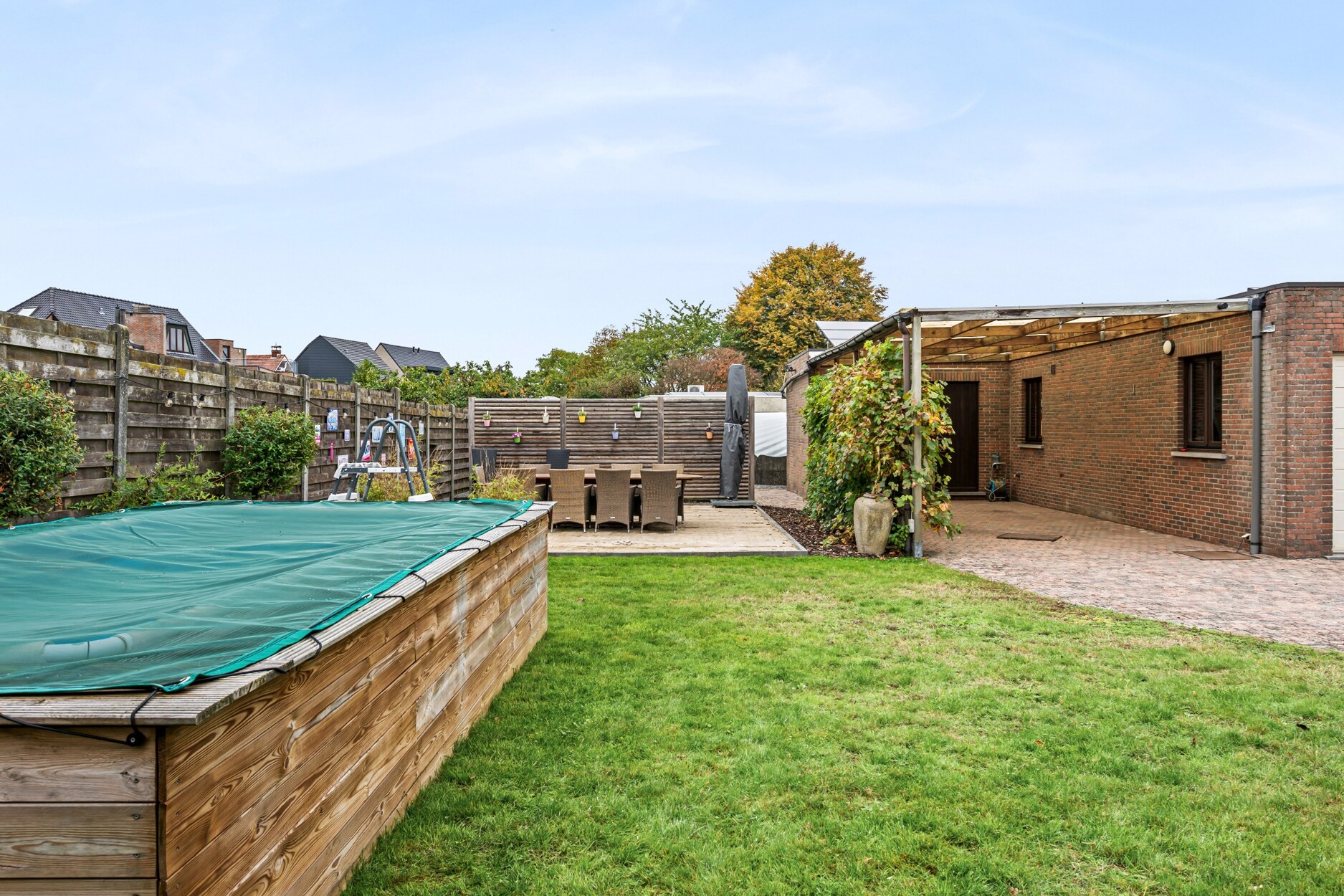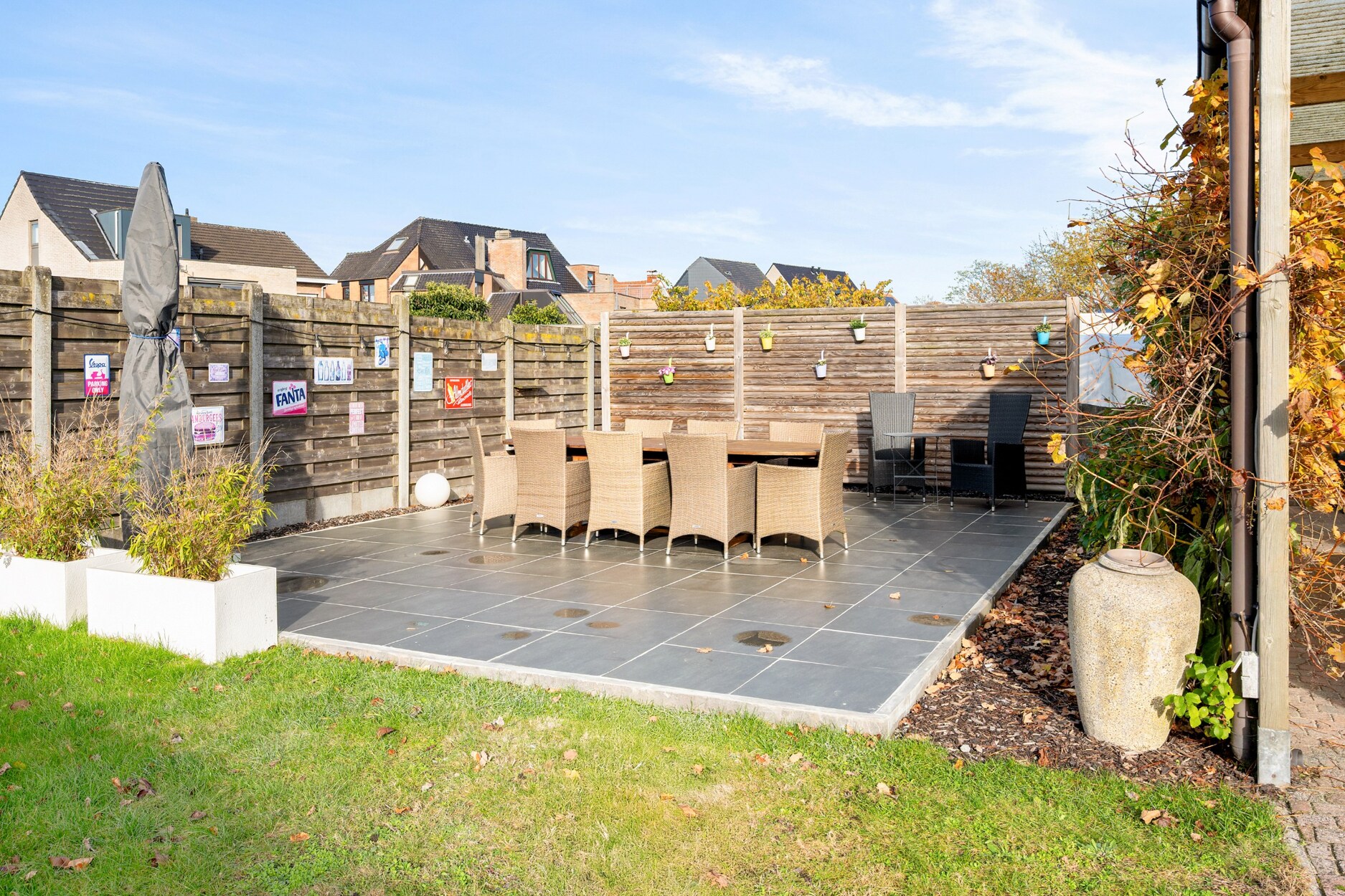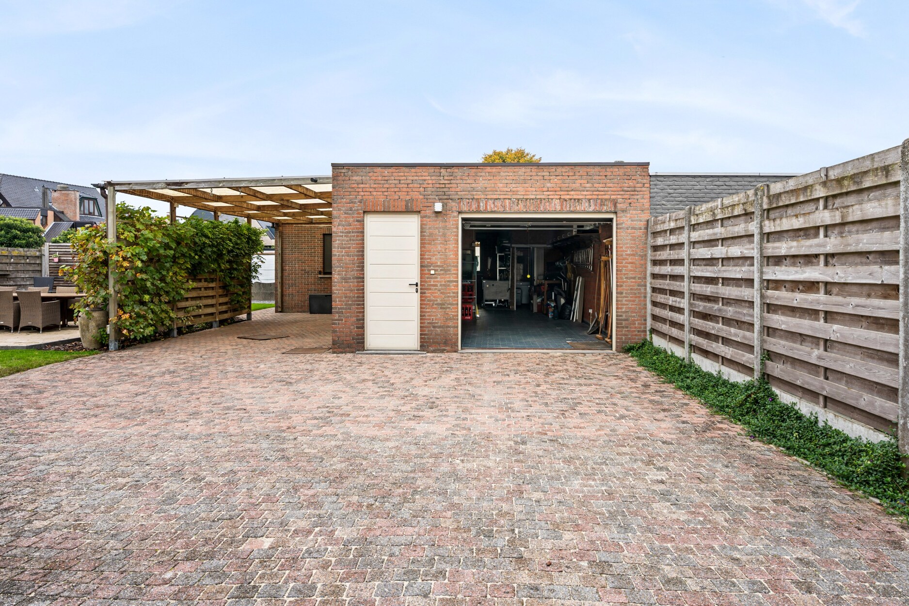 De tuin is verzorgd en onderhoudsvriendelijk aangelegd. Grote vrijstaande garage/bergplaats rechts achteraan het perceel met recente automatische poort.
