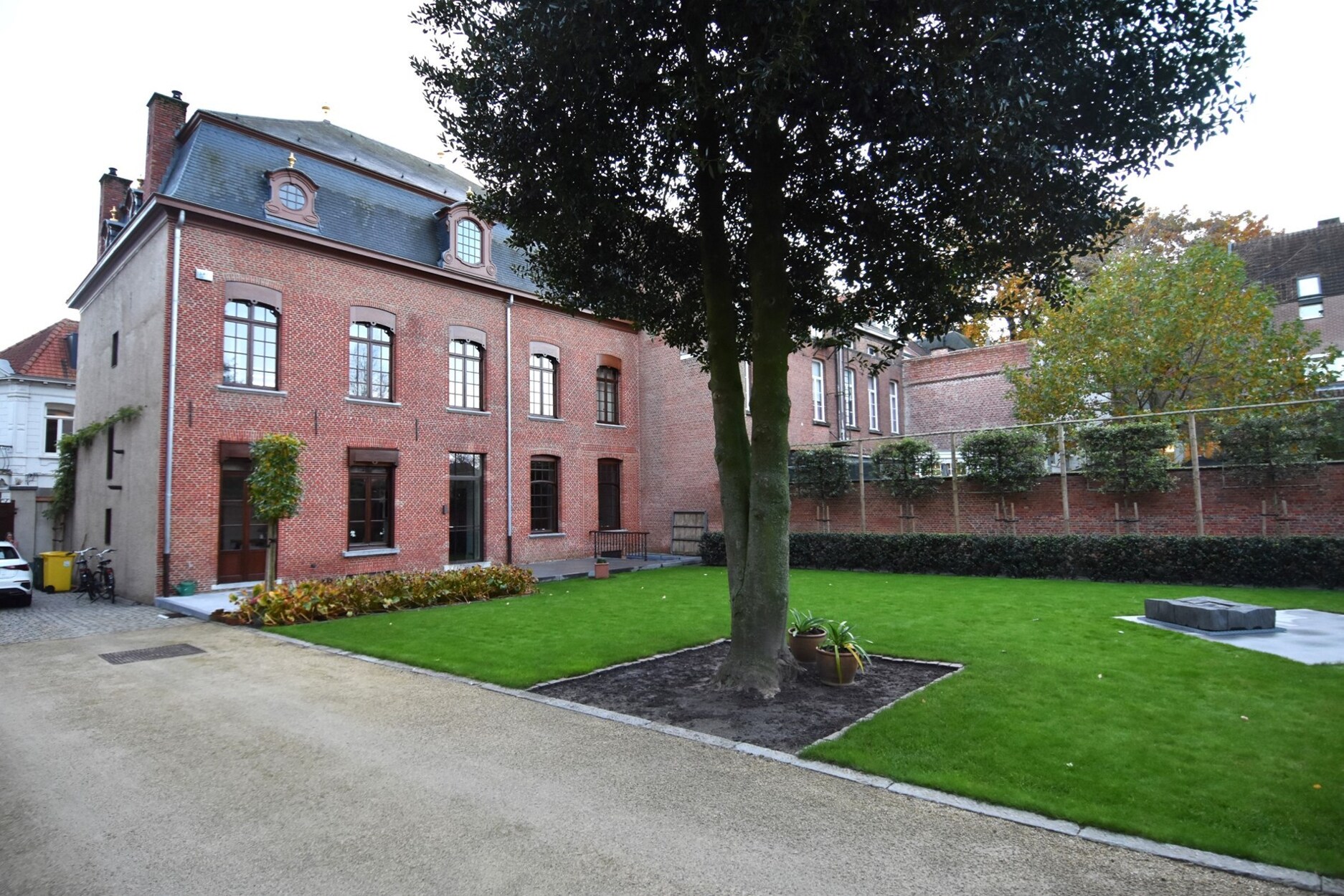 De uiterst verzorgde tuin is in gemeenschappelijk gebruik met de verhuurders. Hier kan je ten alle tijde in alle rust vertoeven. Parkeren vormt hier ook geen probleem. Er is voldoende plaats om een wagen/fiets veilig achter de poort te plaatsen. Je kan zowel langs de voorkant als de achterkant binnen/buiten rijden.
