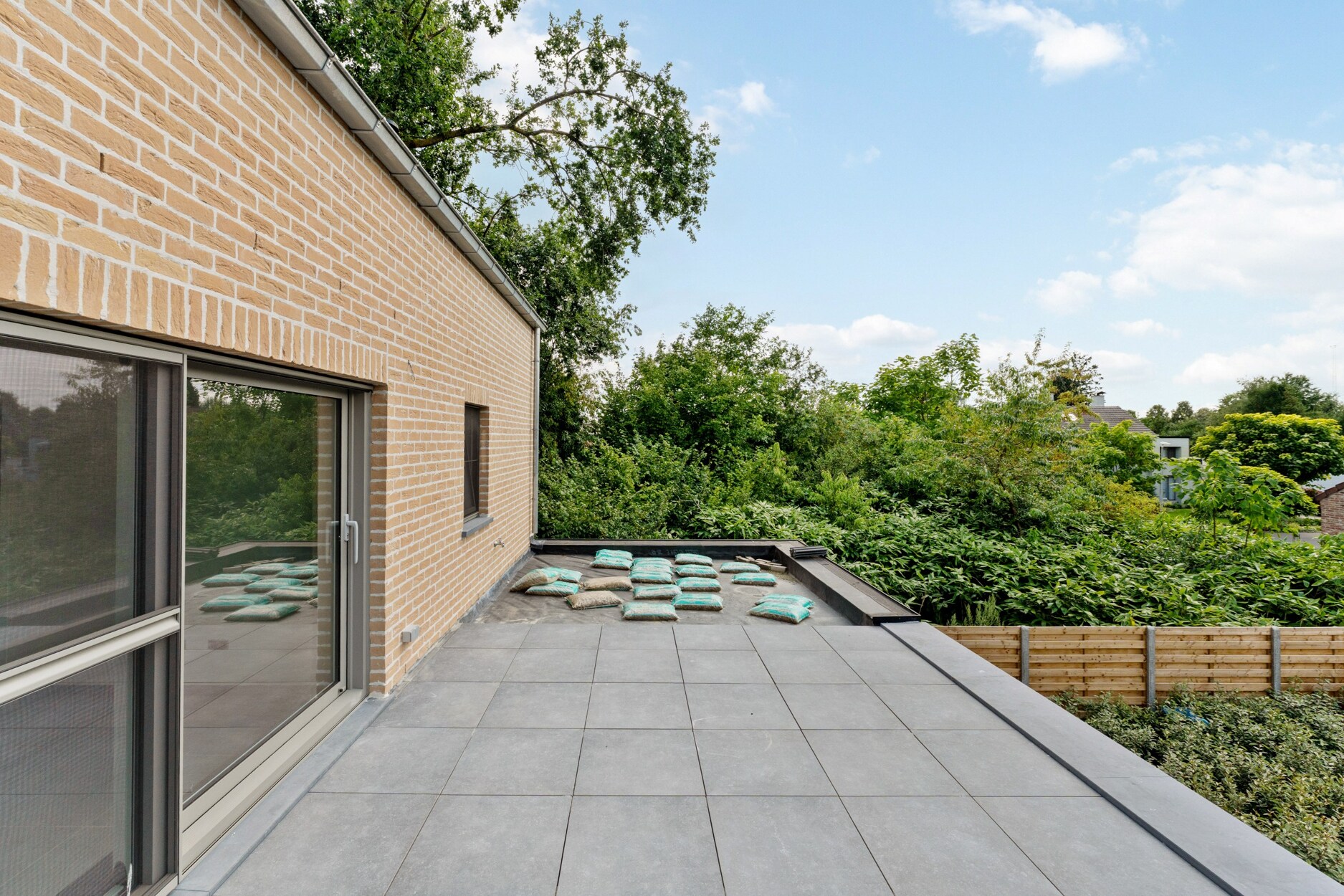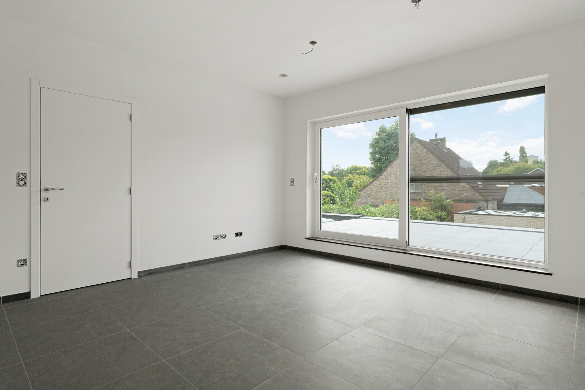 Het omvat: keuken, badkamer, wasplaats, woonkamer, 3 slaapkamers, toilet en terras. De keuken is voorzien van alle benodigde toestellen. De badkamer heeft zowel bad als douche. Aansluitend aan de woonkamer is een zonneterras. Er is geen lift voorzien in deze beperkte blok van 2 appartementen. (boven elkaar) Achteraan het perceel is een tuinberging voorzien.