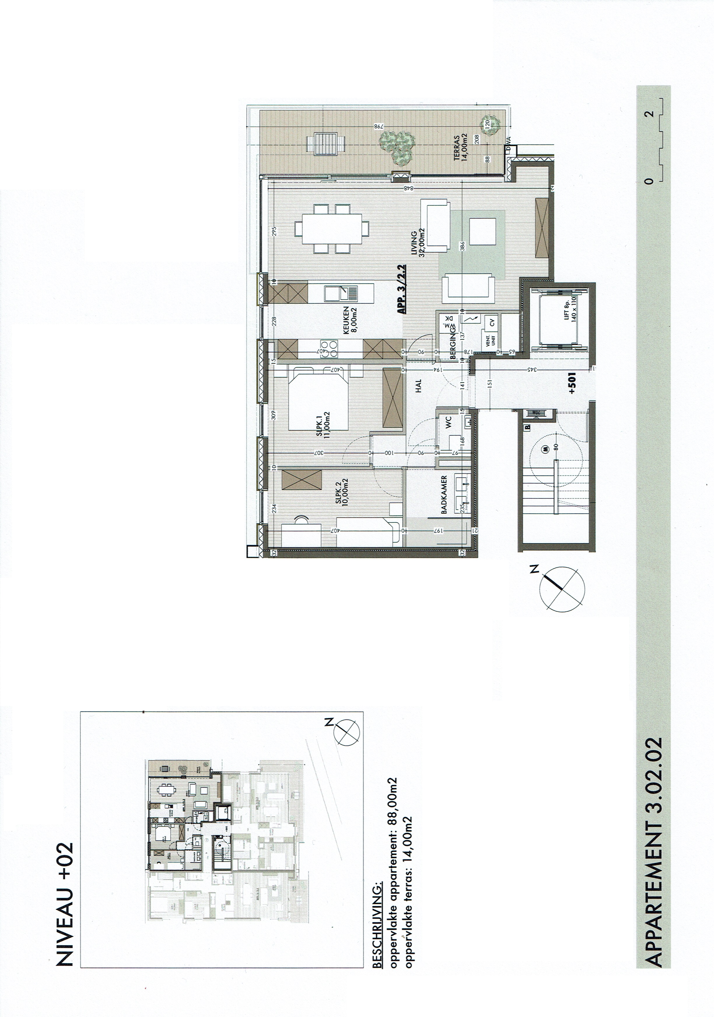 Je betreedt het appartement in de inkomhal waar je meteen ook de handige berging vindt. Hier is plaats voor wasmachine en droogkast. De grote raampartij in de leefruimte geeft je een fantastische lichtinval. Van hieruit stap je zo op het oostgerichte terras en geniet je van de ochtendzon, de groene bomen of de voorbijvarende boten. De open keuken werd voorzien van alle toestellen (vaatwasser, combi-oven, inductiekookplaat en koelkast). Het slaapgedeelte telt 2 slaapkamers en een badkamer met douche, wastafel en handdoekwarmer.