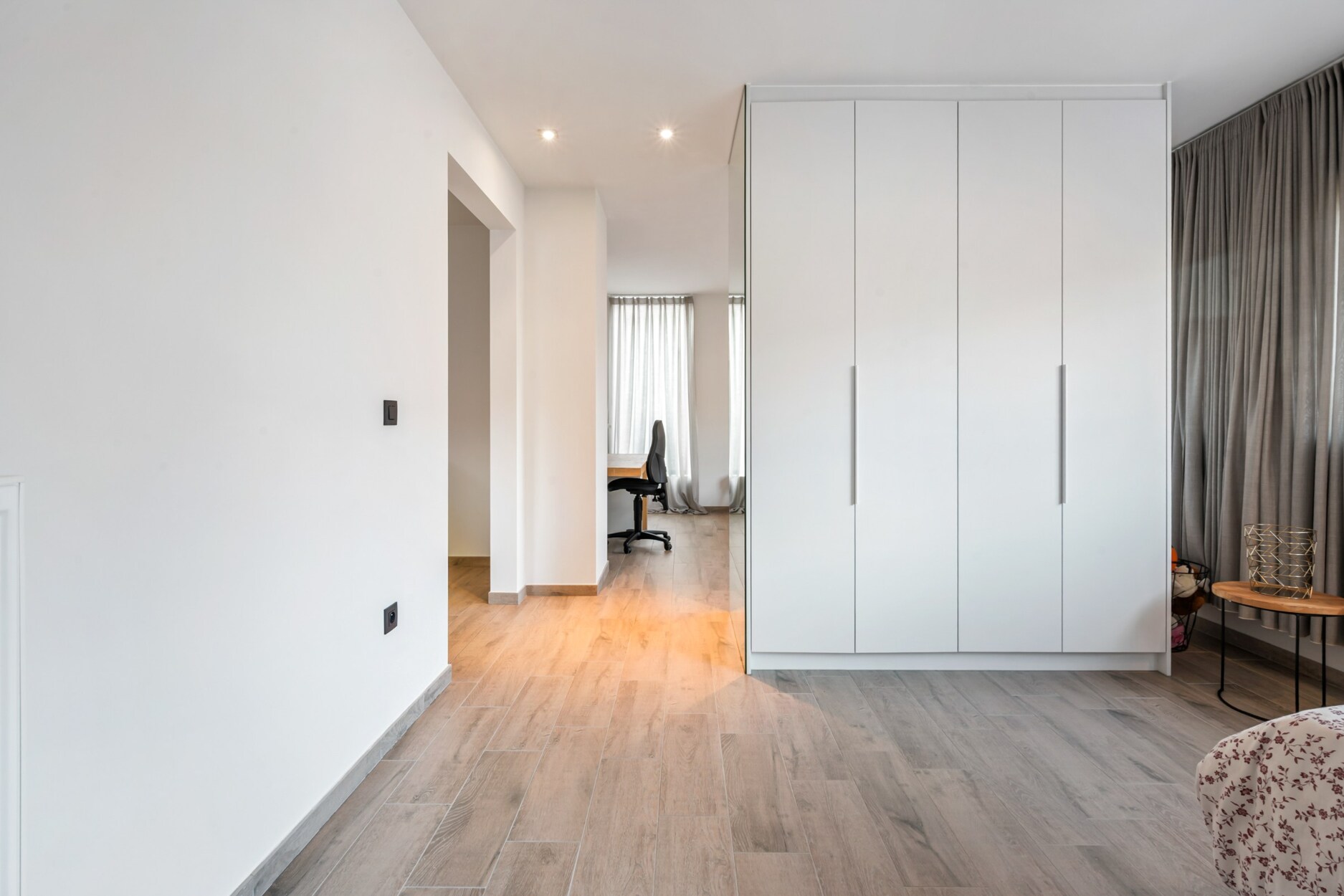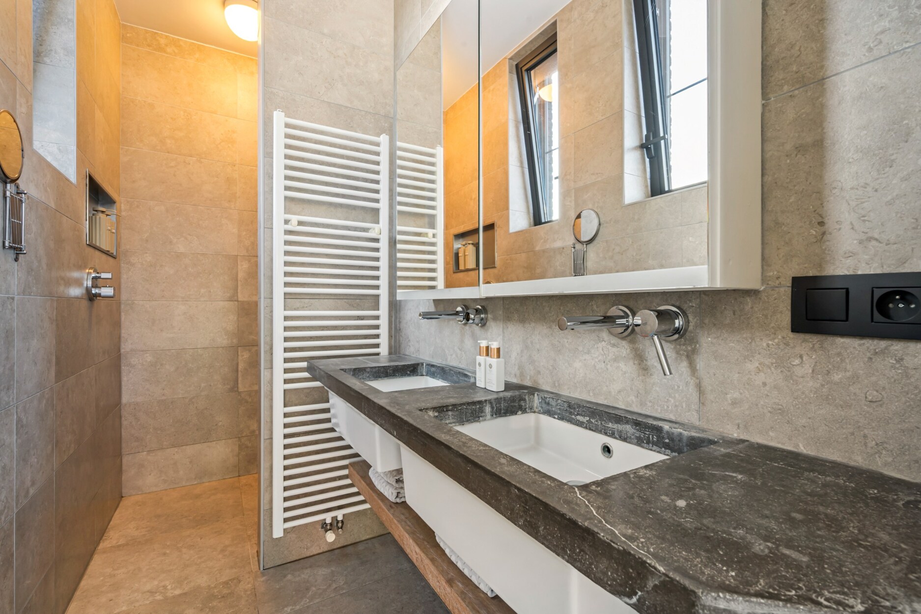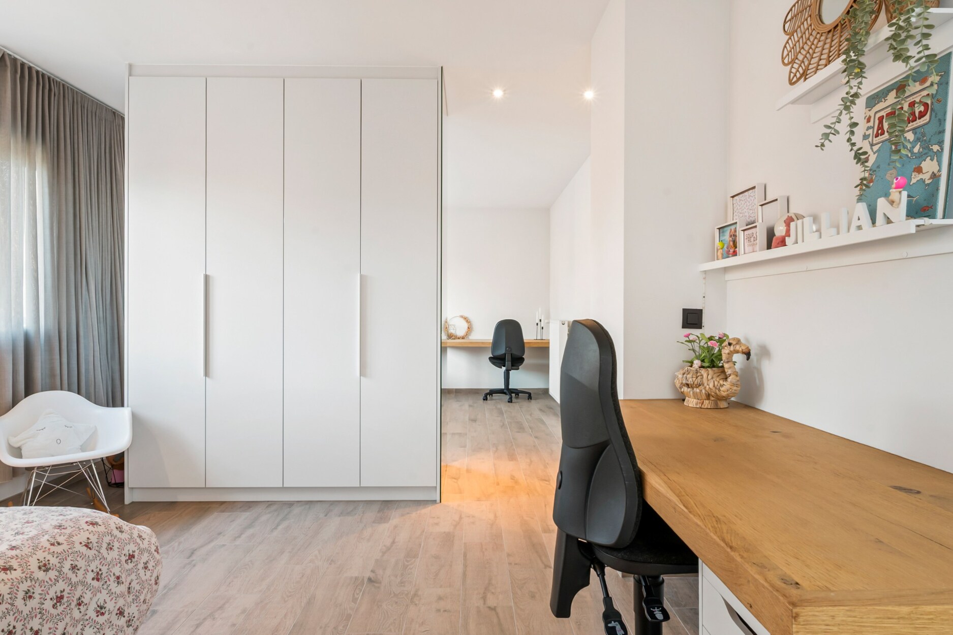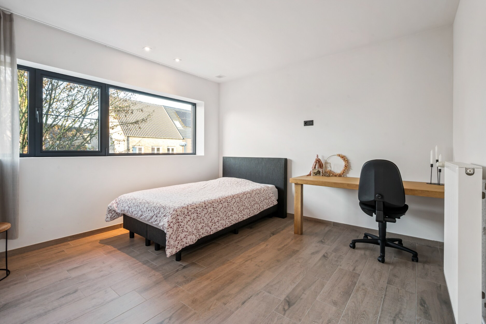 Op de eerste verdieping zijn er 4 slaapkamers voorzien waarbij 2 kinderkamers worden afgescheiden door een ingemaakte kastenwand waardoor het ook mogelijk is deze als 1 grote kamer te gebruiken. Voorts vinden we hier een ruime badkamer terug die is voorzien van ligbad en dubbel lavabomeubel.