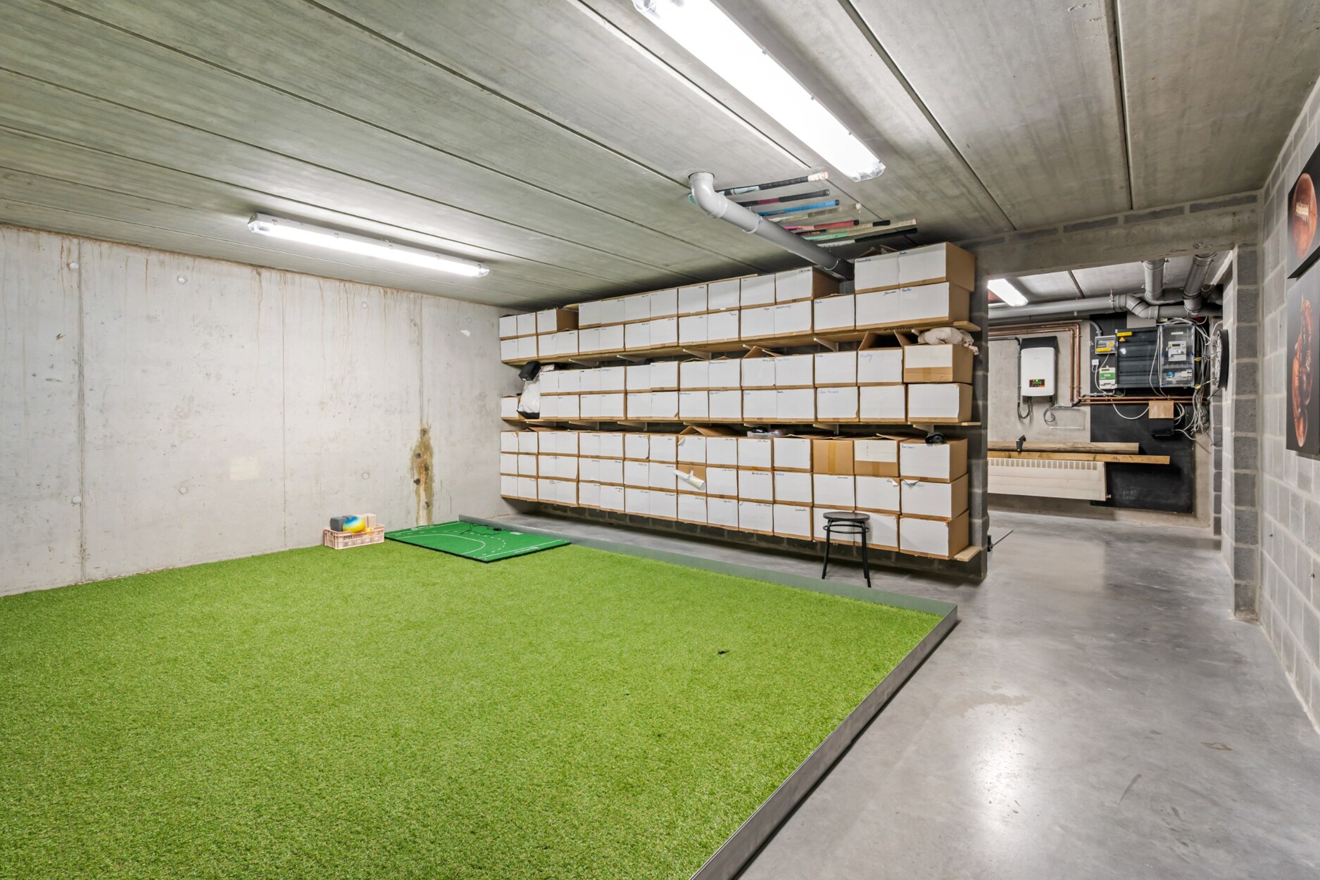 Via de inpandige garage heeft u toegang tot de goed afgewerkte kelder die zich onder de volledige woning bevindt. Hier is het mogelijk fietsen te plaatsen, hobby's uit te oefenen of extra bergruimte te hebben.