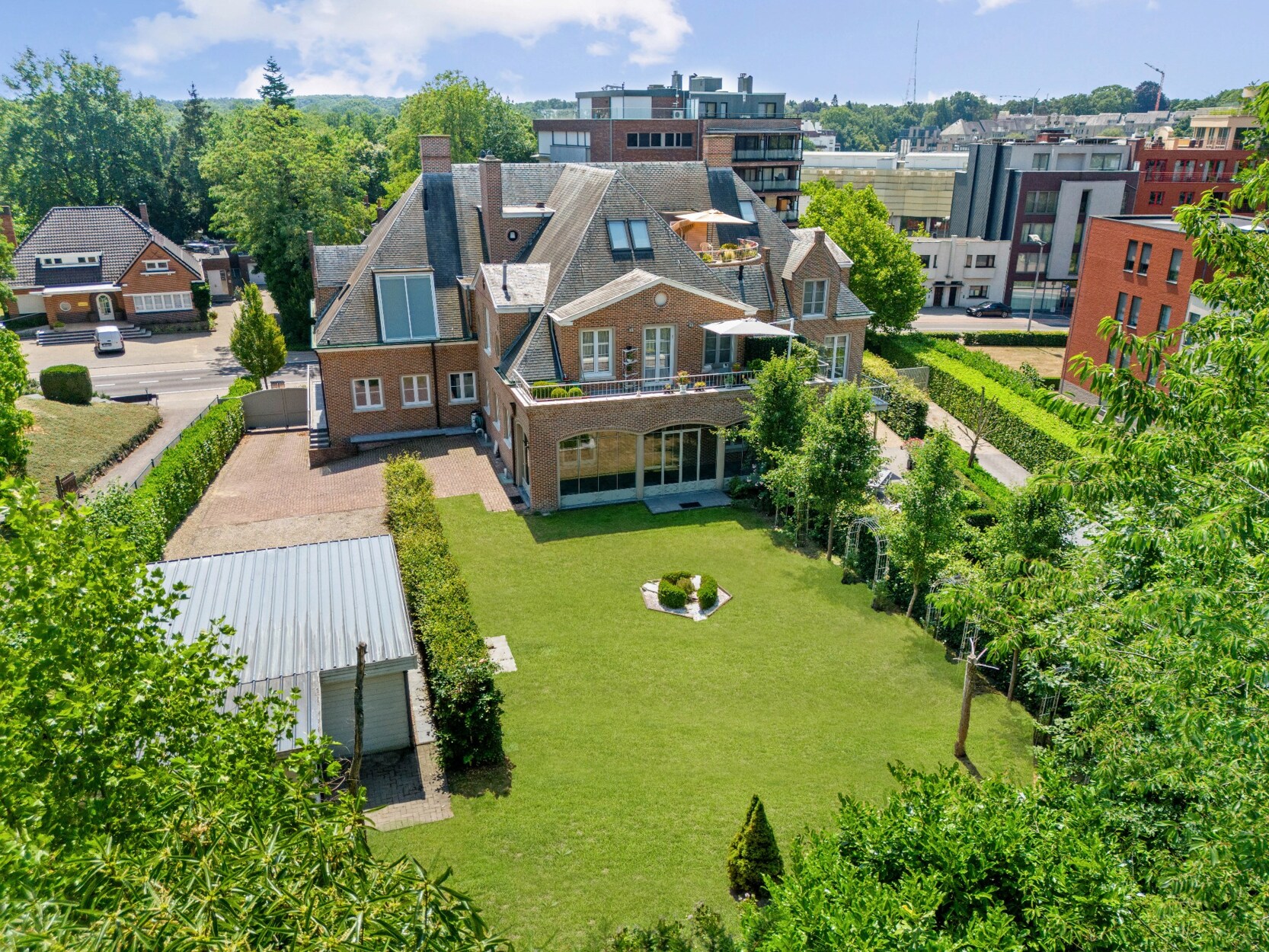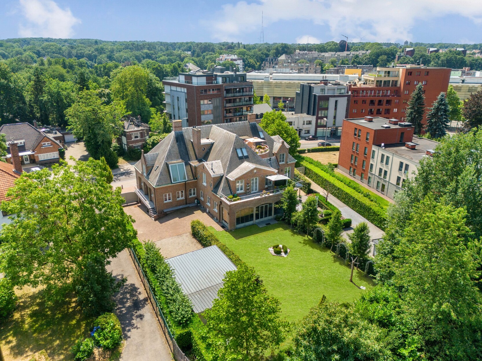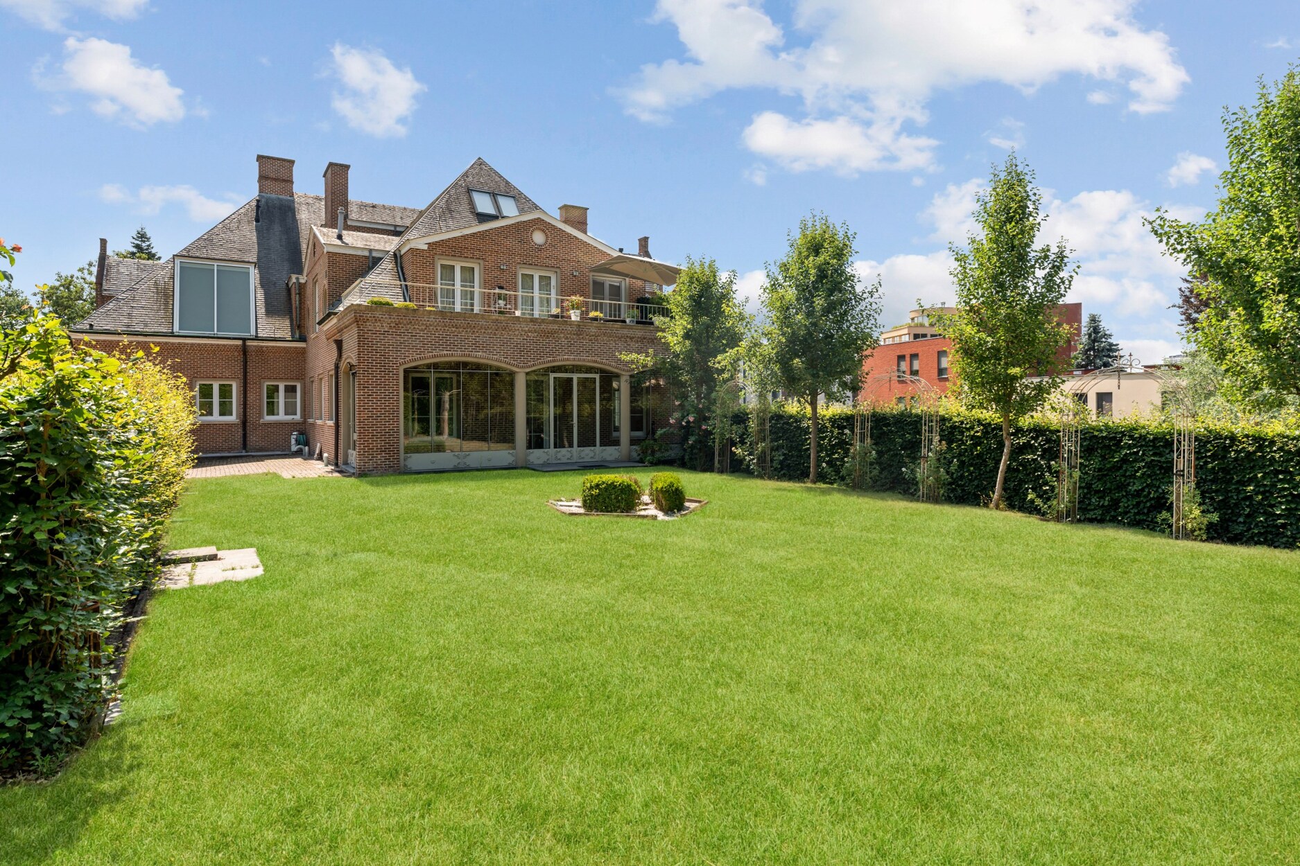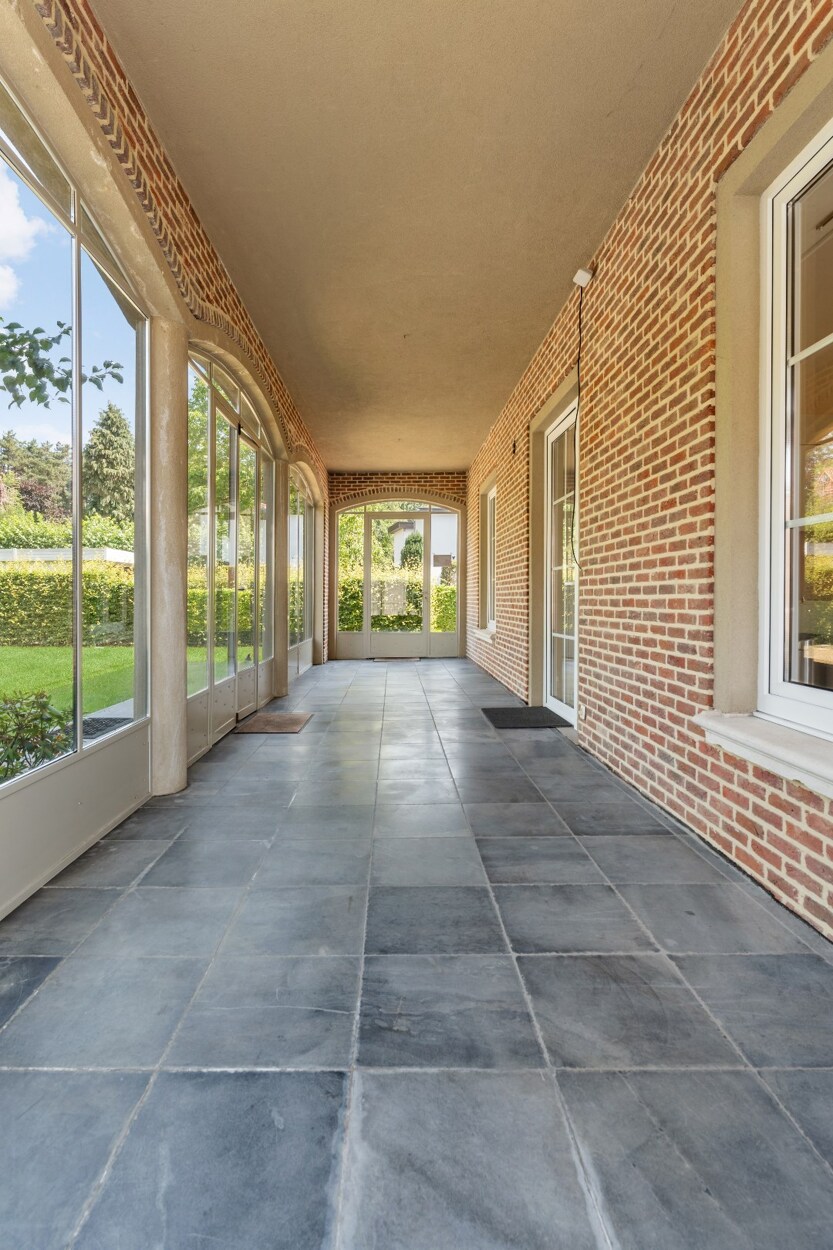 De voormalige doktersvilla werd in 2012 omgevormd tot vier luxe appartementen, waarbij het karakter behouden bleef. Het gelijkvloers appartement beschikt over een privé toegang tot de tuin, en biedt een ideale indeling: een stijlvolle inkomhal, een hedendaagse strak landelijke leefkeuken, en een wintertuin die het hele jaar door van licht geniet. De ruime en lichtrijke woonkamer met zithoek en eetkamer ademt sfeer uit dankzij de indrukwekkende hoge plafonds.