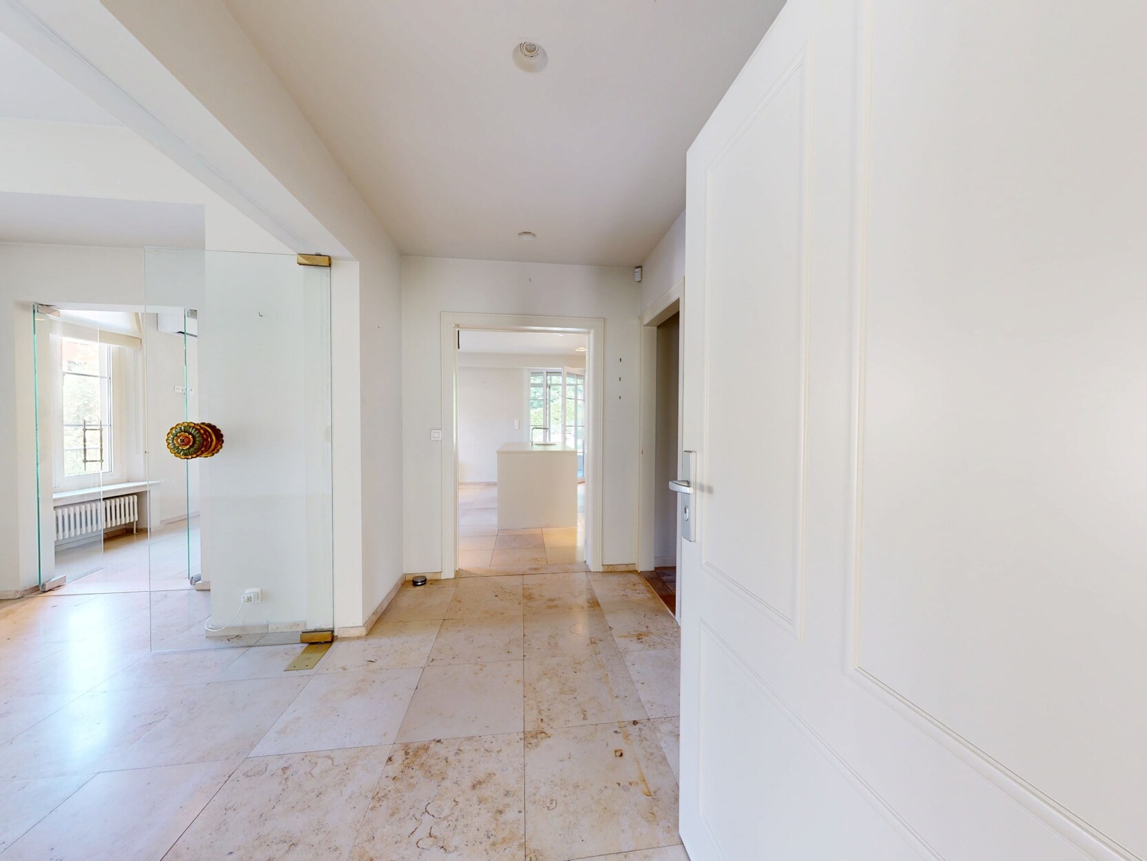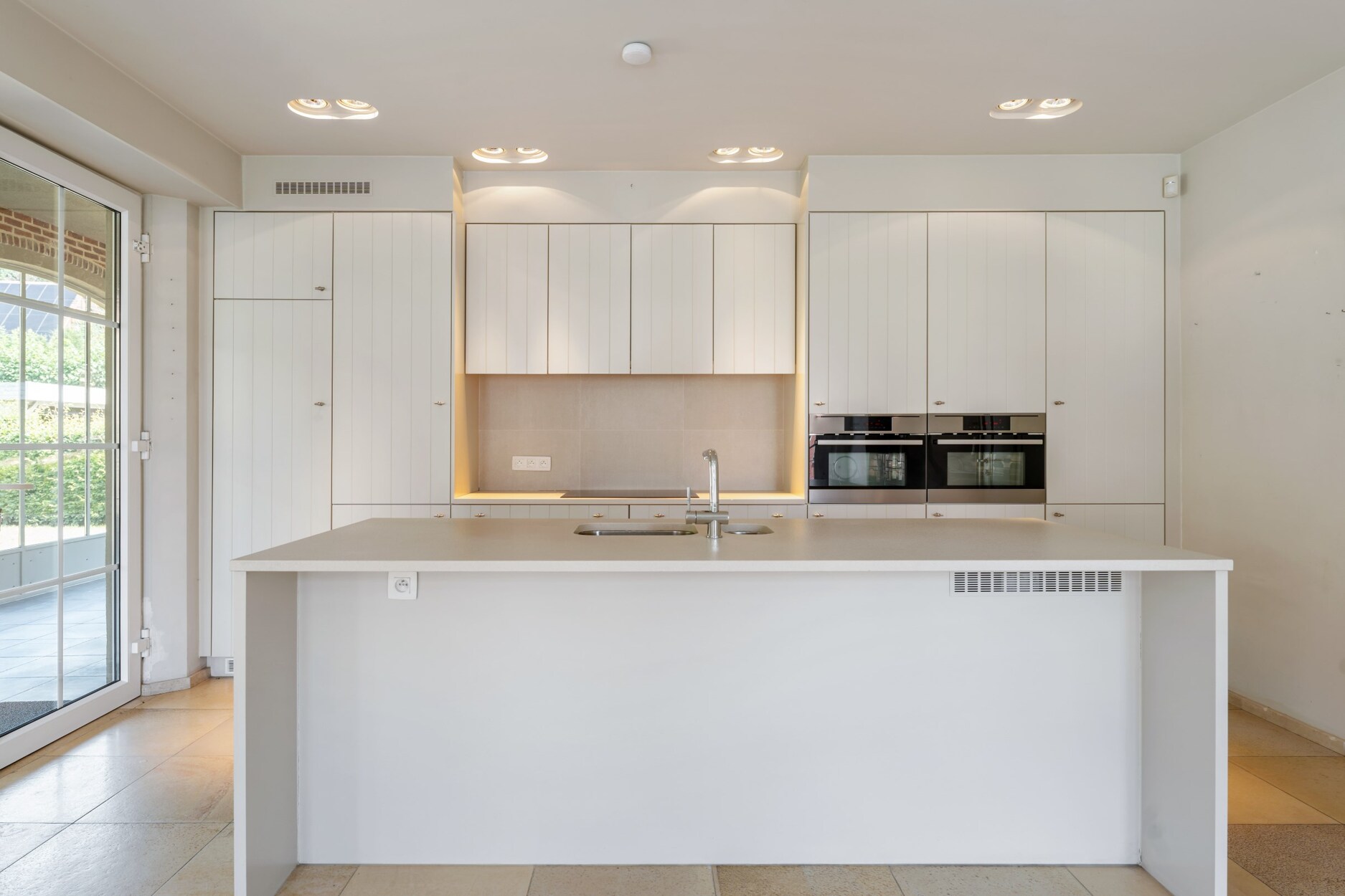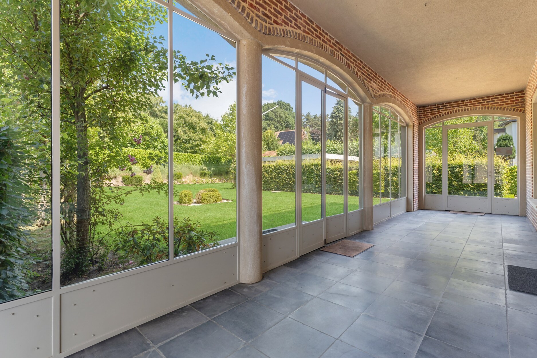 De voormalige doktersvilla werd in 2012 omgevormd tot vier luxe appartementen, waarbij het karakter behouden bleef. Het gelijkvloers appartement beschikt over een privé toegang tot de tuin, en biedt een ideale indeling: een stijlvolle inkomhal, een hedendaagse strak landelijke leefkeuken, en een wintertuin die het hele jaar door van licht geniet. De ruime en lichtrijke woonkamer met zithoek en eetkamer ademt sfeer uit dankzij de indrukwekkende hoge plafonds.