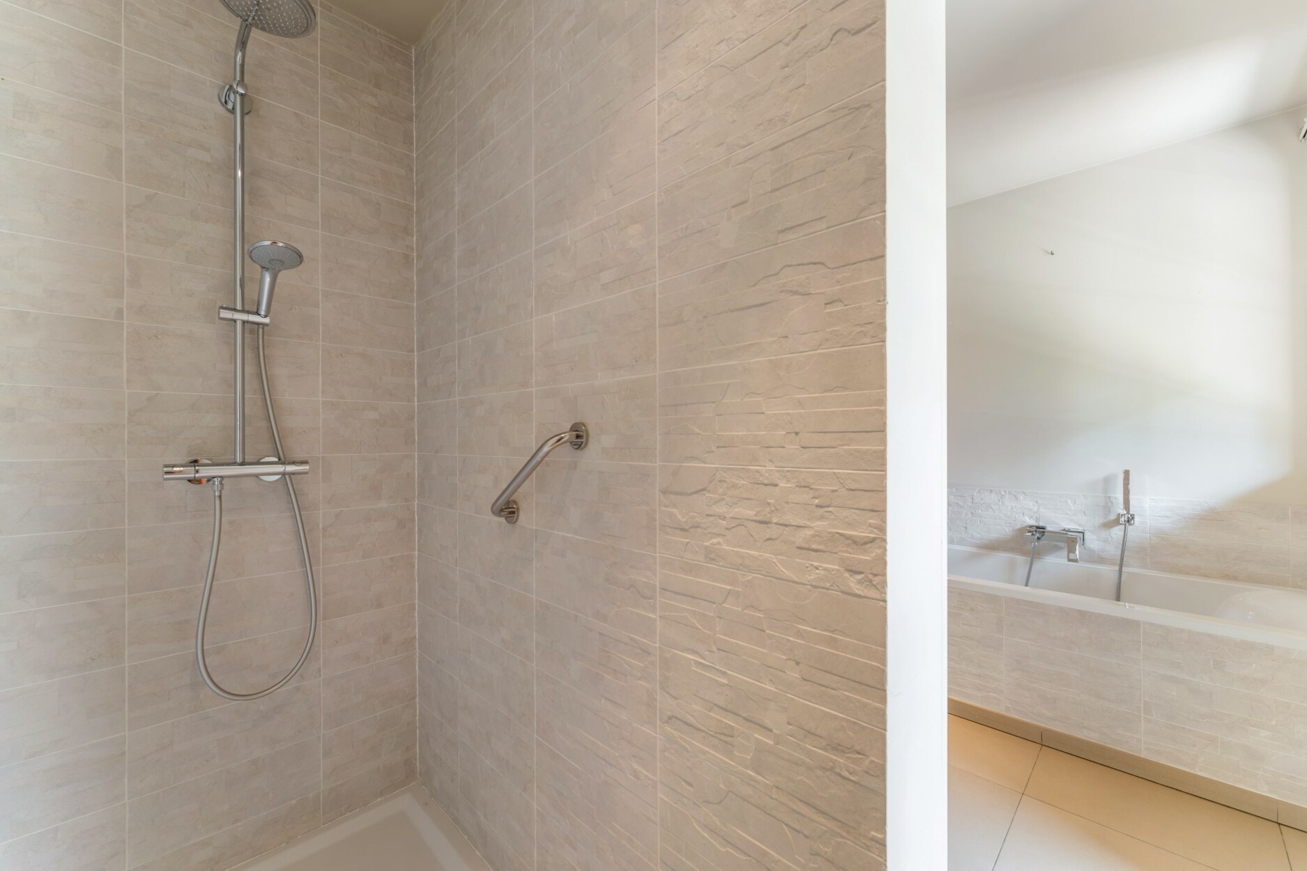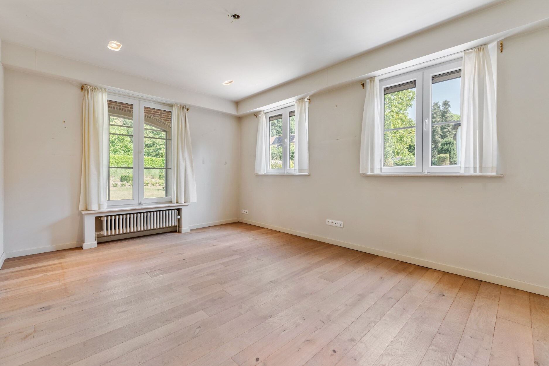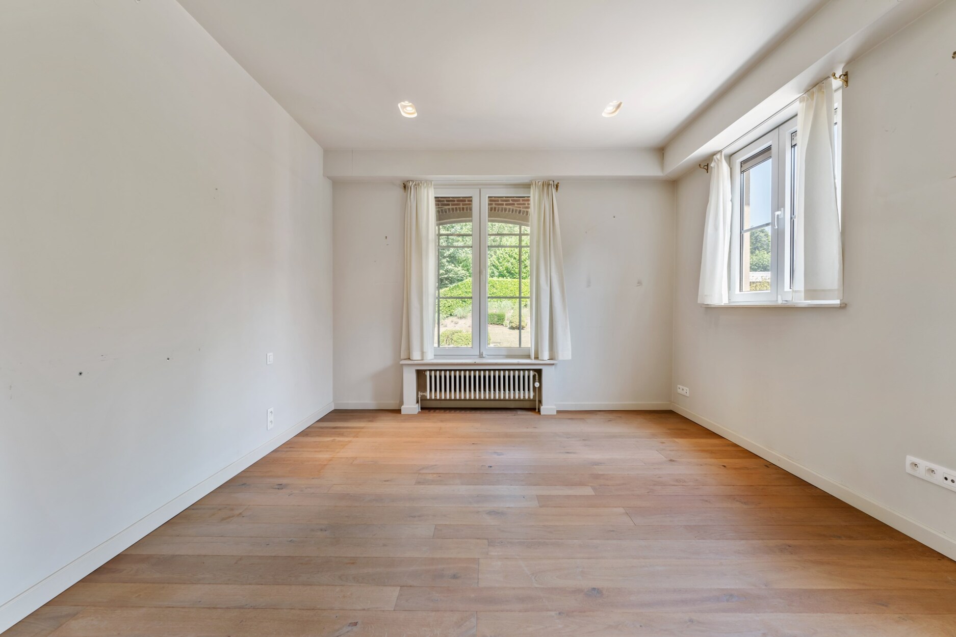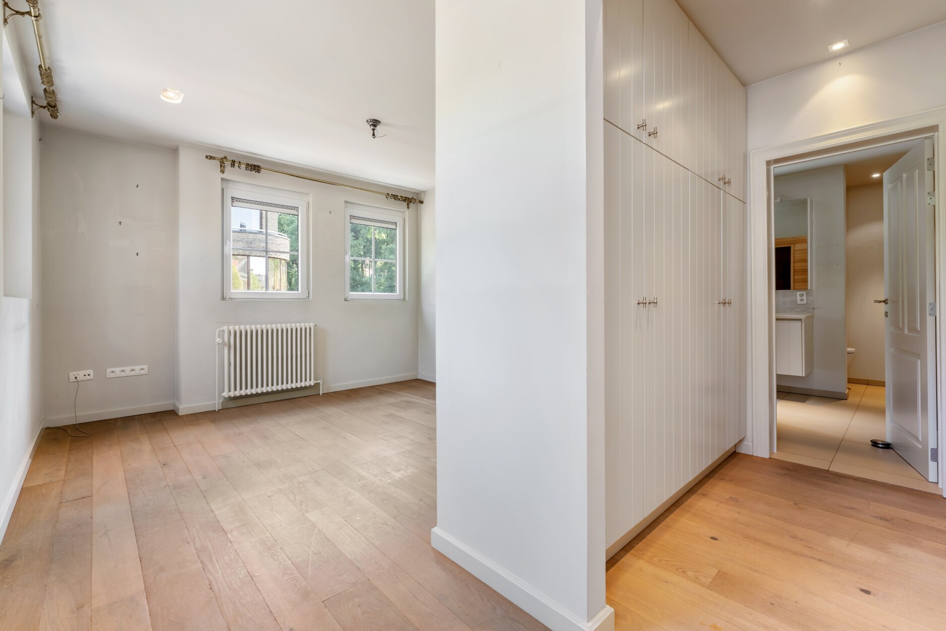 De nachthal leidt naar drie ruime slaapkamers met eiken planken vloeren, waarvan twee beschikken over een eigen badkamer voor optimaal comfort. De master bedroom heeft een compleet op maat gemaakte dressing. Daarnaast zijn er een praktische wasplaats en een afzonderlijke berging aanwezig.
