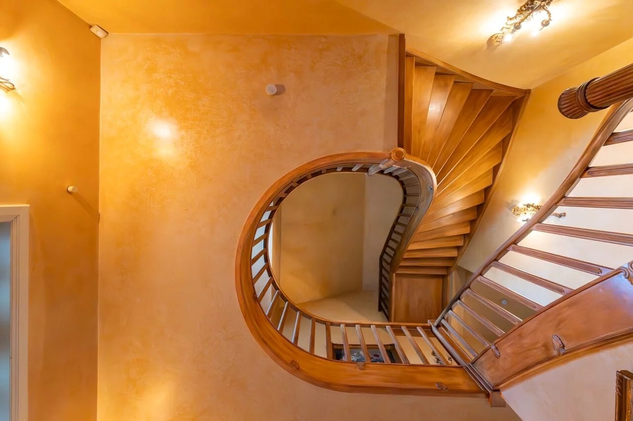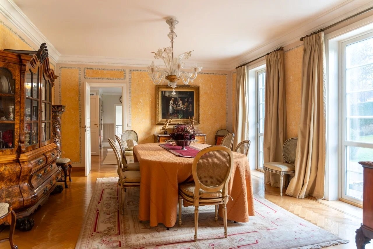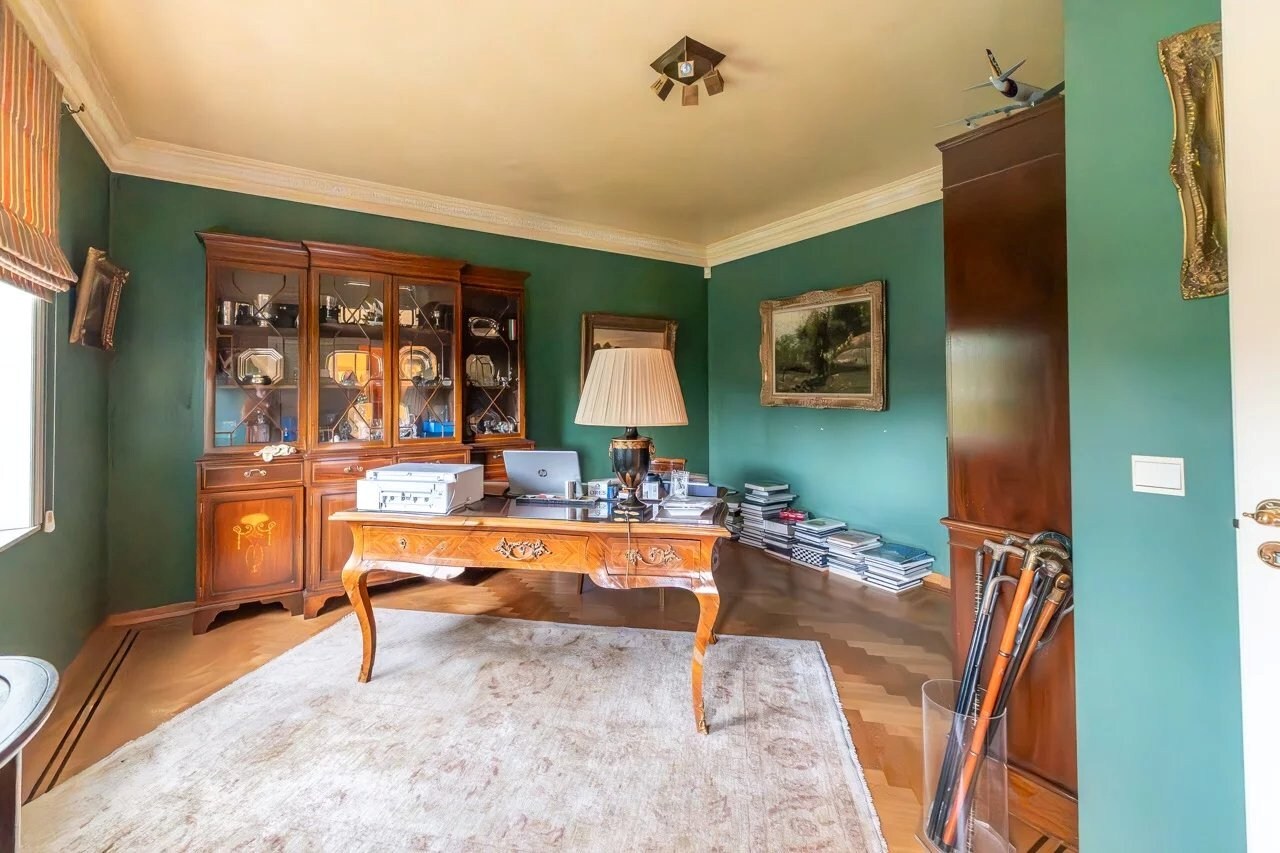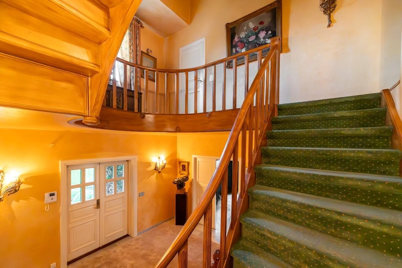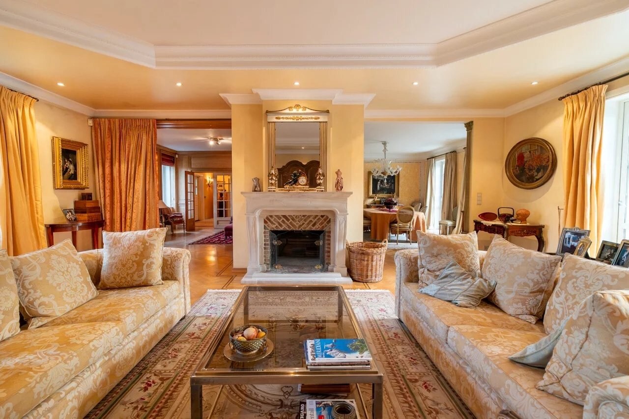 Op de begane grond leidt een ruime inkomhal met vestiaire en gastentoilet naar een gezellige woonkamer, een eetkamer, een volledig uitgeruste keuken met ontbijthoek, een achterkeuken/wasruimte, een kantoor, een bibliotheek en een eerste slaapkamer met en-suite badkamer.