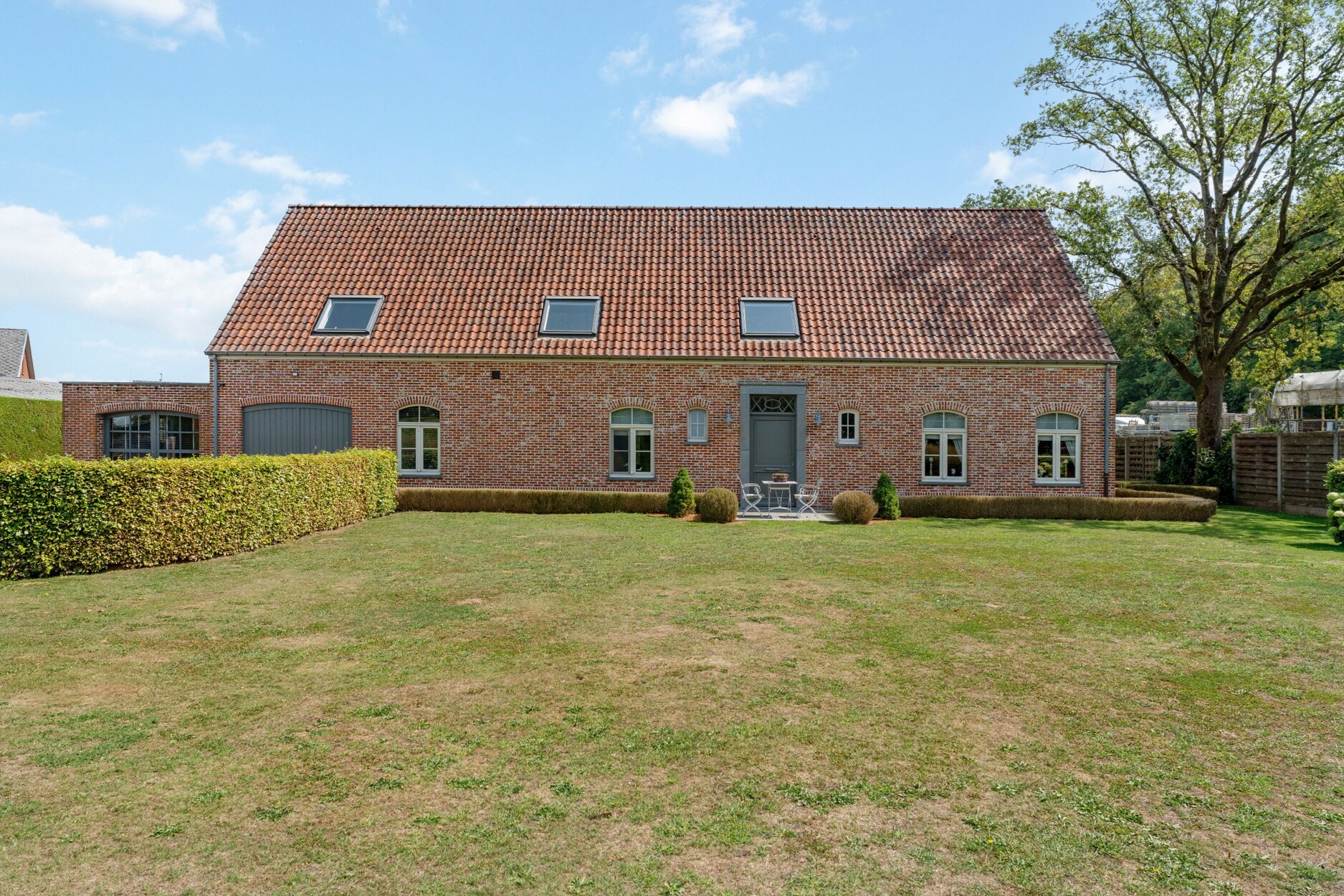 In de tuin is het aangenaam vertoeven door de zuidoost oriëntatie en het weidse uitzicht aan de voorkant van de woning. Voorts bevindt er zich een tuinhuis met overdekt terras en een bijgebouw van +/- 80m² dat dienst kan doen als werkruimte (bespreekbaar om dit al dan niet aan te kopen).