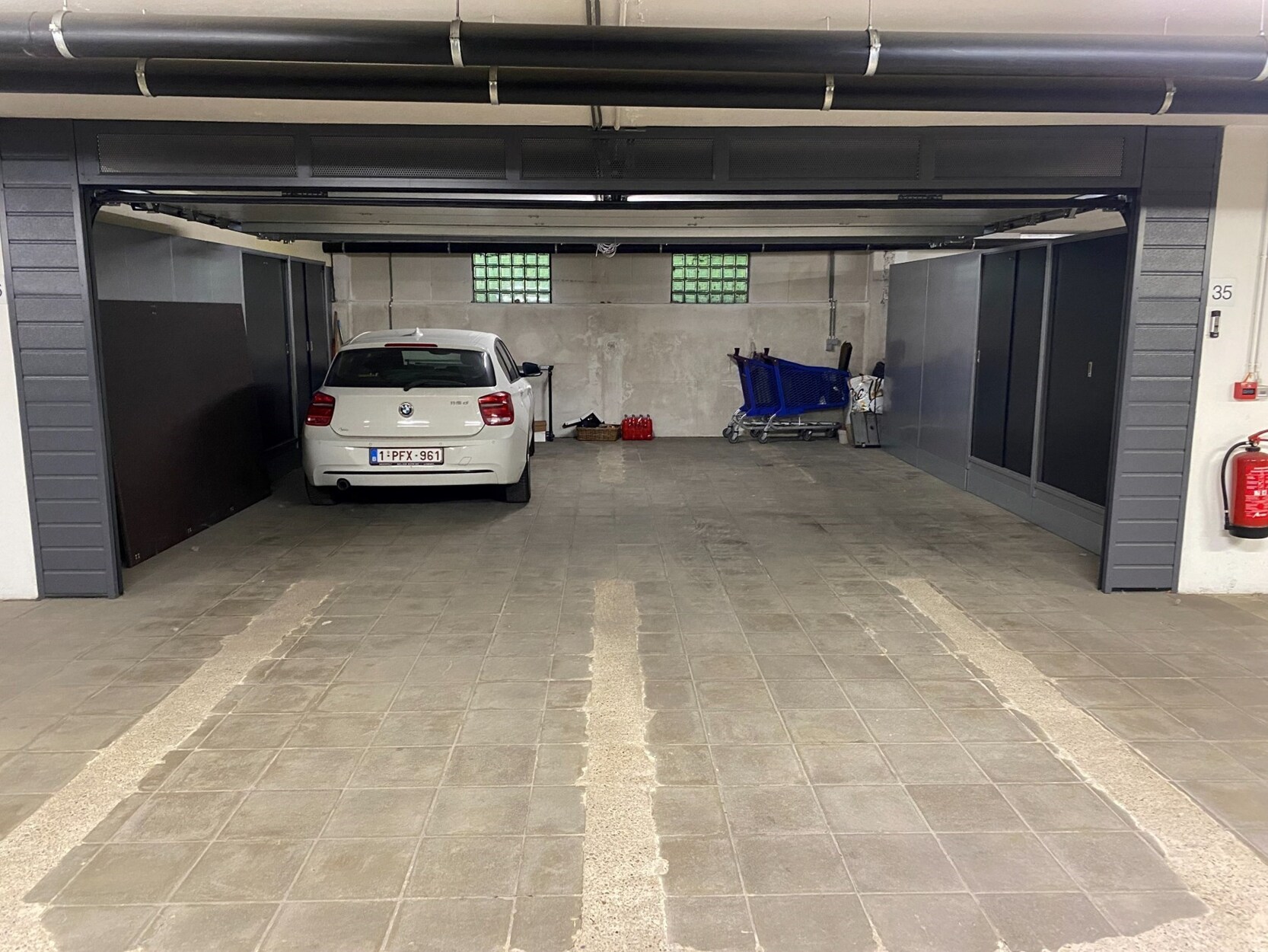 Dubbele afgesloten garage in de kelder met extra bergkasten. Deze is niet inclusief deze prijs inbegrepen.