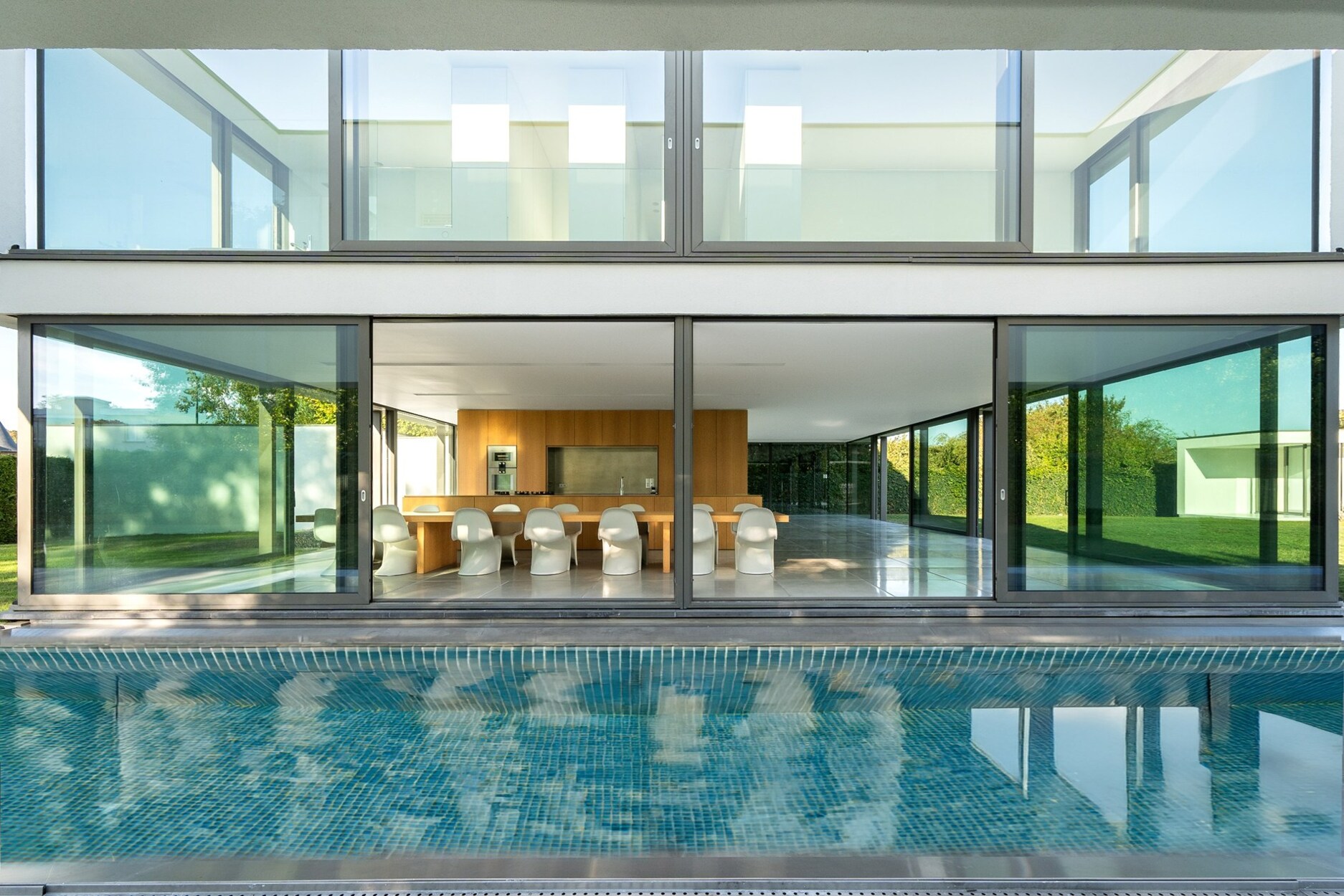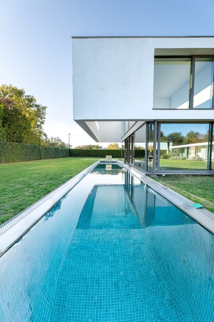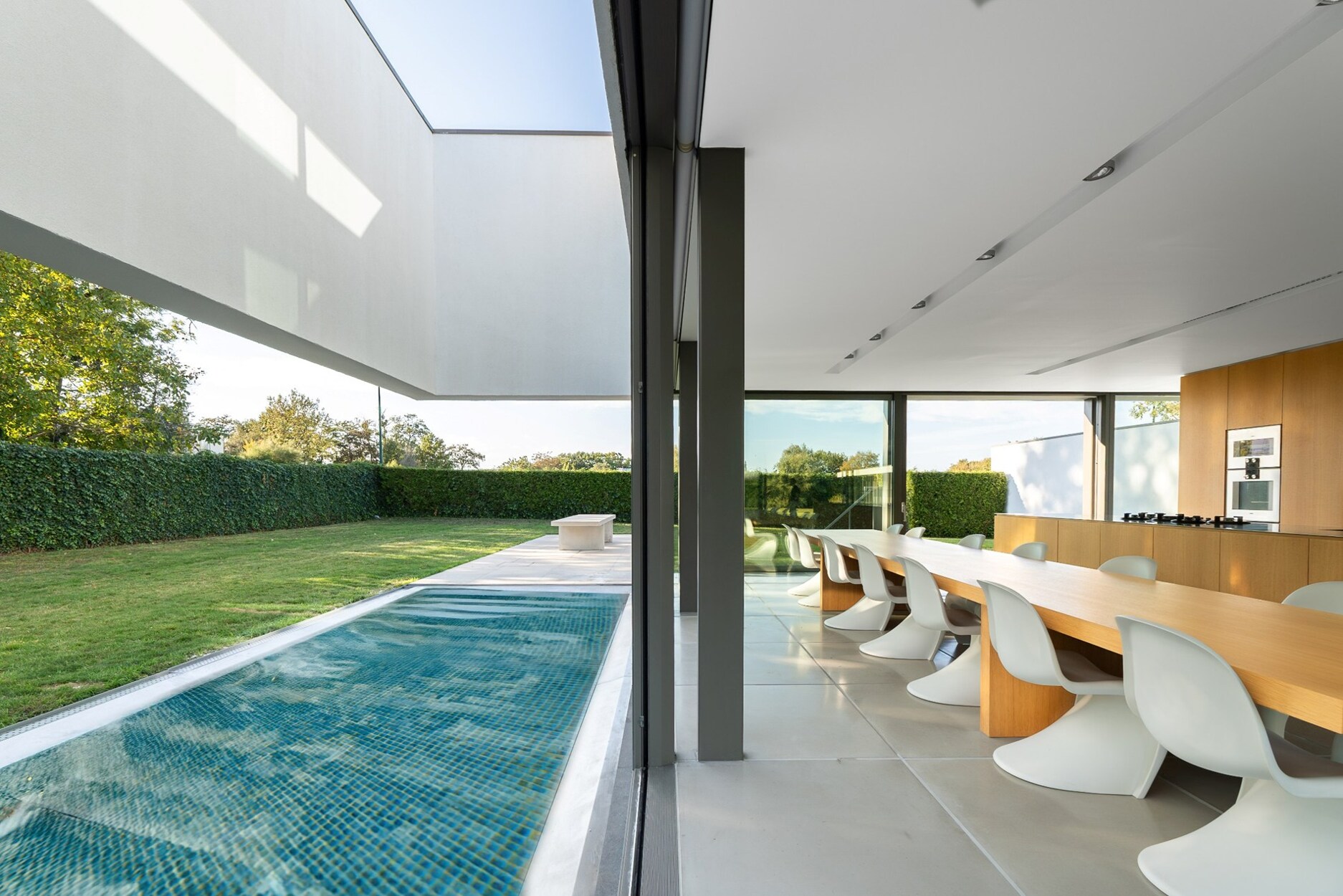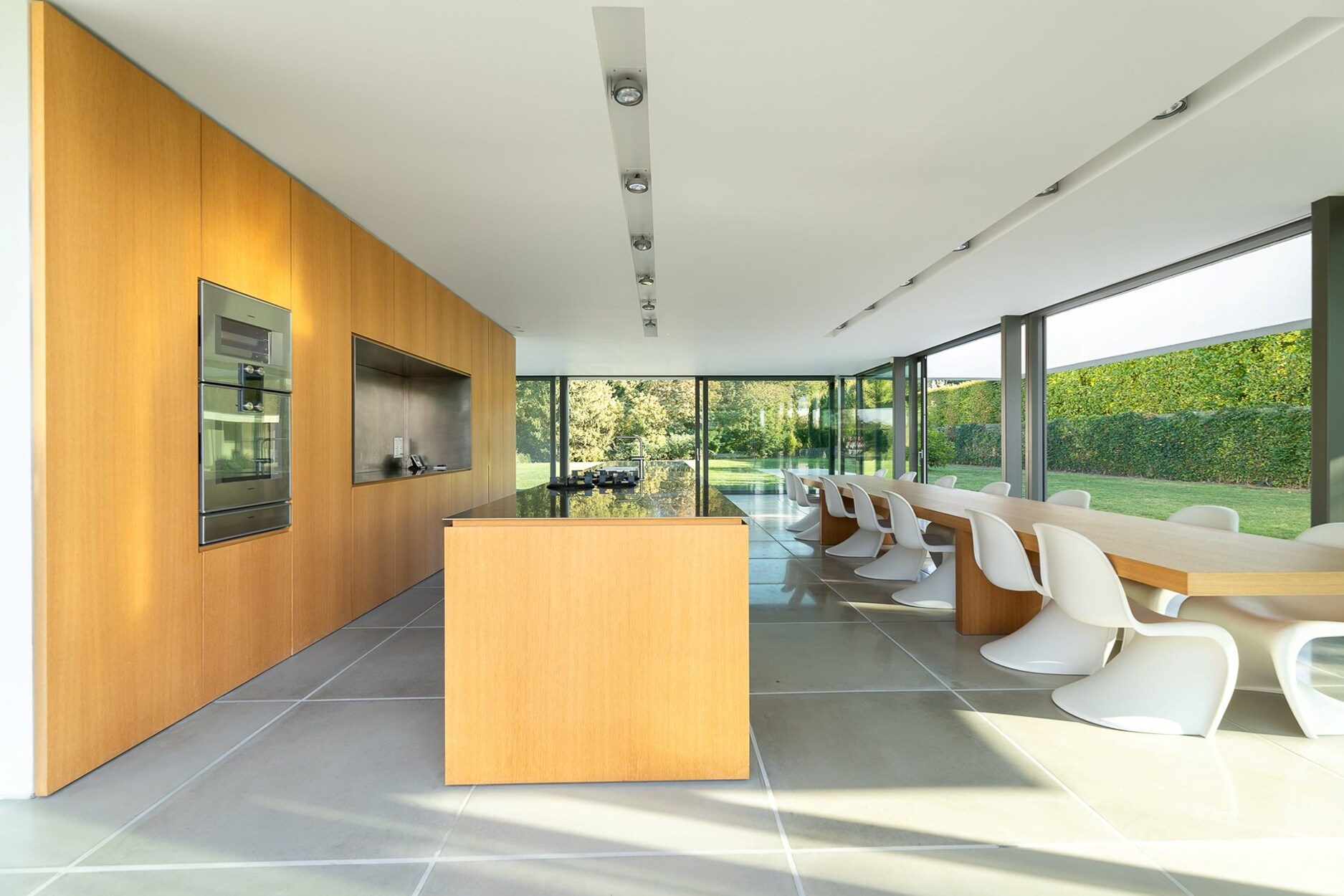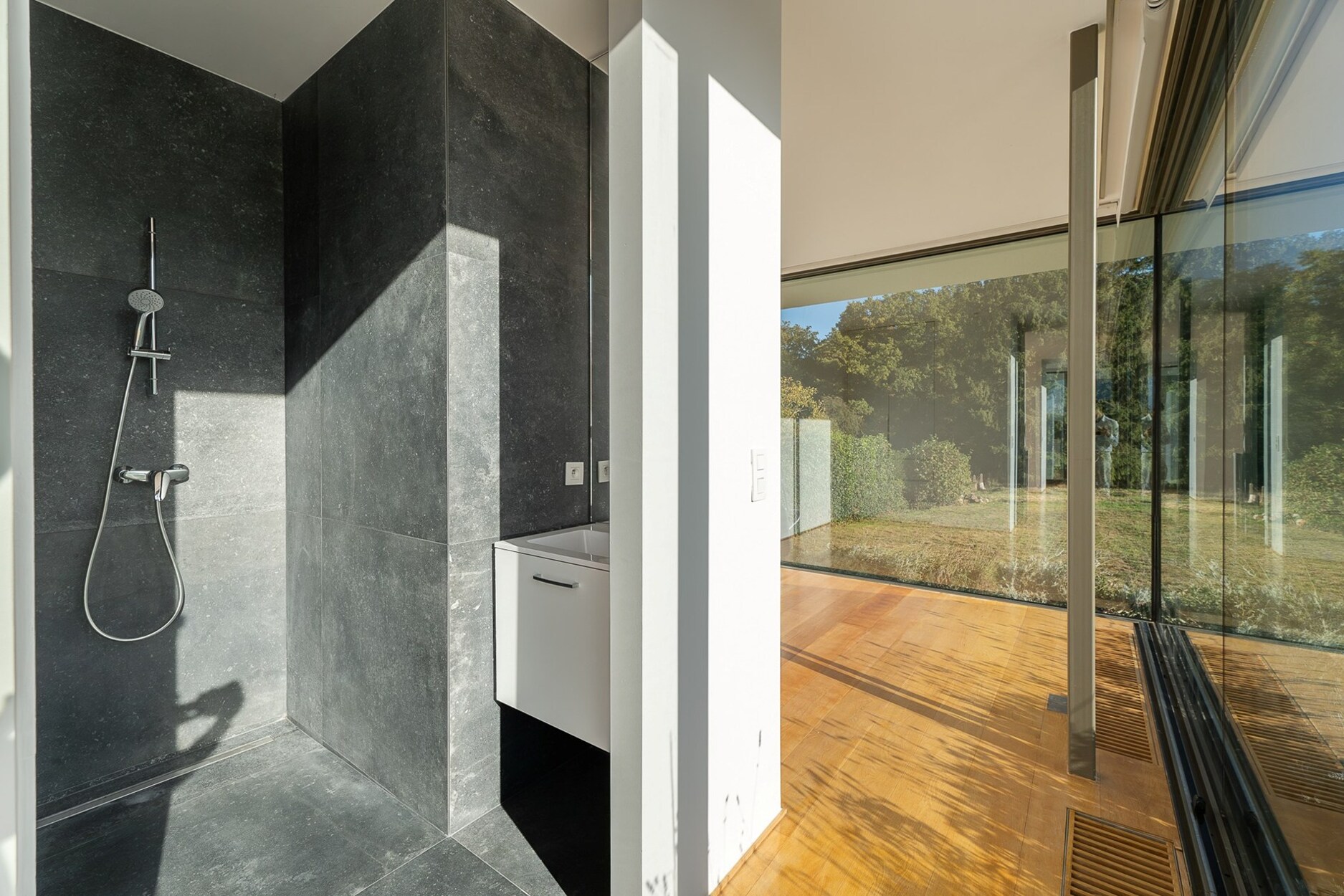 Linkebeek, gelegen in een bosrijke omgeving zonder inkijk, is deze eigentijdse villa ontworpen door architect Erpicum (2005) gelegen op een perceel van 5.165 m². Verdeeld over drie niveaus van elk 600 m², biedt de villa 6 slaapkamers, 2 kantoren, een poolhouse met slaapkamer, een roestvrijstalen zwembad en een carport.