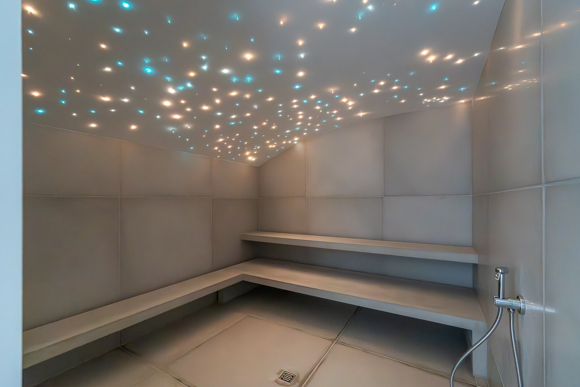 Op de bovenverdieping heeft de ouderlijke suite een kleedkamer en een badkamer. Vijf andere slaapkamers, elk met een eigen badkamer, een groot kantoor en een wasruimte completeren deze verdieping. De begane grond biedt een dubbelhoge entreehal, een lichte woonkamer, een eetkamer, een ingerichte keuken met bijkeuken, en een kantoor of slaapkamer met aangrenzende badkamer. Het lagere niveau is gewijd aan ontspanning, met een jacuzzi, een stoombad, een thuisbioscoop, een fitnessruimte, een ketelhuis met dubbele ketel en een dubbele stroomventilatie.