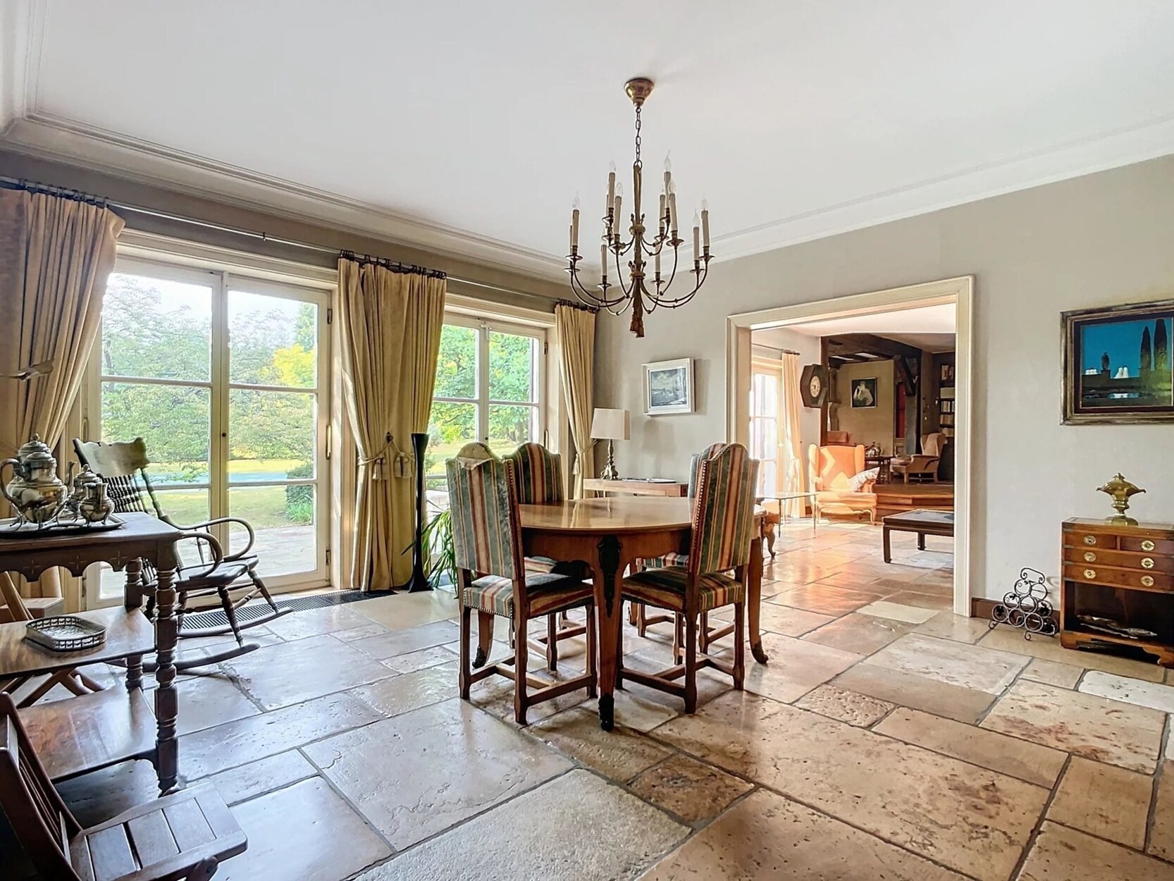 Perfect ontworpen voor een gezinsleven, biedt het op de begane grond: een inkomhal, twee woonkamers, een eetkamer, een ruime keuken, een kantoor (met de mogelijkheid om een badkamer toe te voegen), evenals een berging. De leefruimtes hebben directe toegang tot de tuin en het zwembad.