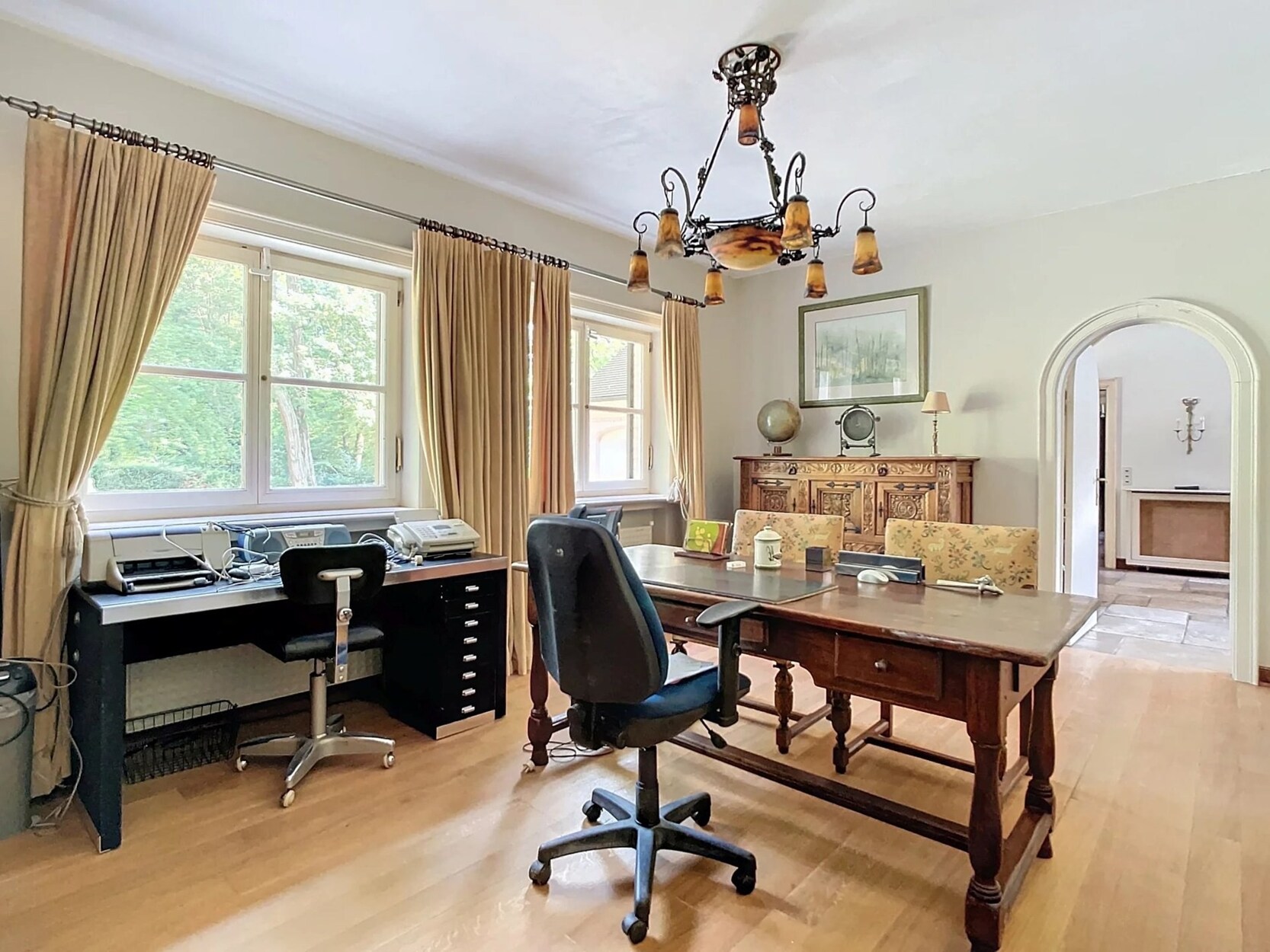 Kelders met extra badkamer, een grote ruimte die voorheen dienst deed als conciërgerie, een in te richten zolder, een garage voor drie auto's en een buitenparkeerplaats voor 4 tot 5 voertuigen.