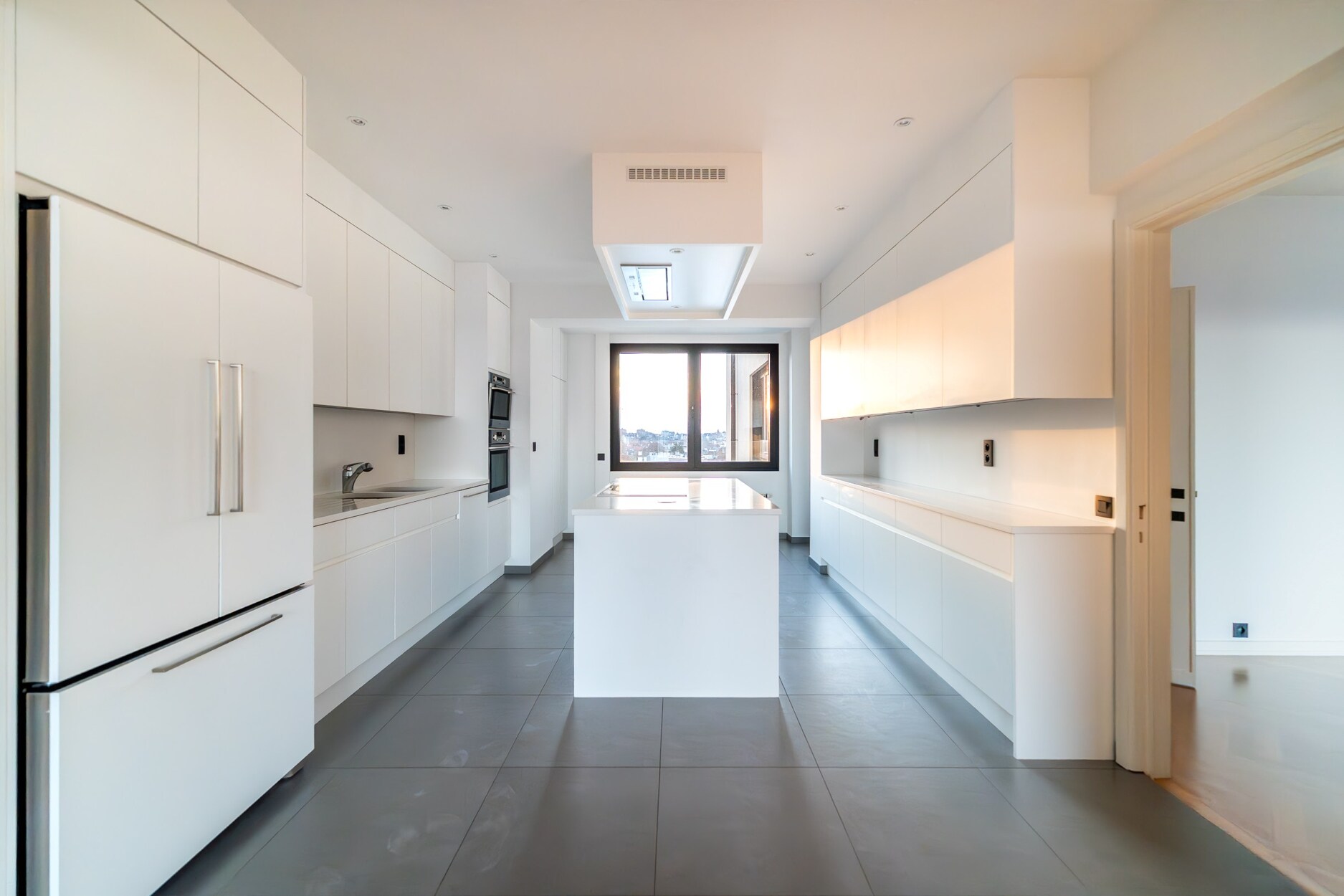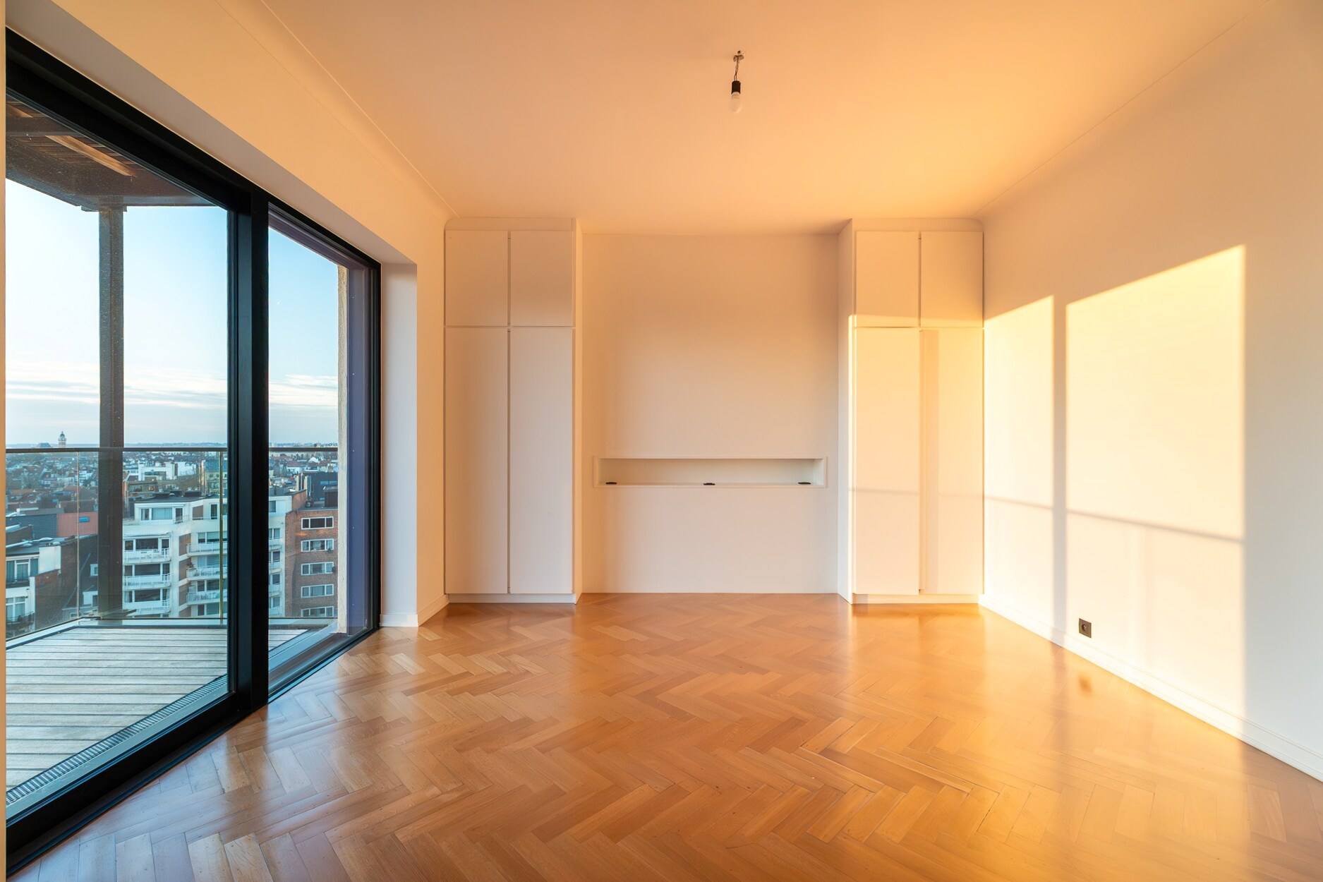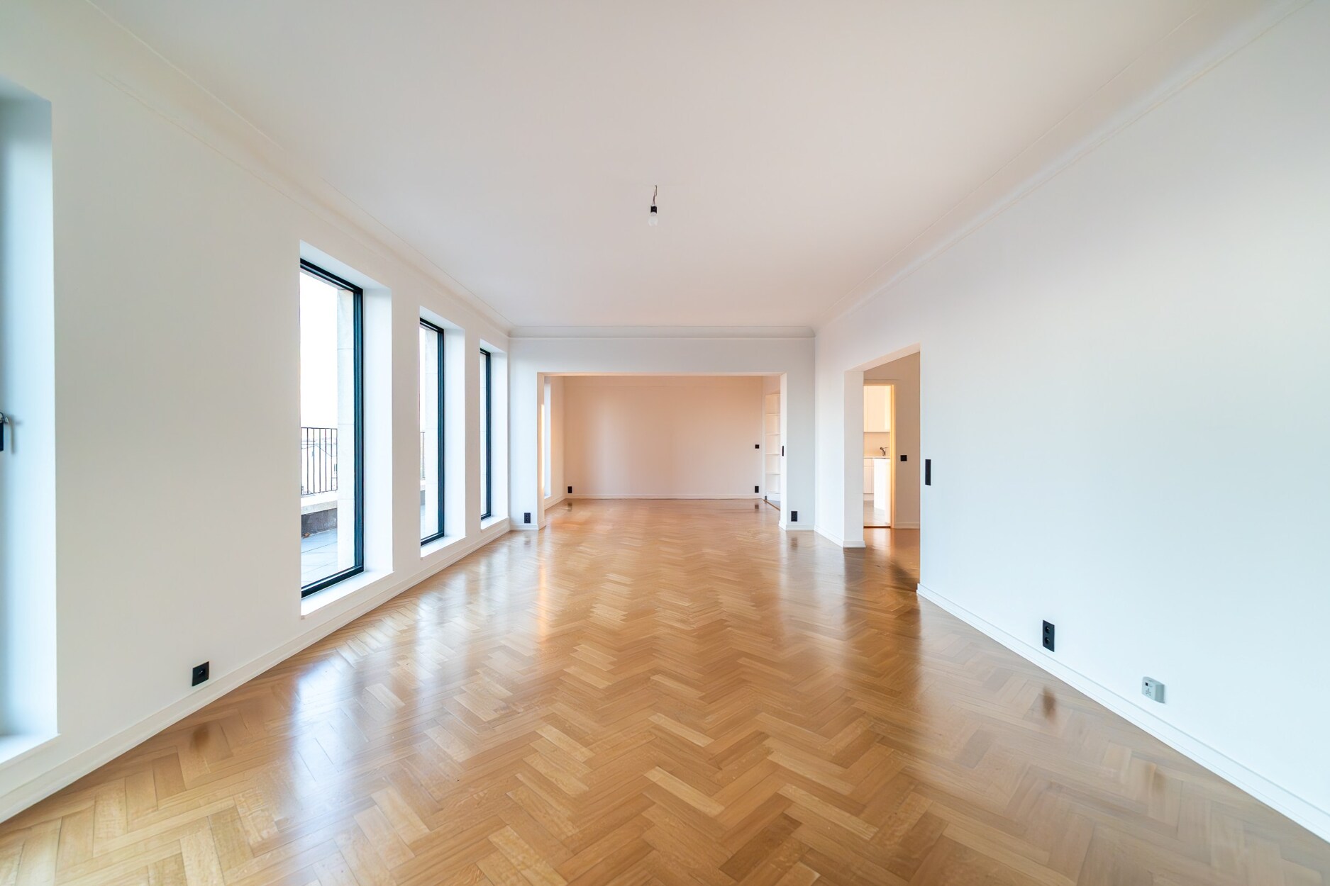 Ideaal gelegen tussen de Koningstuin en de Louizalaan, bevindt dit appartement van ±211 m² zich op de 9ᵉ verdieping van een gebouw uit de jaren 60. Met een indrukwekkende gevelbreedte van 13 meter beschikt het over 3 slaapkamers, 2 badkamers, een terras en een uitzonderlijk panoramisch uitzicht over de stad. Het gebouw telt slechts één appartement per verdieping, wat rust en discretie garandeert.