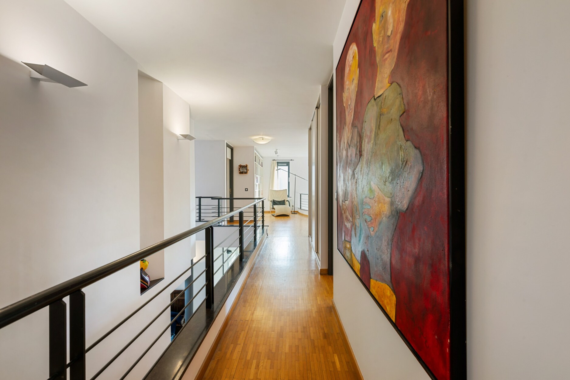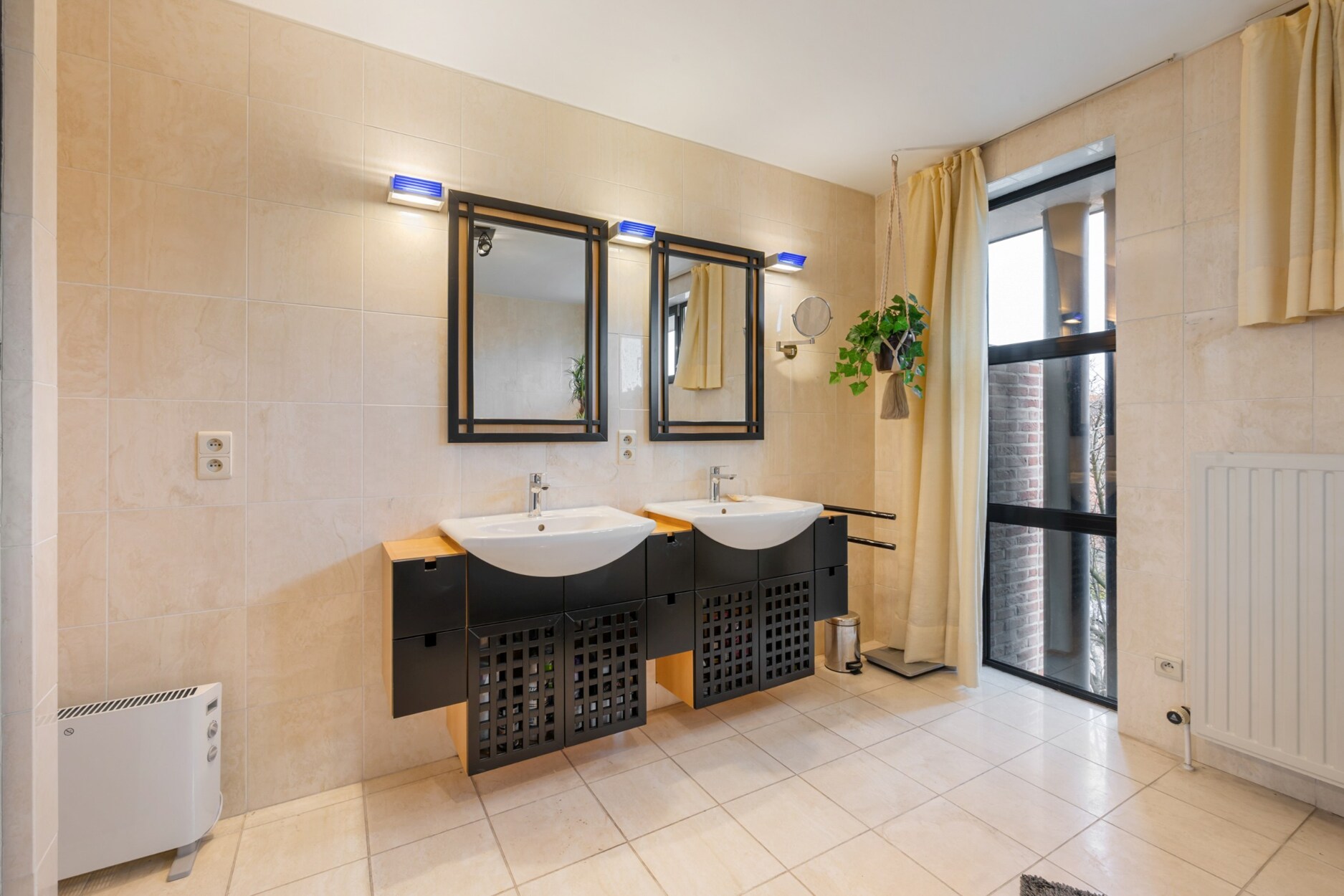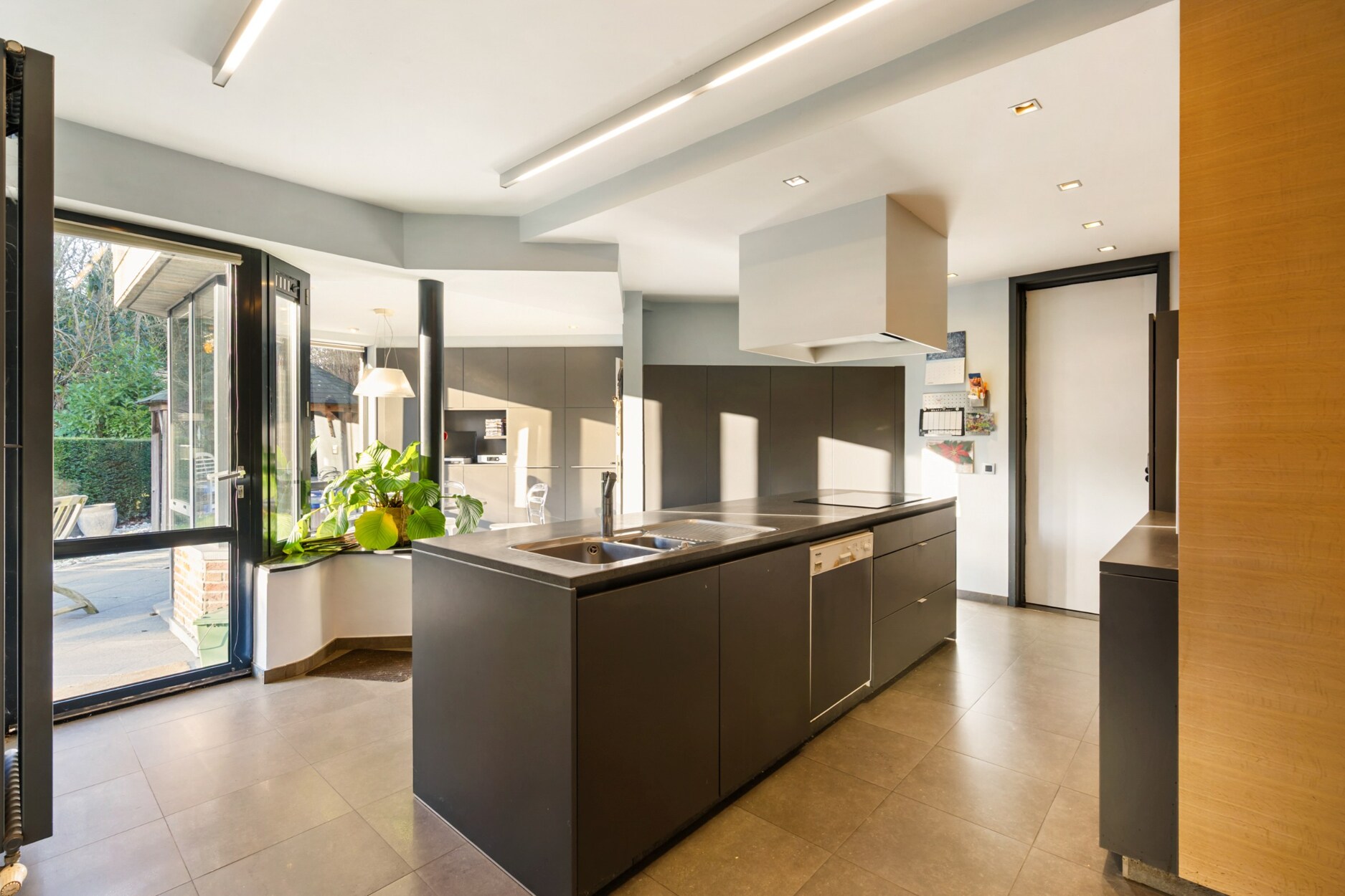 Op een boogscheut van Leuven, in één van de meest gegeerde woonwijken, treffen we deze ruime tijdloze villa aan. In een groene en rustige omgeving kan wonen en werken hier gecombineerd worden. Met 660 m² bruikbare ruimte zijn er heel wat mogelijkheden zowel op familiaal als op professioneel vlak. De hoge en brede gevel verhult een aaneenschakeling van grote lichtrijke plaatsen. Bij het betreden van de woning word je verrast door de hoogte van hal en naadloos aansluitende woonruimte. Luxe en grandeur verwelkomen je als het ware. De open haard benadrukt de gezelligheid die men hier voelt. Zowel de leefruimte, eetkamer, keuken en de ontbijthoek baden in het licht mede daar ze allen aansluiten op de ramen van de achterliggende tuin en terrassen. Van in de zitplaats is er , door de mezzanine, een connectie met de bibliotheek/bureelruimte op de eerste verdieping. Met 4 slaapkamers, waarvan 3 met een wastafel, is ook hier heel wat (privé)ruimte. Aansluitend zijn er nog 2 mooie ruimten. Deze kunnen eventueel als burelen gebruikt worden daar ze via een tweede trap (ook) met de praktijkruimte verbonden zijn.