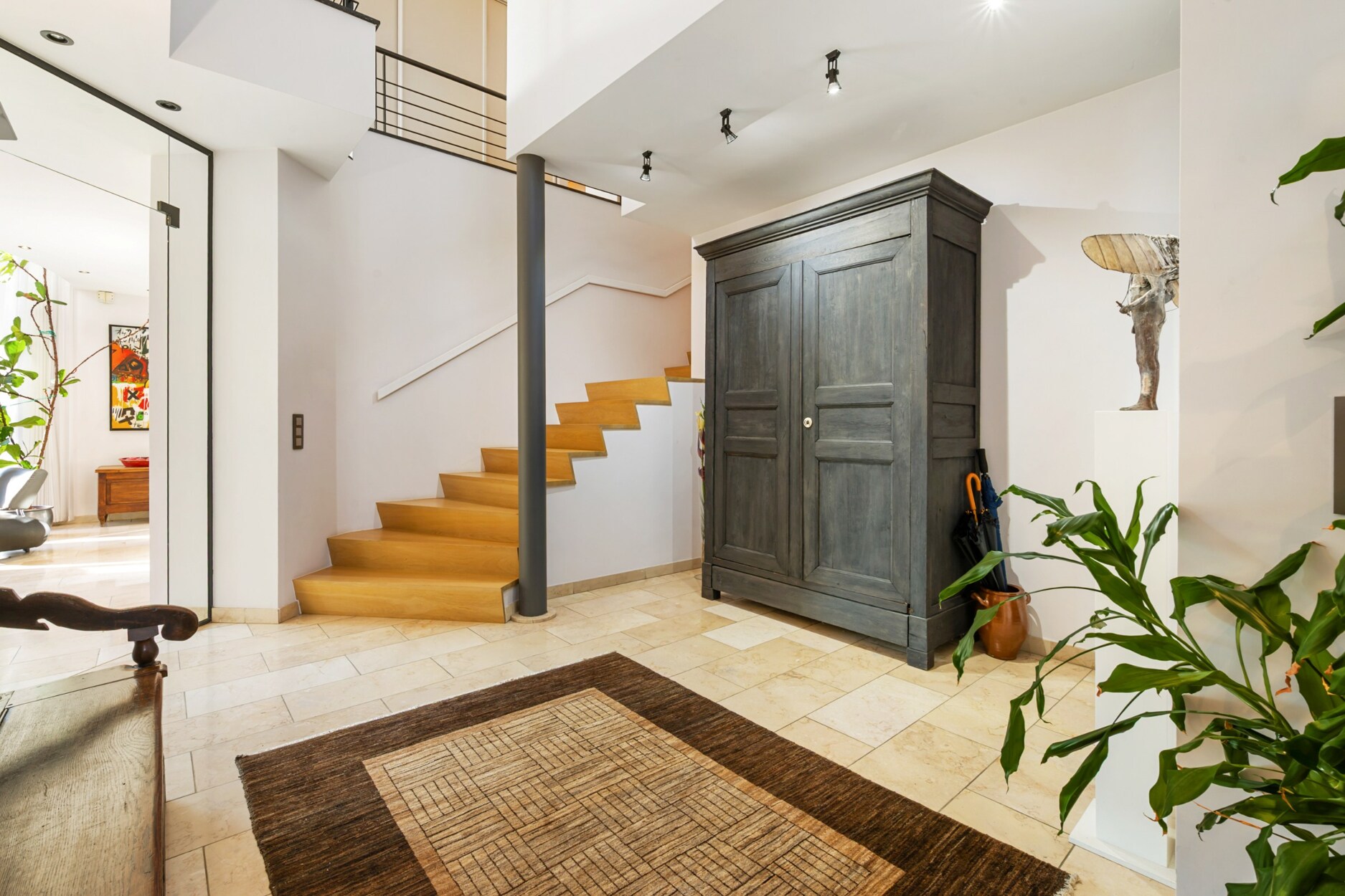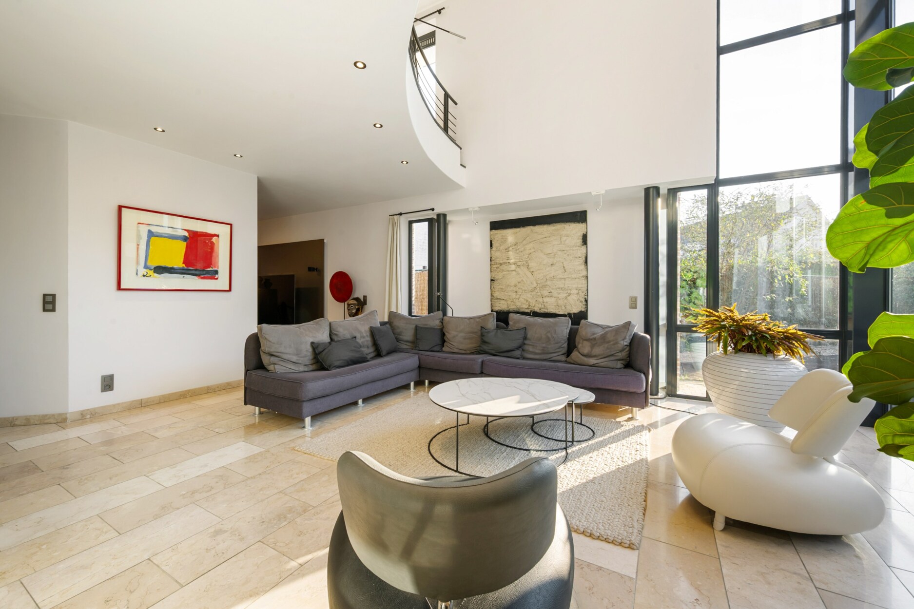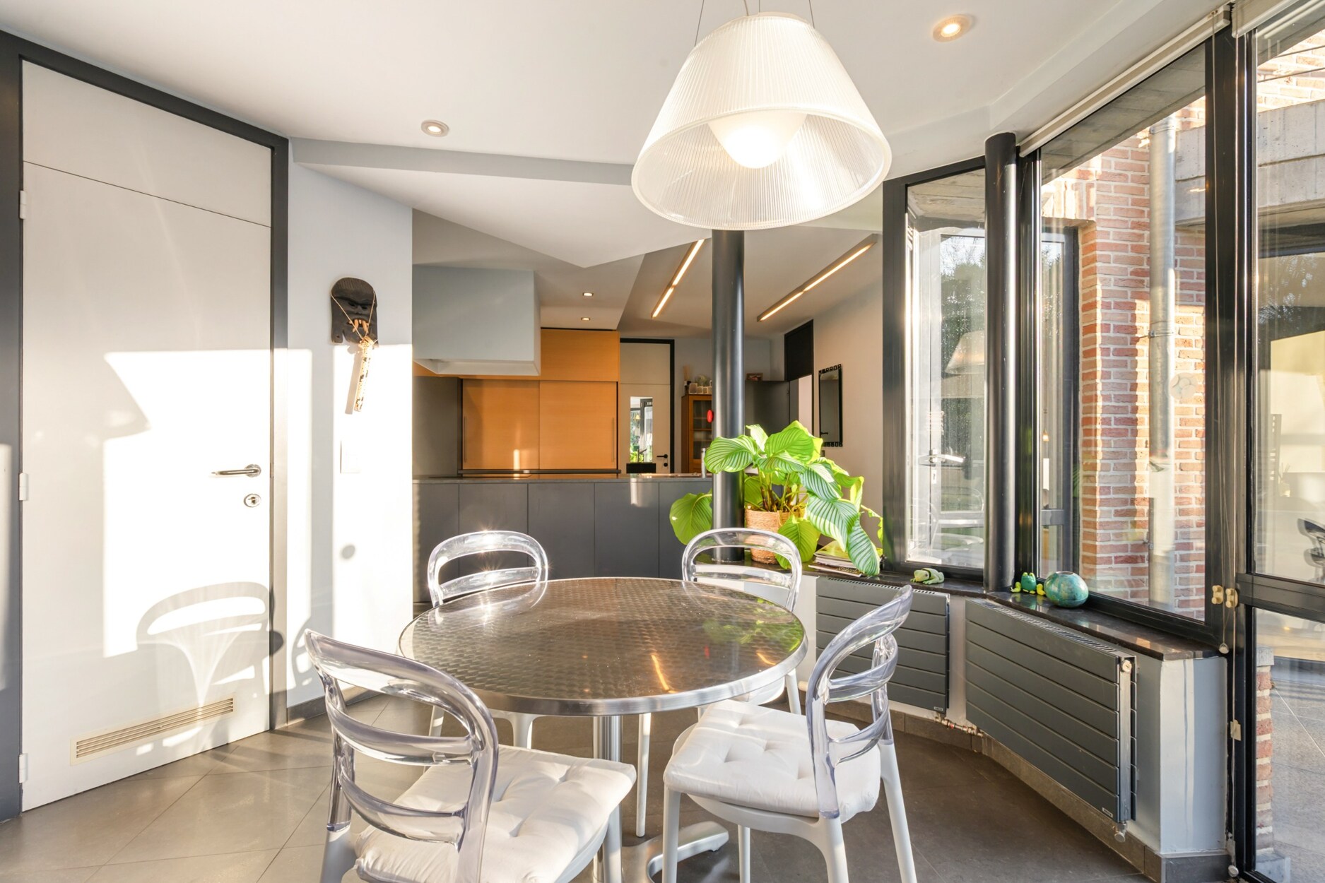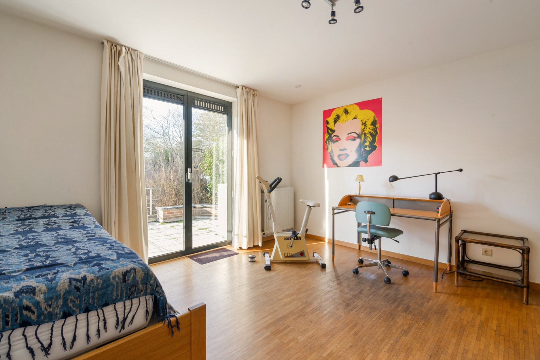Op een boogscheut van Leuven, in één van de meest gegeerde woonwijken, treffen we deze ruime tijdloze villa aan. In een groene en rustige omgeving kan wonen en werken hier gecombineerd worden. Met 660 m² bruikbare ruimte zijn er heel wat mogelijkheden zowel op familiaal als op professioneel vlak. De hoge en brede gevel verhult een aaneenschakeling van grote lichtrijke plaatsen. Bij het betreden van de woning word je verrast door de hoogte van hal en naadloos aansluitende woonruimte. Luxe en grandeur verwelkomen je als het ware. De open haard benadrukt de gezelligheid die men hier voelt. Zowel de leefruimte, eetkamer, keuken en de ontbijthoek baden in het licht mede daar ze allen aansluiten op de ramen van de achterliggende tuin en terrassen. Van in de zitplaats is er , door de mezzanine, een connectie met de bibliotheek/bureelruimte op de eerste verdieping. Met 4 slaapkamers, waarvan 3 met een wastafel, is ook hier heel wat (privé)ruimte. Aansluitend zijn er nog 2 mooie ruimten. Deze kunnen eventueel als burelen gebruikt worden daar ze via een tweede trap (ook) met de praktijkruimte verbonden zijn.