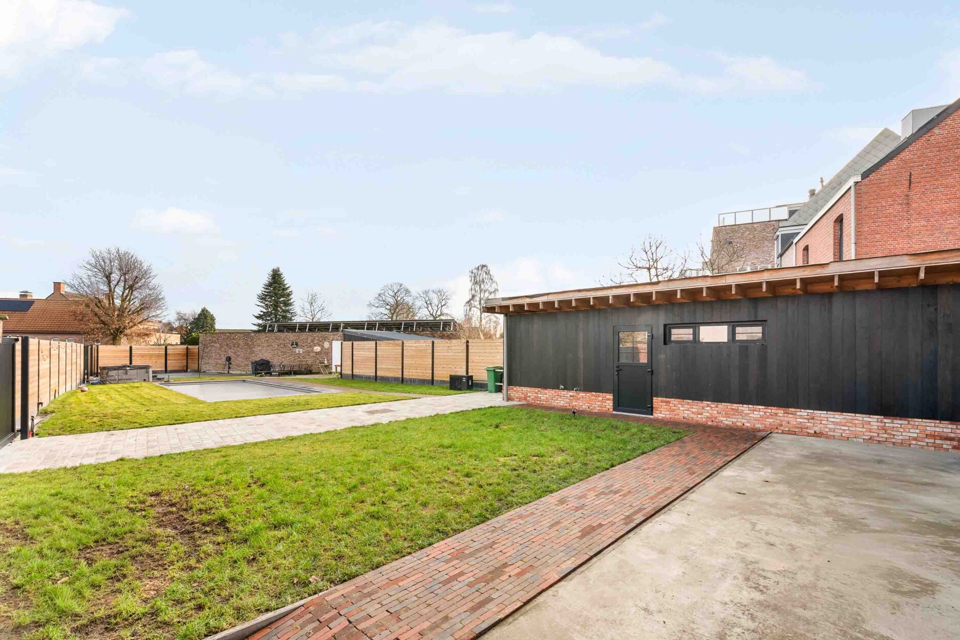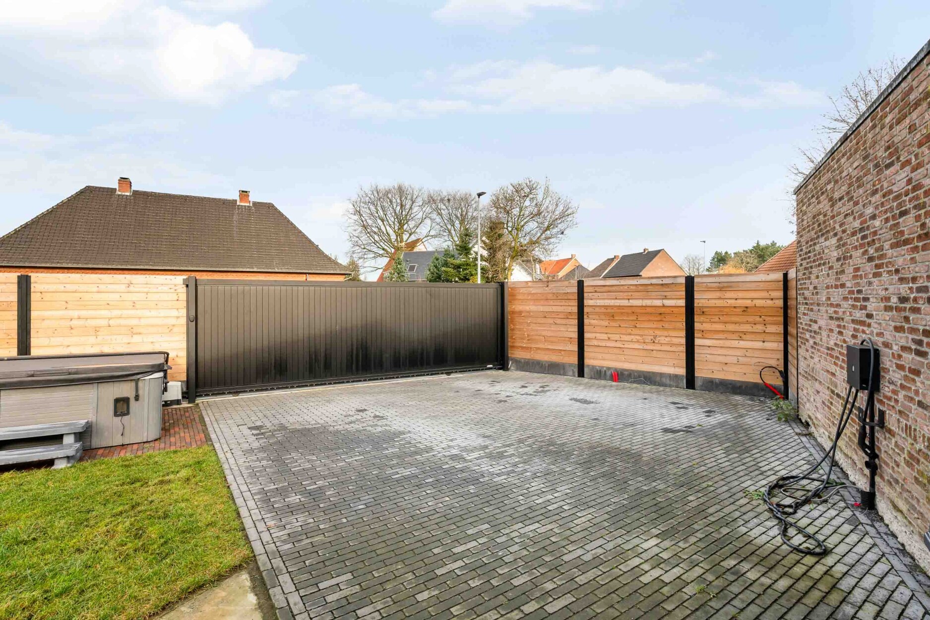 De woning beschikt over een zonnige, recent aangelegde tuin, volledig omheind en perfect georiënteerd. Absolute blikvanger is het verwarmde zwembad (2024), ideaal om in alle comfort te genieten. Verder zijn er een garage en meerdere parkeerplaatsen op het perceel.
