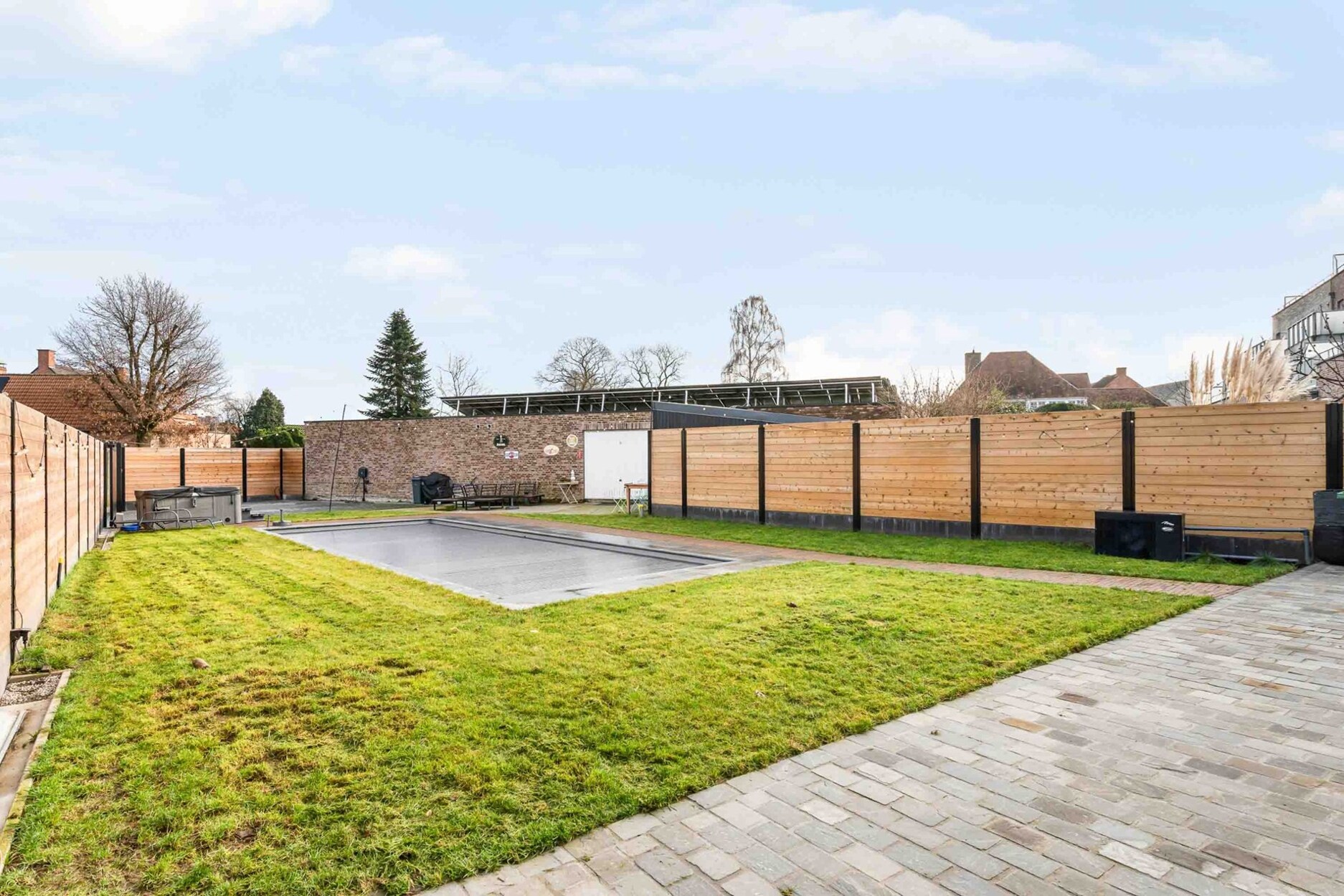 De woning beschikt over een zonnige, recent aangelegde tuin, volledig omheind en perfect georiënteerd. Absolute blikvanger is het verwarmde zwembad (2024), ideaal om in alle comfort te genieten. Verder zijn er een garage en meerdere parkeerplaatsen op het perceel.