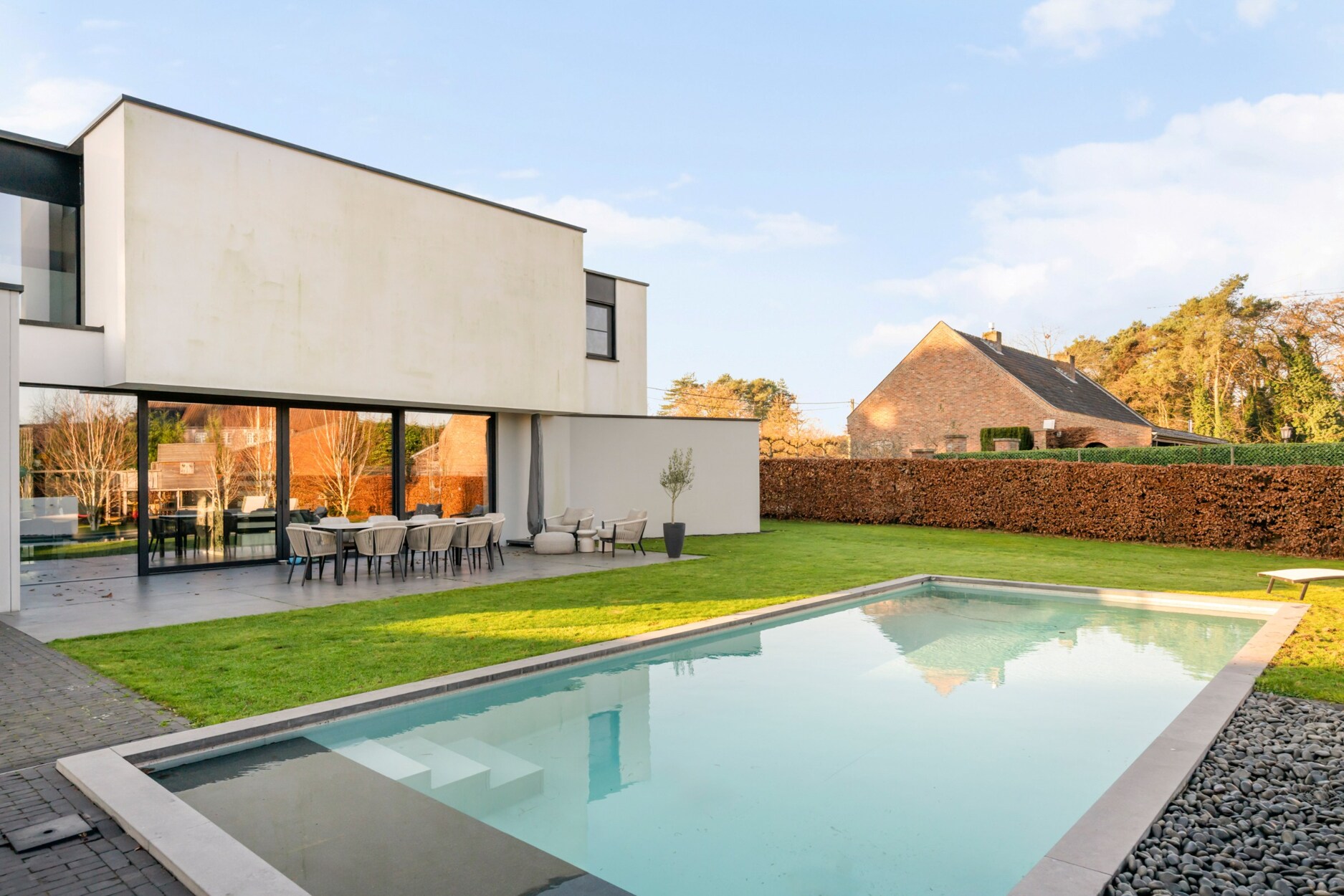 Ontspannen doet u op het ruime terras, in de prachtig aangelegde tuin of in het verwarmde zwembad met automatisch roldek en bijhorend poolhouse. Voor uw wagens is er een ruime dubbele inpandige garage met automatische sectionaalpoort.