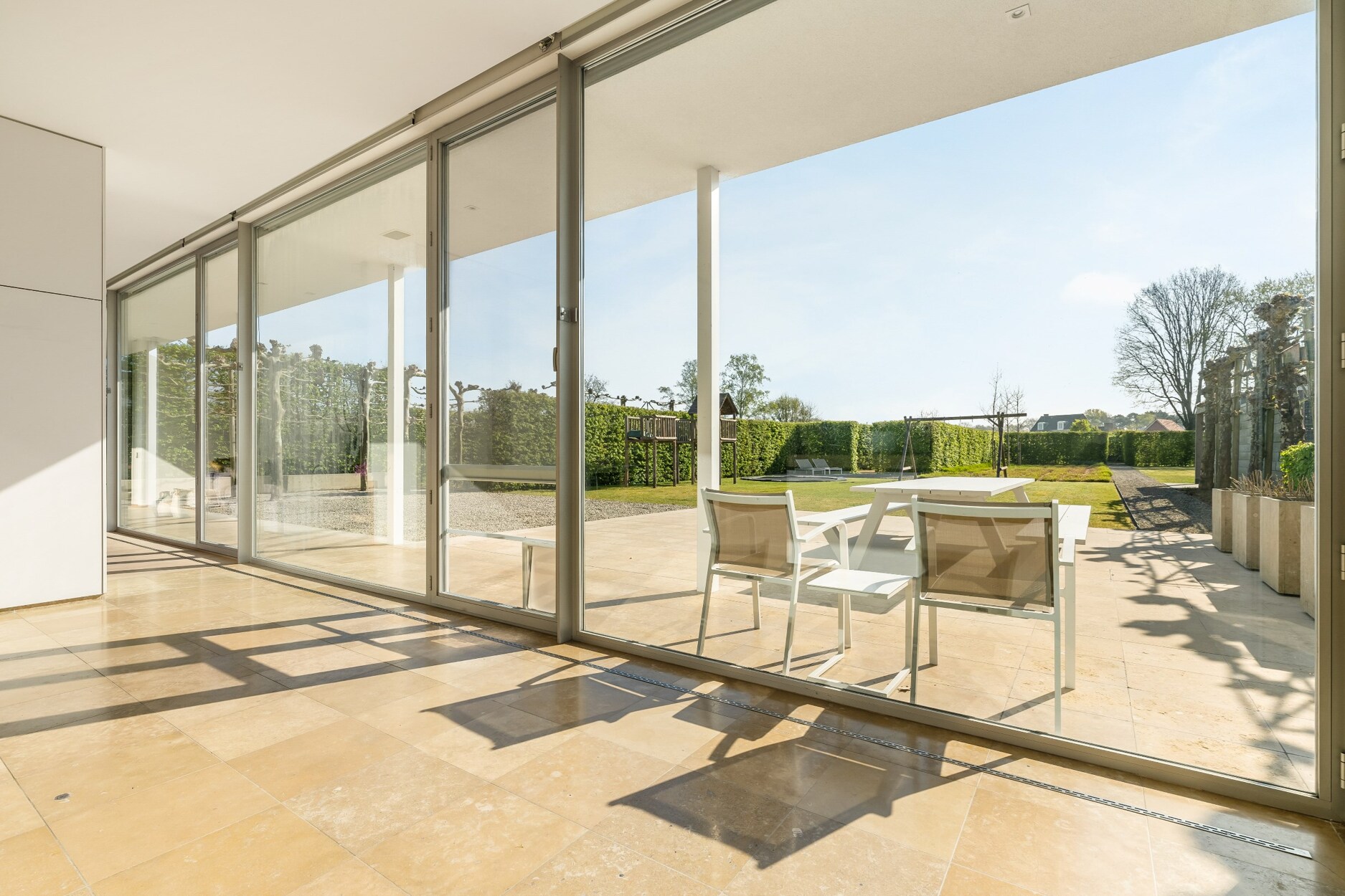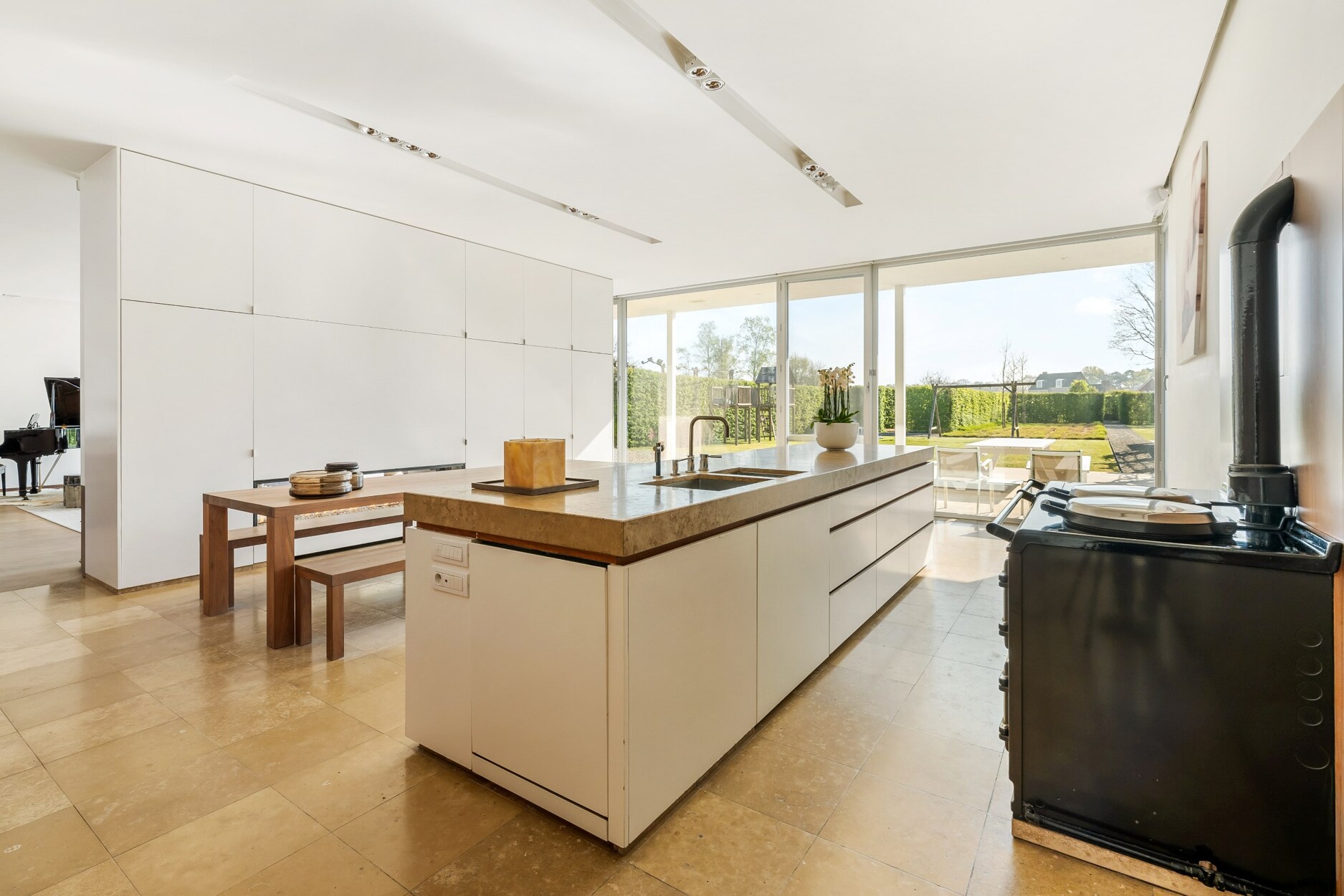 - Strakke afwerking/interieur: weggewerkte plinten, ingebouwde verlichting, maatwerk kasten...