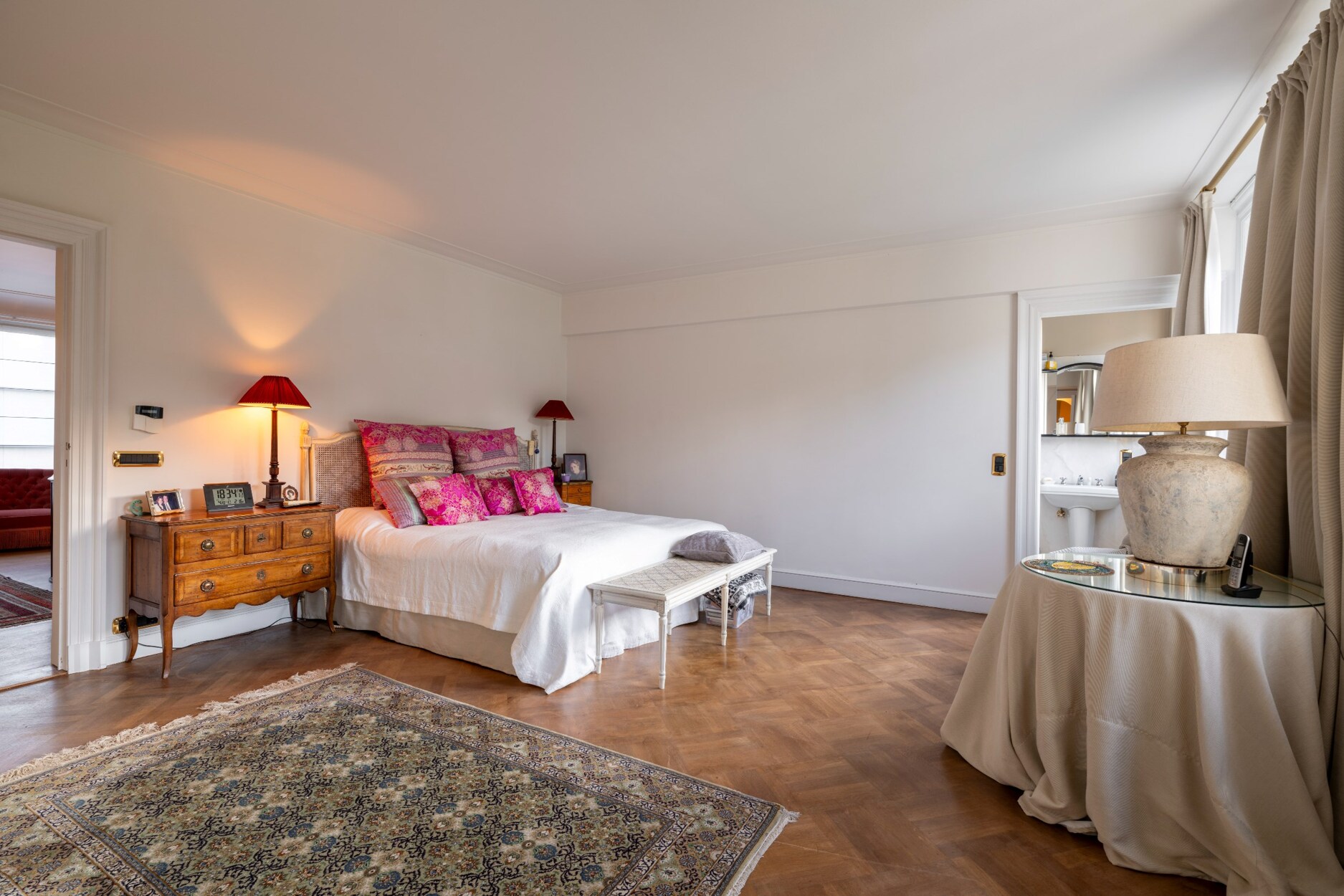 De slaapkamers zijn hoofdzakelijk op eiken parket. De 1ste slaapkamer geniet van een eigen badkamer op Griekse witte marmer. De 2de slaapkamer is voorzien van inbouwkasten. Verder is er een wasplaats met aansluiting voor wasmachine en droogkast en een 3de slaapkamer.