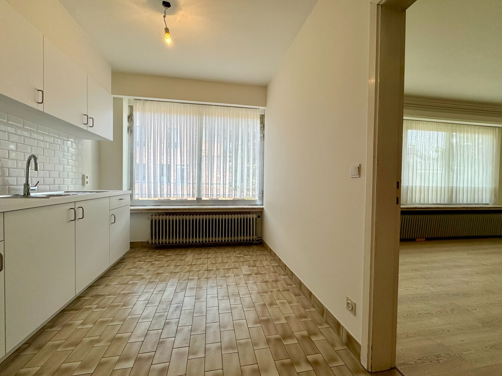 - Glasgordijnen in de woonkamer en keuken aanwezig