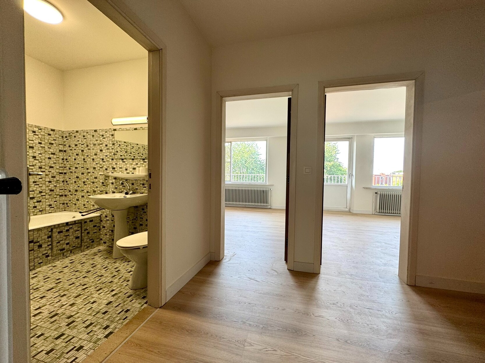 Gerenoveerd appartement van 105 m² met veel lichtinval op de 2de verdieping van een kleinschalig gebouw (met 3 appartementen) nabij het stadscentrum, winkels en invalswegen.