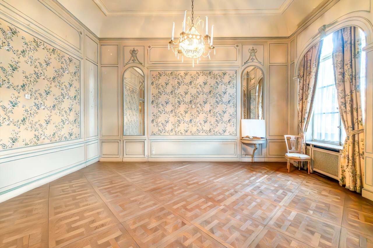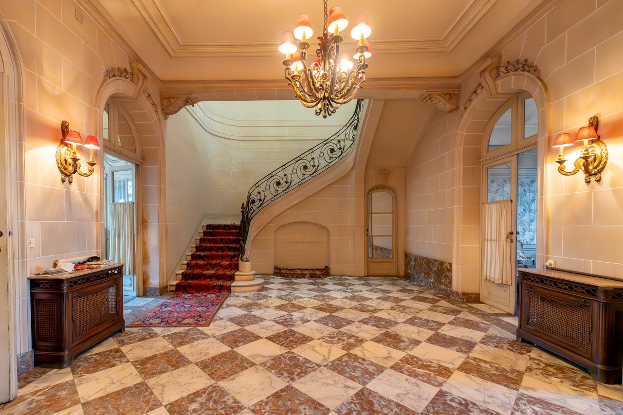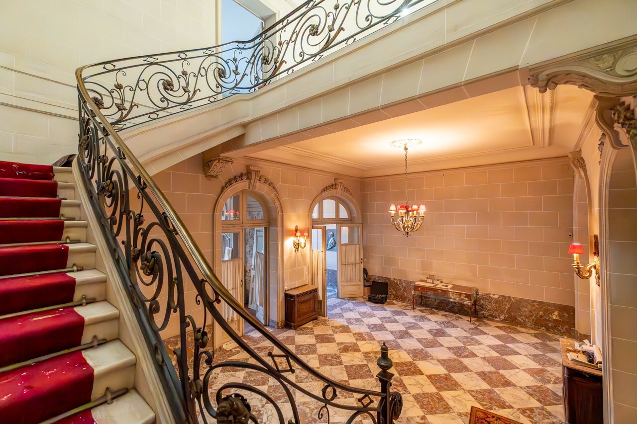 De benedenverdieping bestaat uit ruime ontvangstruimtes met prachtige volumes en hoge plafonds, versierd met moulures, parketvloeren en originele open haarden. De bovenverdiepingen omvatten 7 à 8 slaapkamers en 5 badkamers, bediend door een centrale lift. Het geheel behoudt zijn authentieke elementen: houtwerk, glas-in-loodramen, smeedijzer en originele vloeren. Twee aparte ingangen maken een gemengd gebruik mogelijk.