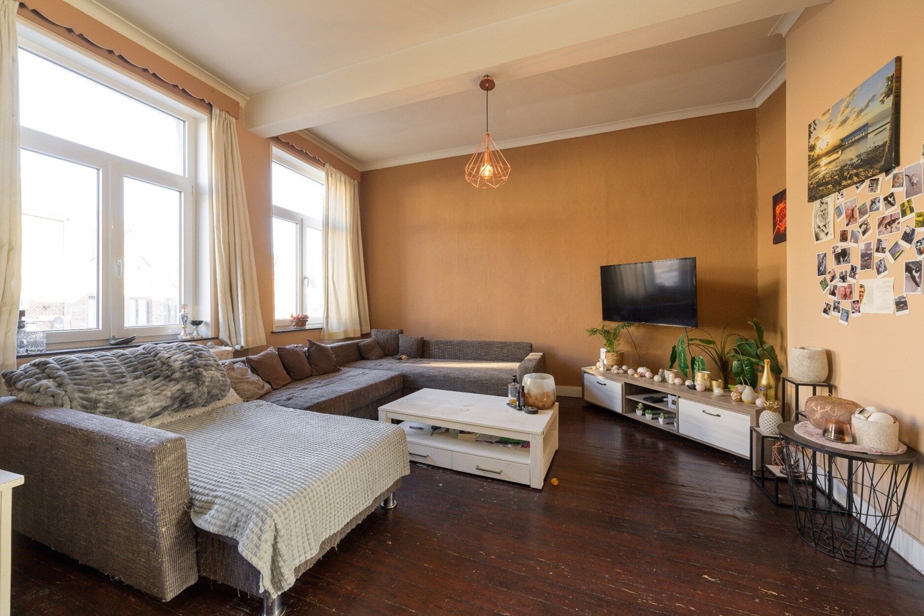 Het bovenliggende appartement van circa 181 m², verdeeld over twee verdiepingen, beschikt over vier slaapkamers, een badkamer, een ruime leefruimte, een keuken met toegang tot een groot zonneterras, een zolderruimte en een aparte inkom.